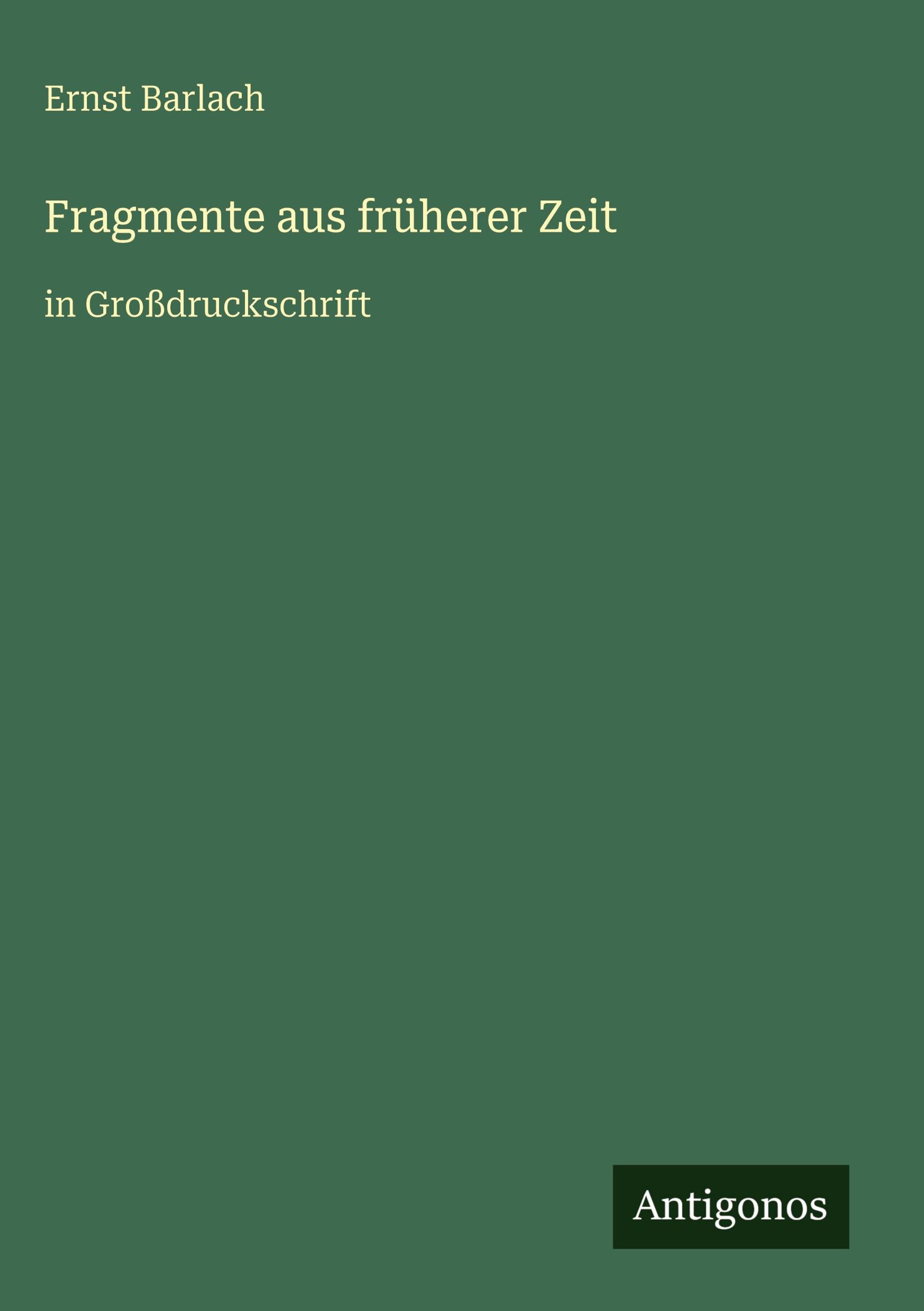 Ernst Barlach, Fragmente aus früherer Zeit, in Großdruckschrift. Grüner Hintergrund, Antigonos-Logo unten rechts., Buch