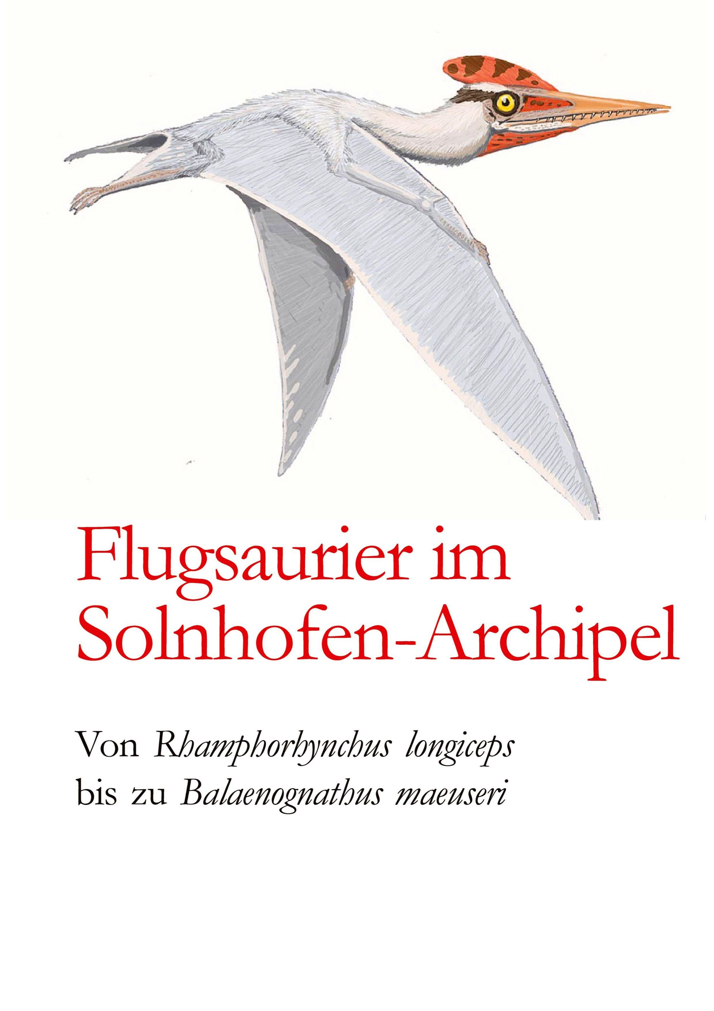 "Flugsaurier im Solnhofen-Archipel. Von Rhamphorhynchus longiceps bis zu Balaenognathus maeuseri." Illustration eines Flugsauriers., Buch