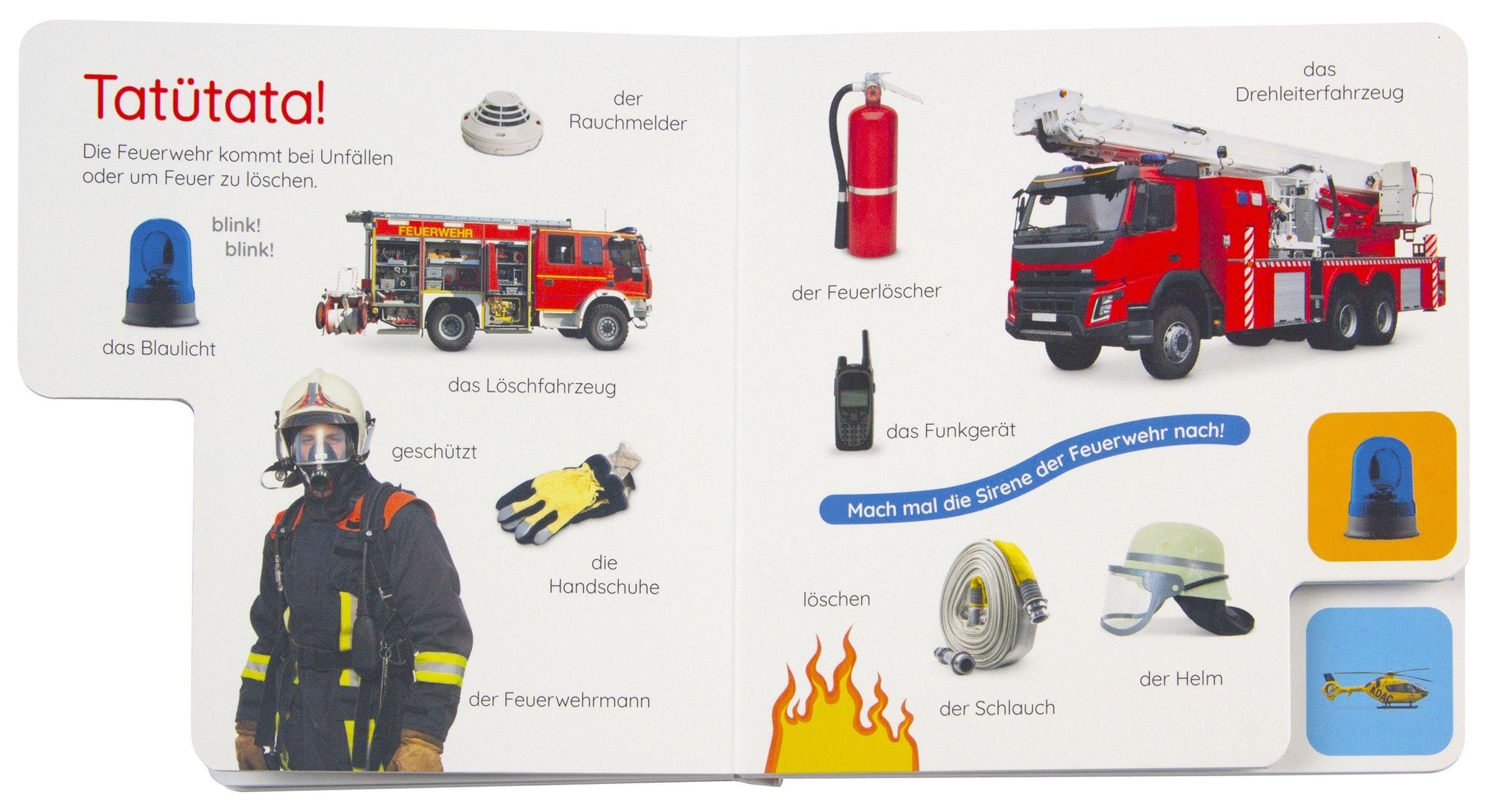 Von der Polizistin mit Hund über den Feuerwehrmann bis zum Notarztwagen, der schnell zu seinem nächsten Einsatz düst: In diesem Mini-Kinderbuch ab 1 Jahr entdecken kleine Einsatzkräfte spannende Fahrzeuge und Gegenstände aus der Welt des Rettungsdienstes. Mithilfe der realistischen Fotos mit passenden Begriffen erweitern sie Tag für Tag ihren Wortschatz - ob zu Hause, im Wartezimmer oder im Kinderwagen!