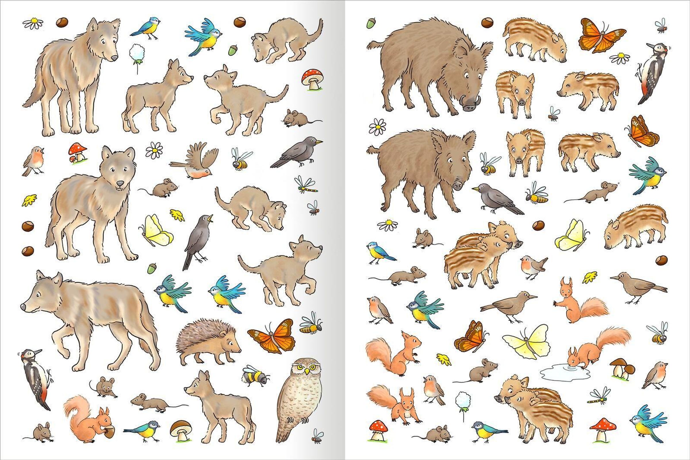 - Wunderbare Bilder: Die Waldszenen und Tiere sind liebevoll illustriert und laden zum Stickern und Kreativsein ein