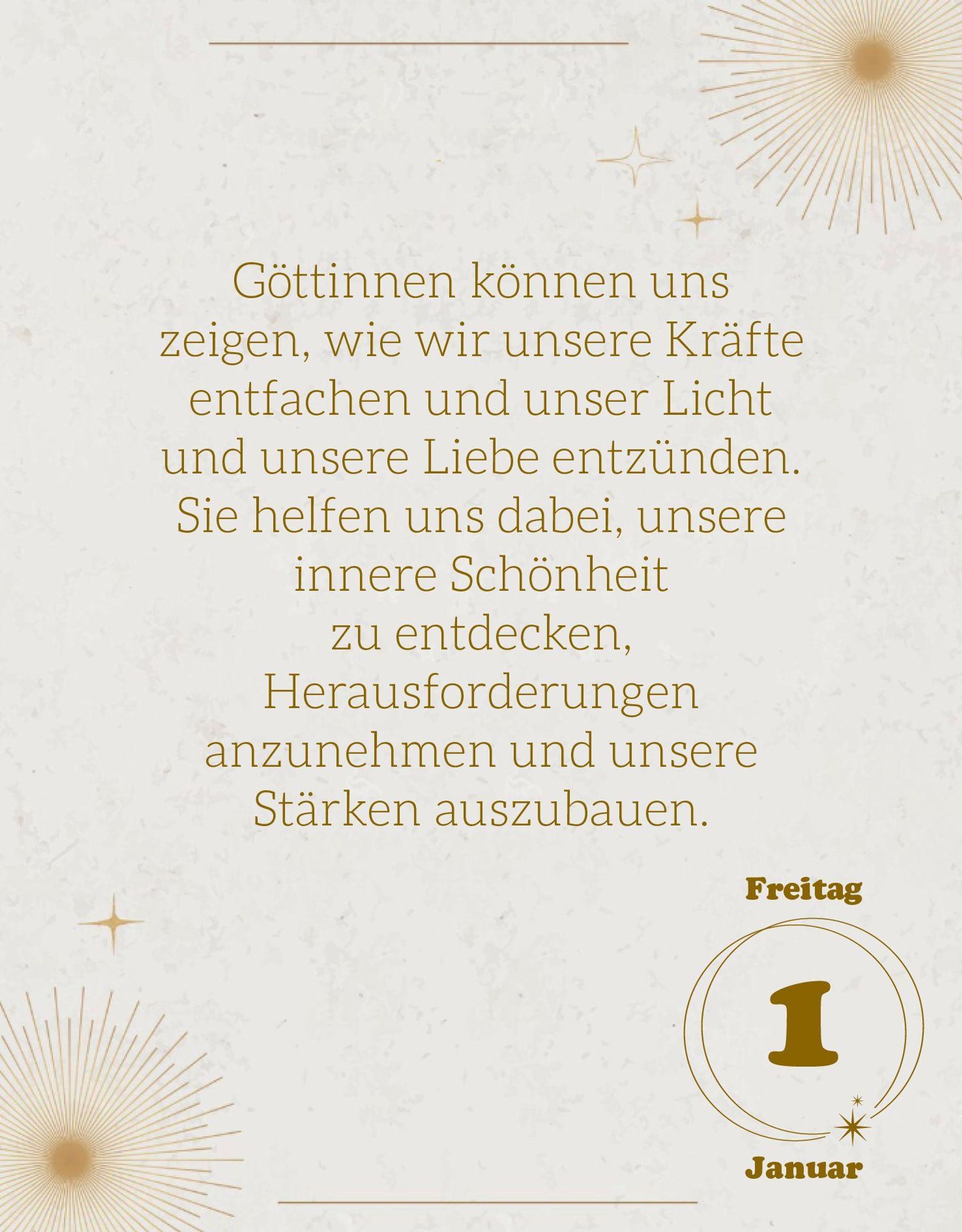 „Erwecke die Göttin in dir 2027" ist mehr als ein Kalender -- es ist ein tägliches Ritual für mehr Bewusstsein, innere Verbindung und liebevolle Selbstbegleitung durchs Jahr.