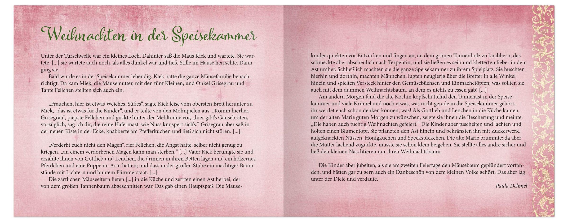 Jeden Tag im Advent heißt es: eine neue Seite auftrennen, sich überraschen lassen und einen Moment der Ruhe und Besinnung erleben. Die Texte stammen aus der Tradition weihnachtlicher Literatur und spiegeln Erinnerungen, Stimmungen und Sehnsüchte rund um das Fest wider.