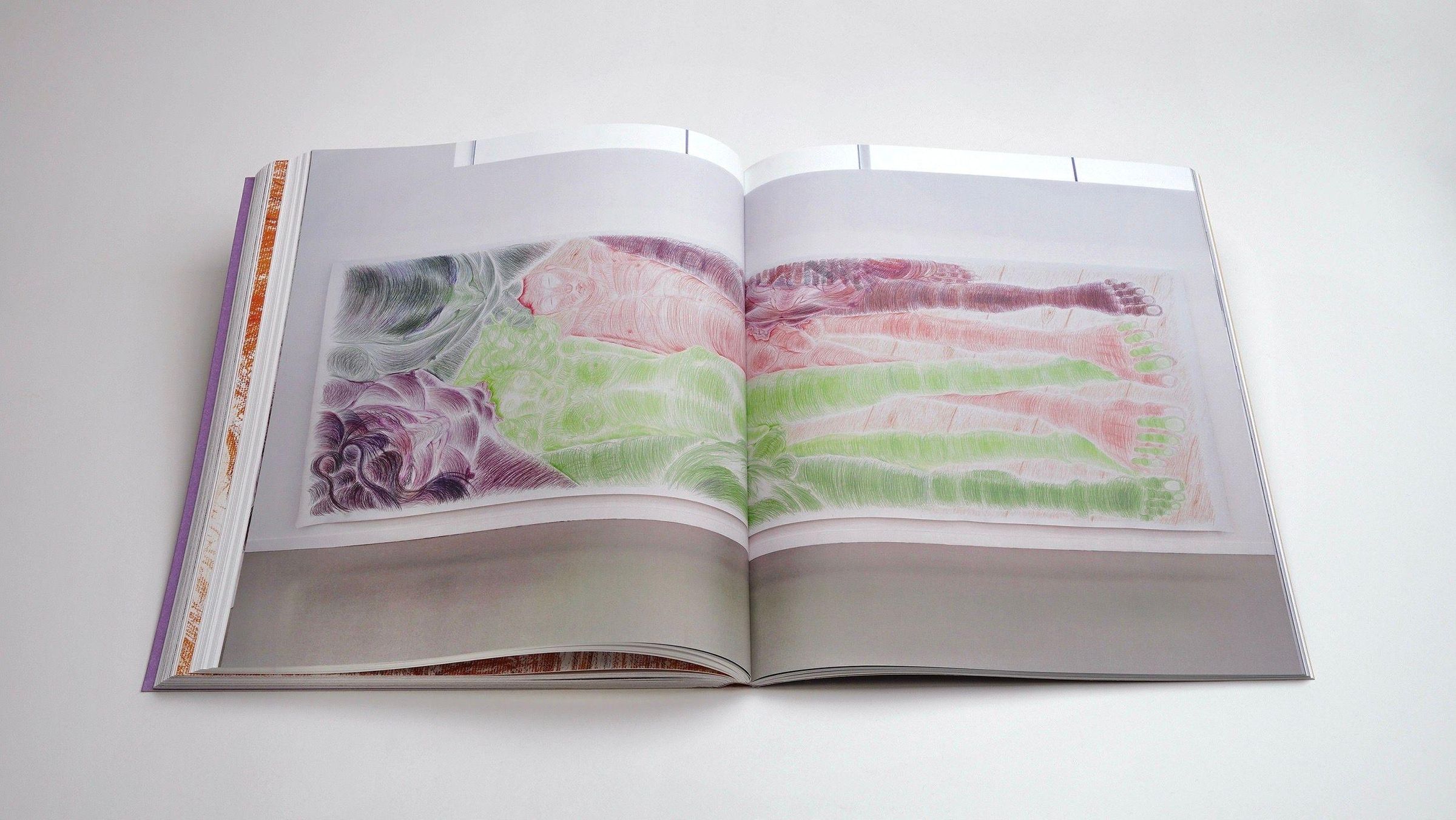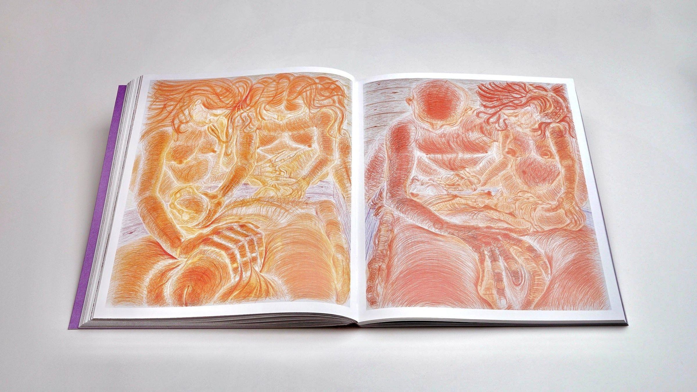 Pieter Slagboom's drawings are about life and death. About how these ostensible antagonists are inseparable; how, in his imagination, they are even fused. In his enormous canvases, we are held by the essence of our existence as though by a steel vise: we come from the void and in the end shall return to it. Thousands upon thousands of sweeping lines, twisting like Moebius strips, make for an almost physical experience of this truth. The dead and the newborn emerge from the primeval soup of Slagboom's lines, as do genitals; we spot larger-than-life fantasies of disturbing sexual acts. The circle of life as a short circuit. The energy of some of the pictures in Slagboom's oeuvre is almost too much to bear-we shudder before the pigments materializing our latent knowledge: that death is suspended in life.