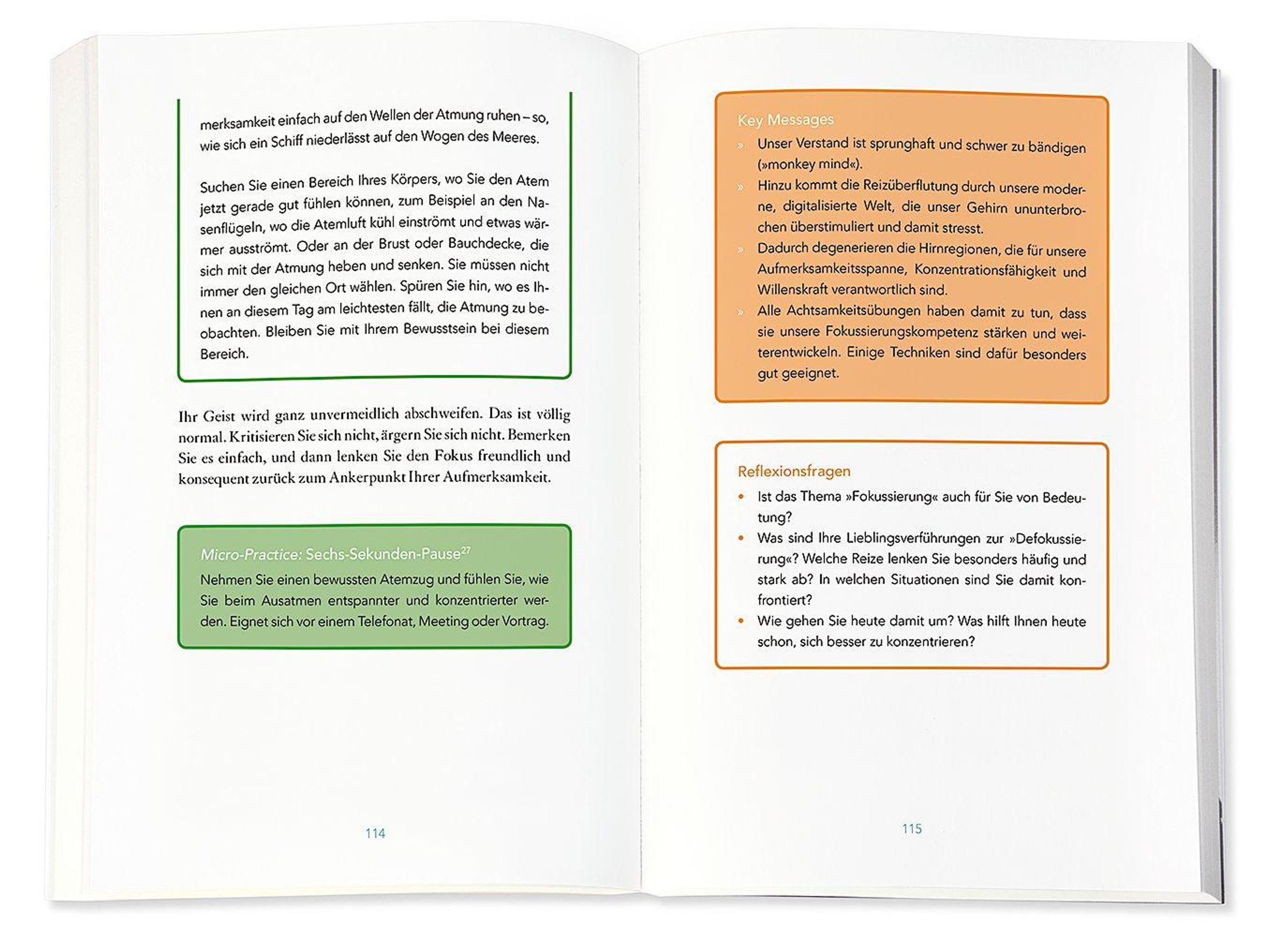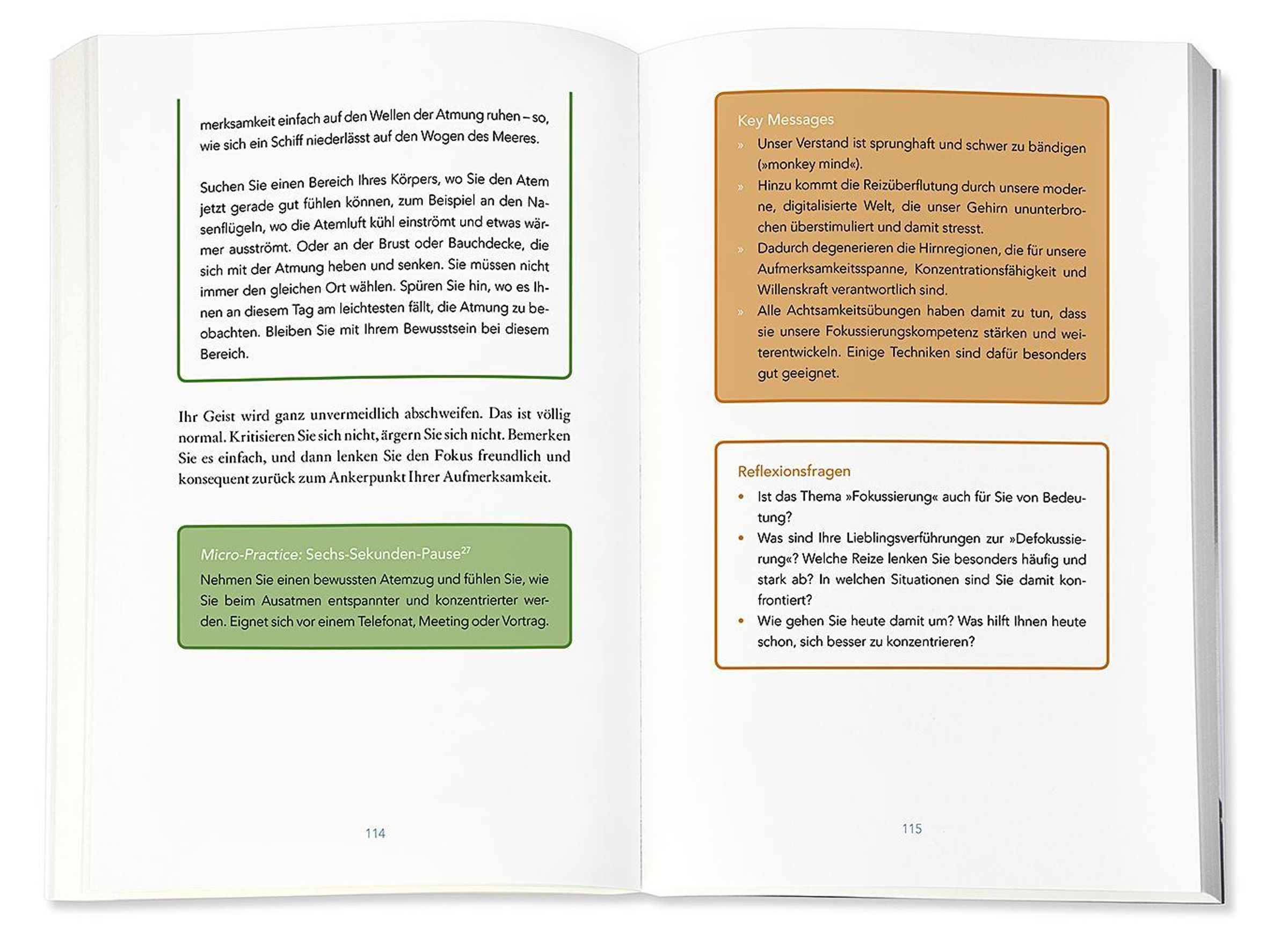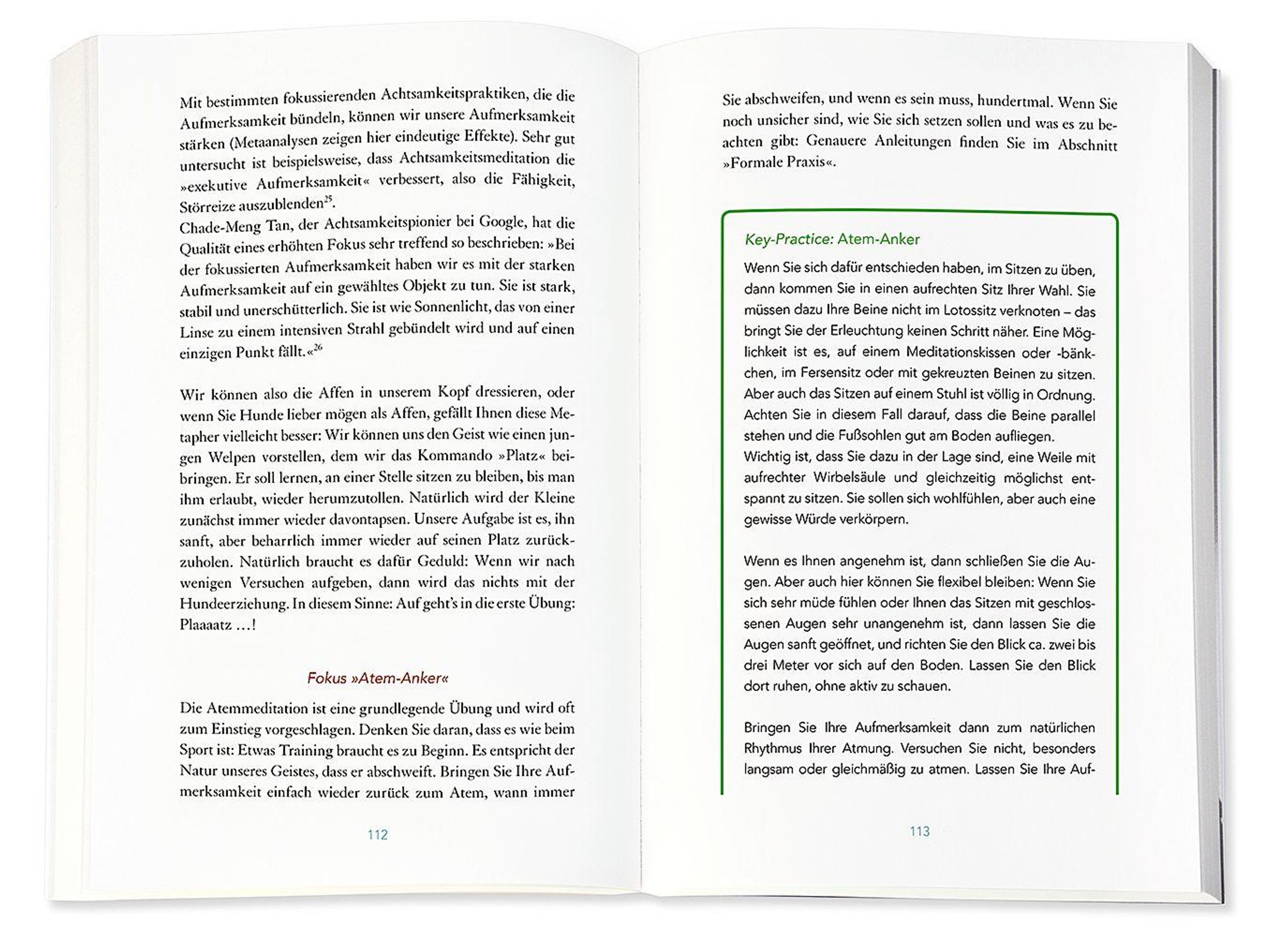 Vorworte von der Neurowissenschaftlerin Britta Hölzel (TUM/Harvard) und von Peter Bostelmann, Direktor bei Deutschlands wertvollstem Weltkonzern SAP und dort verantwortlich für die Global Mindfulness Practice.