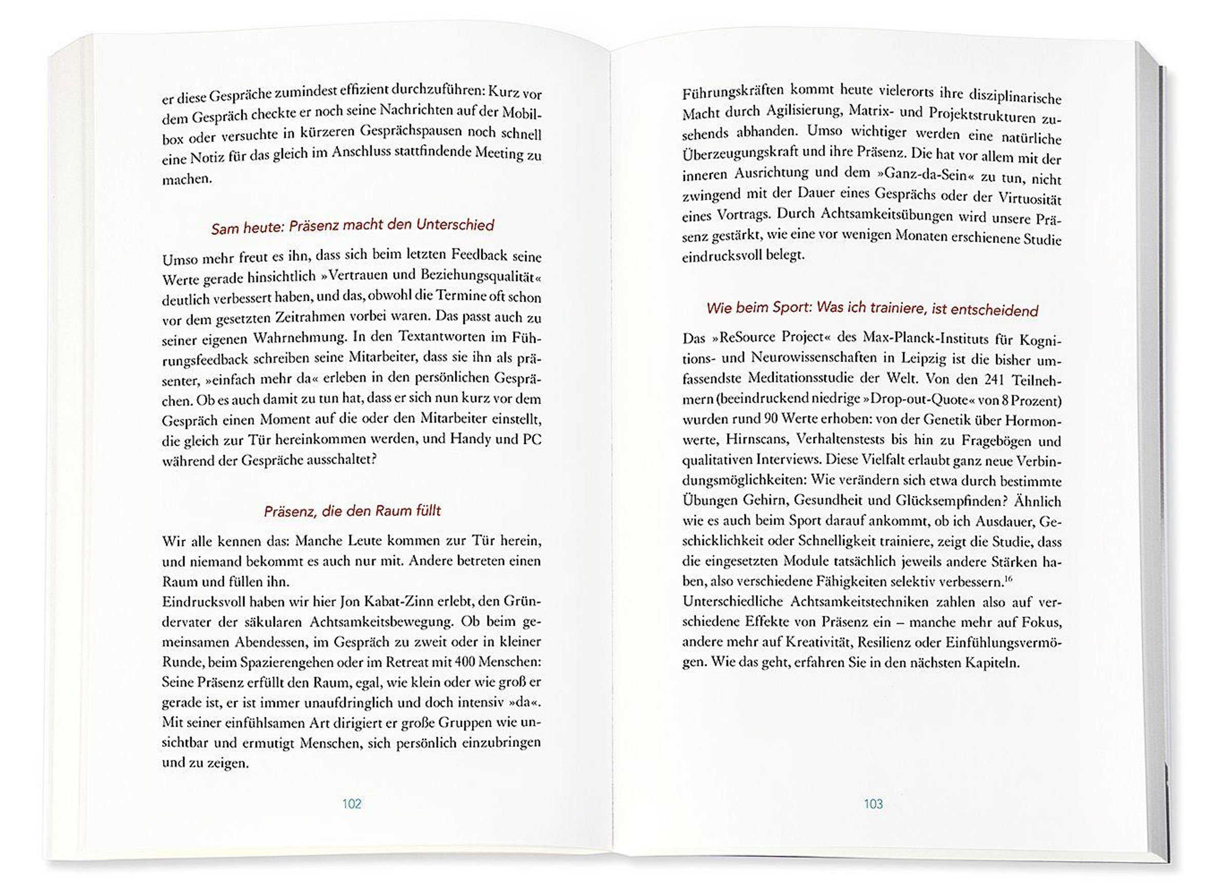 Basierend auf den neusten Erkenntnissen der Neurowissenschaft und Hirnforschung zeigt dieser Ansatz, wie man neuronale Muster verändern kann, und man erfährt, wie man sich selbst und andere effizient und zugleich empathisch führen kann. Und sicher ist: Selbstführung und soziale Kompetenz sind die Schlüsselfaktoren in der modernen Arbeitswelt. Meditation und Achtsamkeit sind ein bedeutender Teil echten Change Managements in der Personalführung von immer mehr Unternehmen