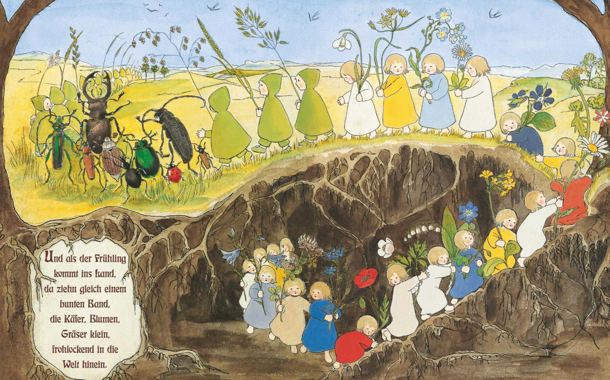 Sibylle von Olfers (1881-1916) erzählt eine kindnahe Geschichte, die sich durch eine einfache, klare Reimsprache und durch harmonische Bilder im verspielten Jugendstil auszeichnet. Mit den stabilen Pappeseiten wird das Bilderbuch zu einem wunderbaren Begleiter durch die Jahreszeiten. Die liebevoll illustrierten Blumen- und Wurzelkinder der Jugendstil-Künstlerin Sibylle von Olfers machen die immer wiederkehrenden Vorgänge der Natur schon für die Allerkleinsten begreifbar.