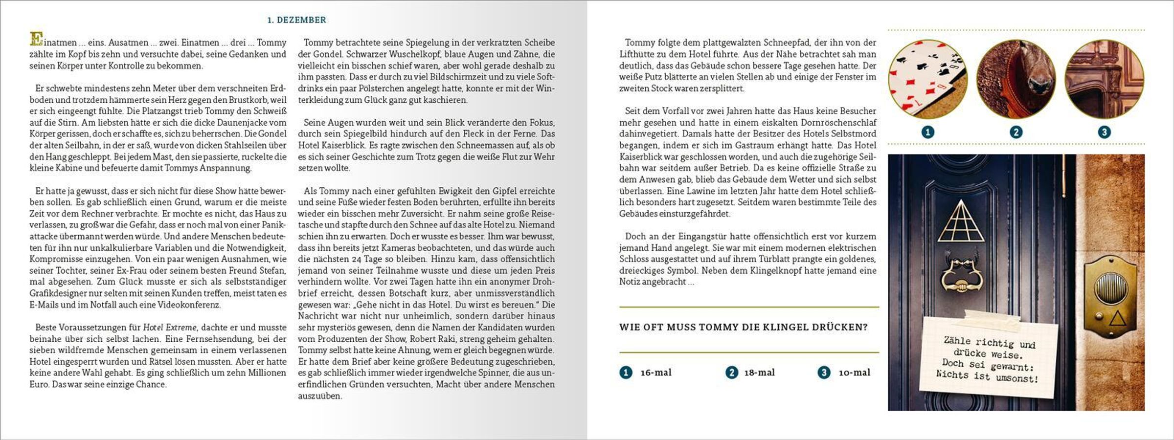 Nur wer alle Rätsel löst, kann dem düsteren Hotel entkommen und das Geheimnis der Weihnachtsshow lüften. 24 Rätsel - 24 Türen - und nur ein Ausweg! Der neue Adventsthriller für alle Abenteurer, Super-Hirne und Fans von Escape Rooms.