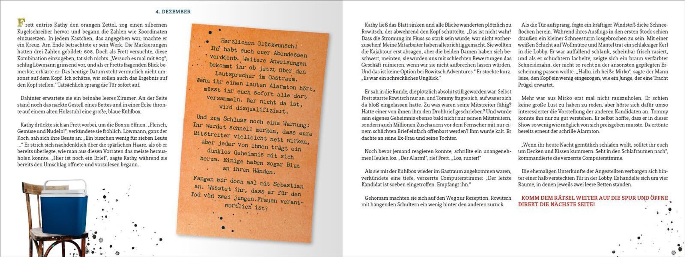 Dieses Buch stellt deine grauen Zellen auf eine harte Probe. Denn nur wenn du es schaffst, eine Denkaufgabe zu lösen, erfährst du, wo es mit der Geschichte weitergeht. Für eine spannende Adventszeit!