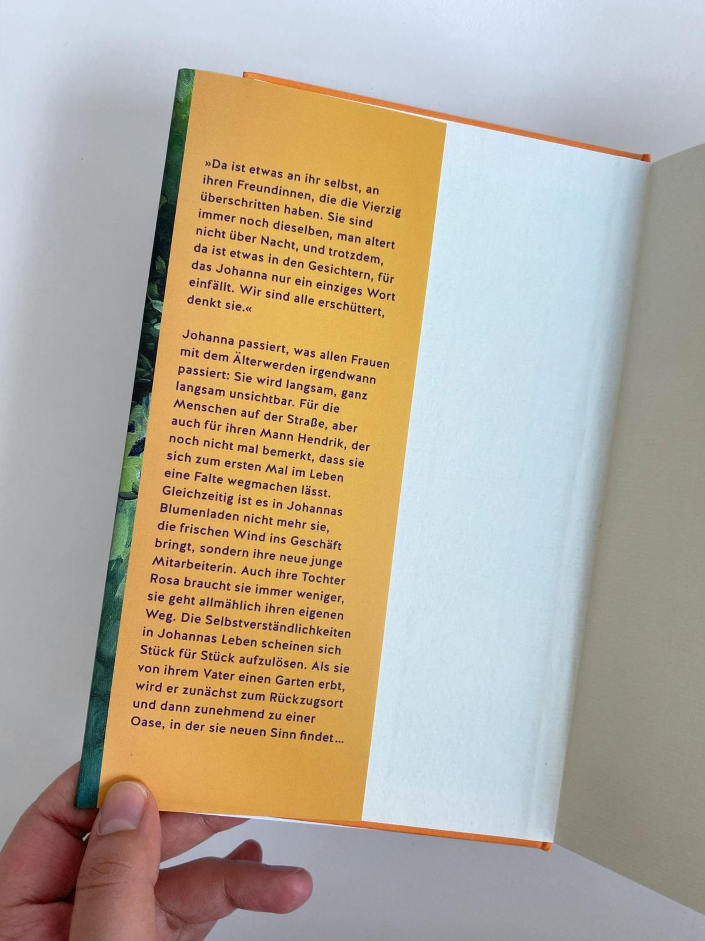 Zwei Dinge hat Karl seiner Tochter Johanna hinterlassen: Den geliebten, verwilderten Garten - und eine tiefe Sorgenfalte auf der Stirn, die einfach nicht mehr weggehen will. Den Garten möchte Johanna behalten, aber die Sorgenfalte soll weg: Sie lässt das erste Mal in ihrem Leben 'etwas machen' und ist fasziniert, wie scheinbar einfach sich die Erschütterungen eines vierzigjährigen Lebens ausradieren lassen. Mit dem Verschwinden der Falte treten allerdings neue Fragen auf: Warum ist Johanna ihr Aussehen überhaupt so wichtig? Wie erklärt sie die Sache ihrer Tochter, der sie immer gepredigt hat, sich selbst bedingungslos schön zu finden? Und kann das Älterwerden für Johanna nicht auch eine große Freiheit bedeuten?