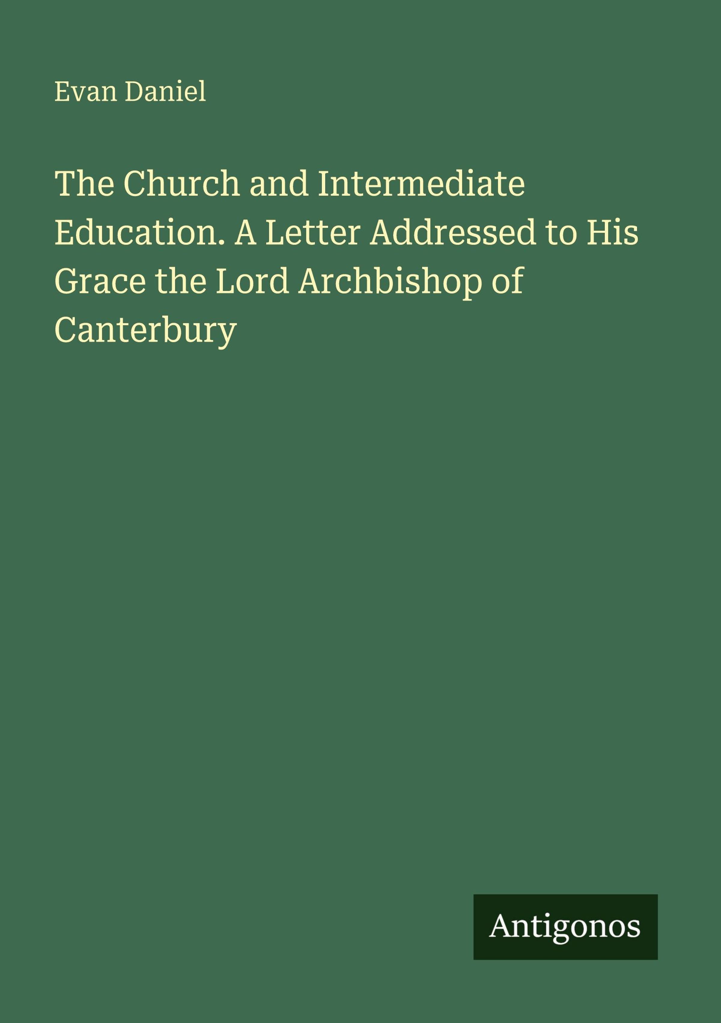 Evan Daniel: The Church and Intermediate Education. A Letter Addressed to His Grace the Lord Archbishop of..., Kartoniert / Broschiert