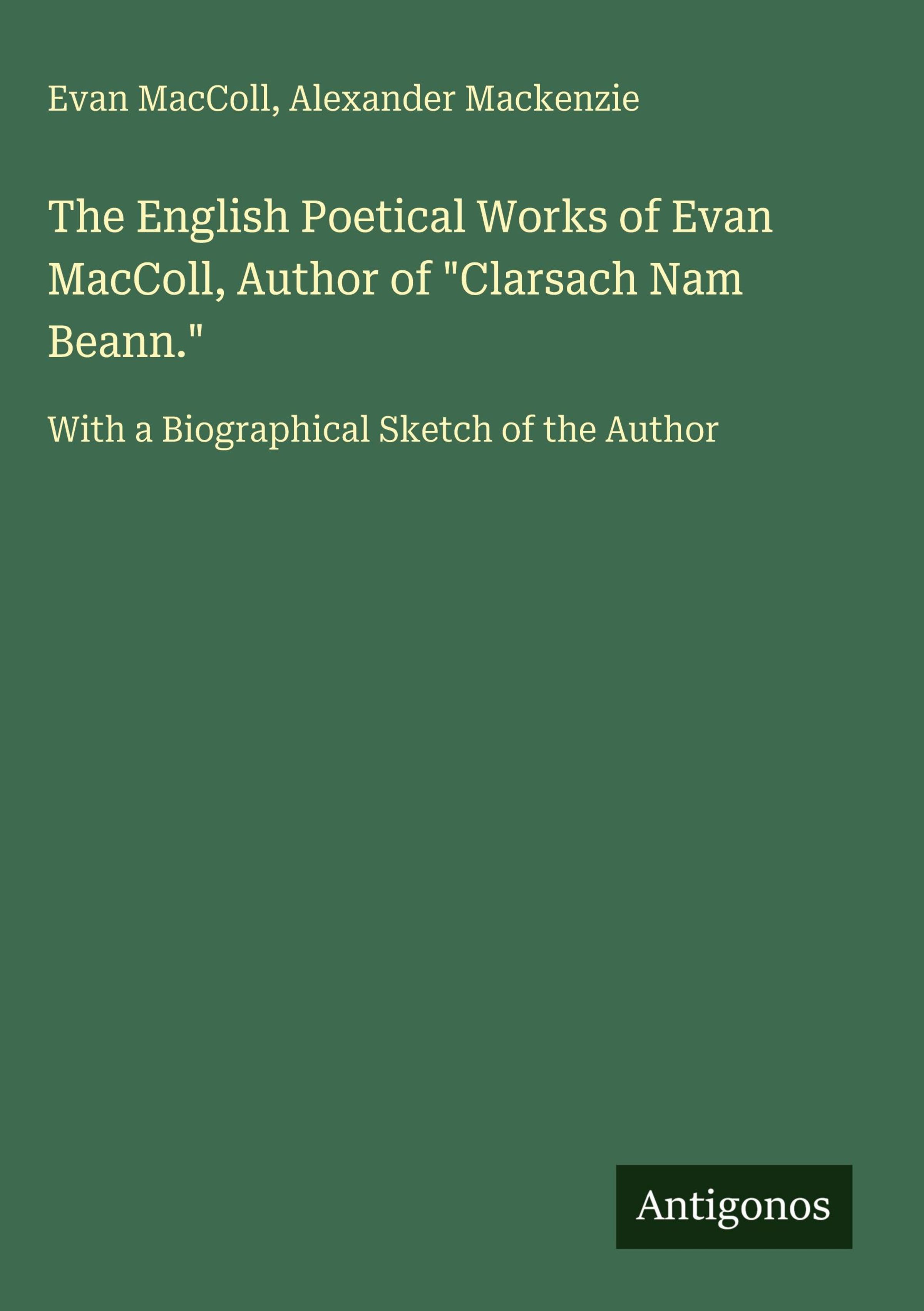 Weitere Ausgaben von The English Poetical Works of Evan MacColl, Author of "Clarsach Nam Beann."