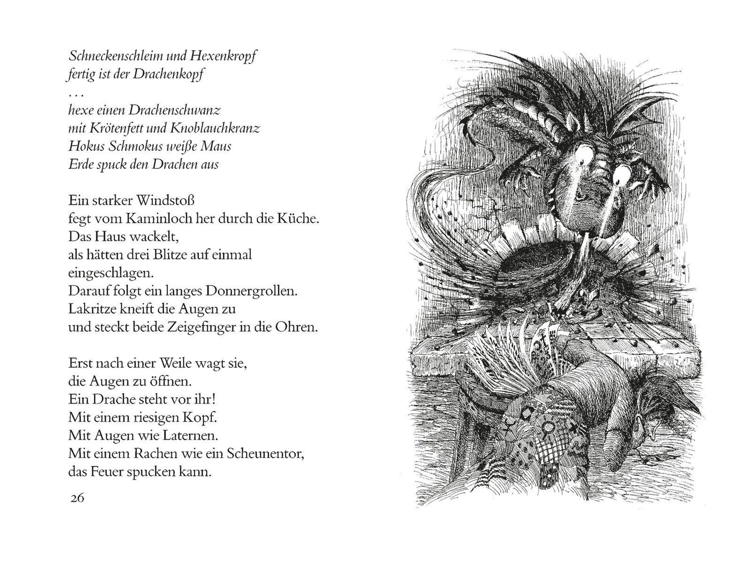 Text: "Eveline Hasler", "Hexe Lakritze", "rowohlt rotfuchs". Illustration: Ein Mädchen und ein Drache fliegen auf einem Besen., Buch