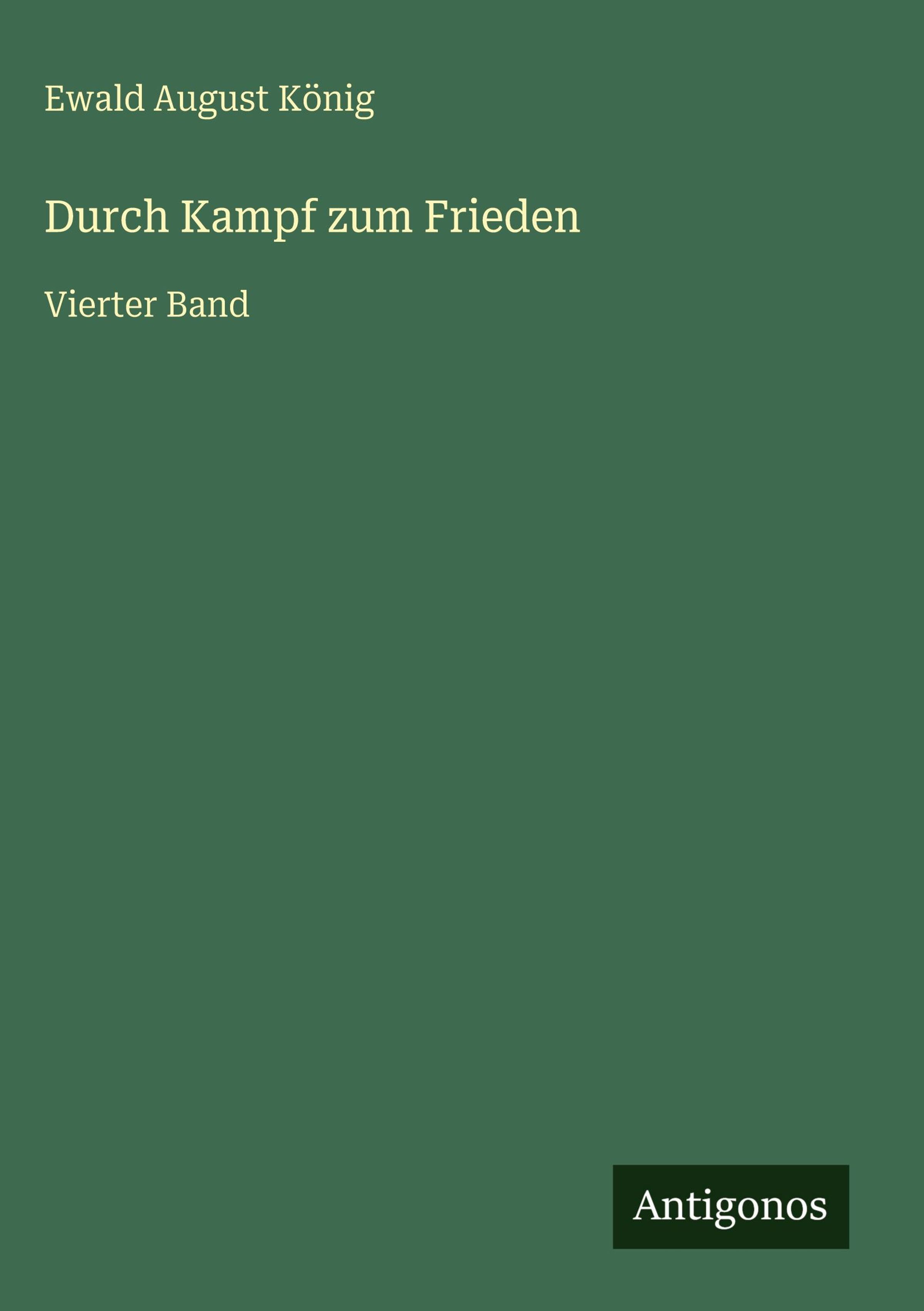 Text: "Ewald August König, Durch Kampf zum Frieden, Vierter Band". Unten rechts kleines Logo "Antigonos". Hintergrund grün., Buch