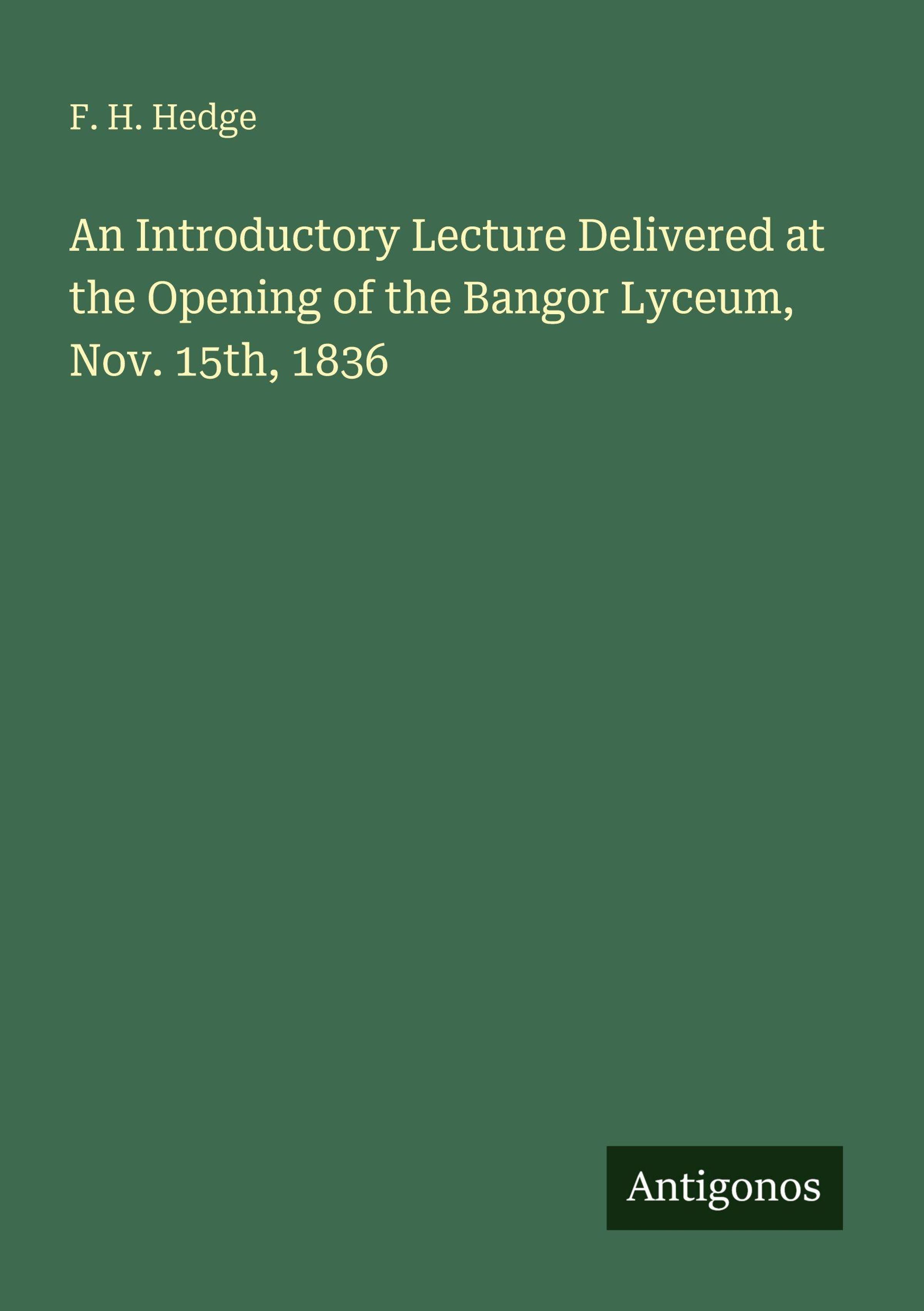 F. H. Hedge: An Introductory Lecture Delivered at the Opening of the Bangor Lyceum, Nov. 15th, 1836, Kartoniert / Broschiert