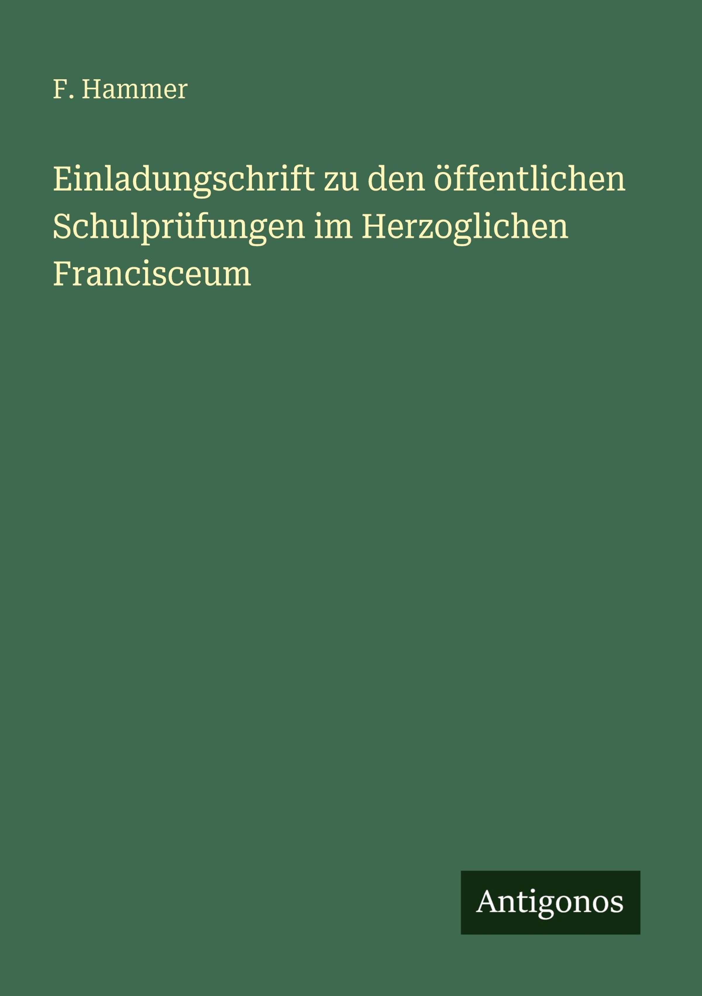 F. Hammer: Einladungschrift zu den öffentlichen Schulprüfungen im Herzoglichen Francisceum, Kartoniert / Broschiert