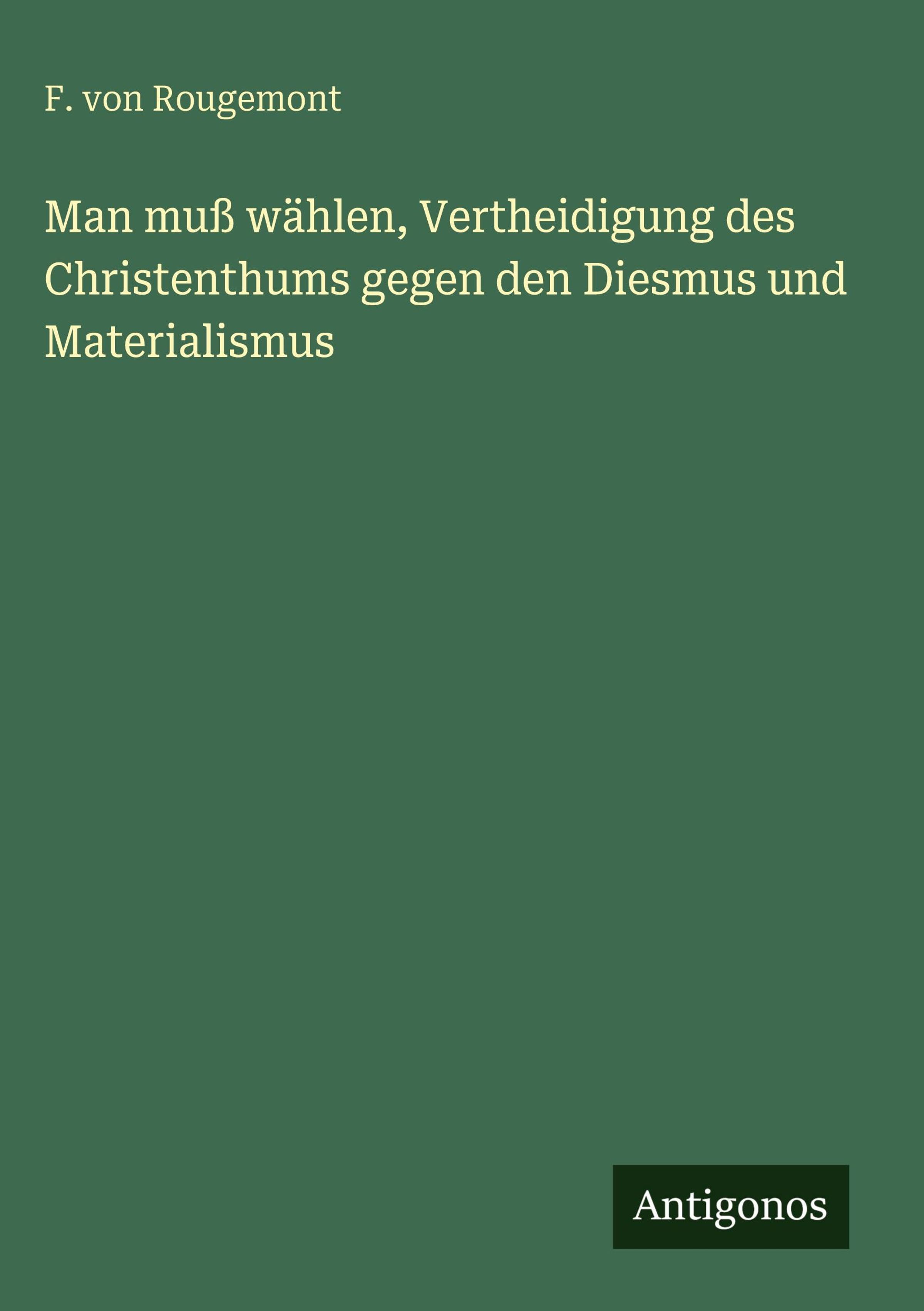 F. Von Rougemont: Man muß wählen, Vertheidigung des Christenthums gegen den Diesmus und Materialismus, Gebunden