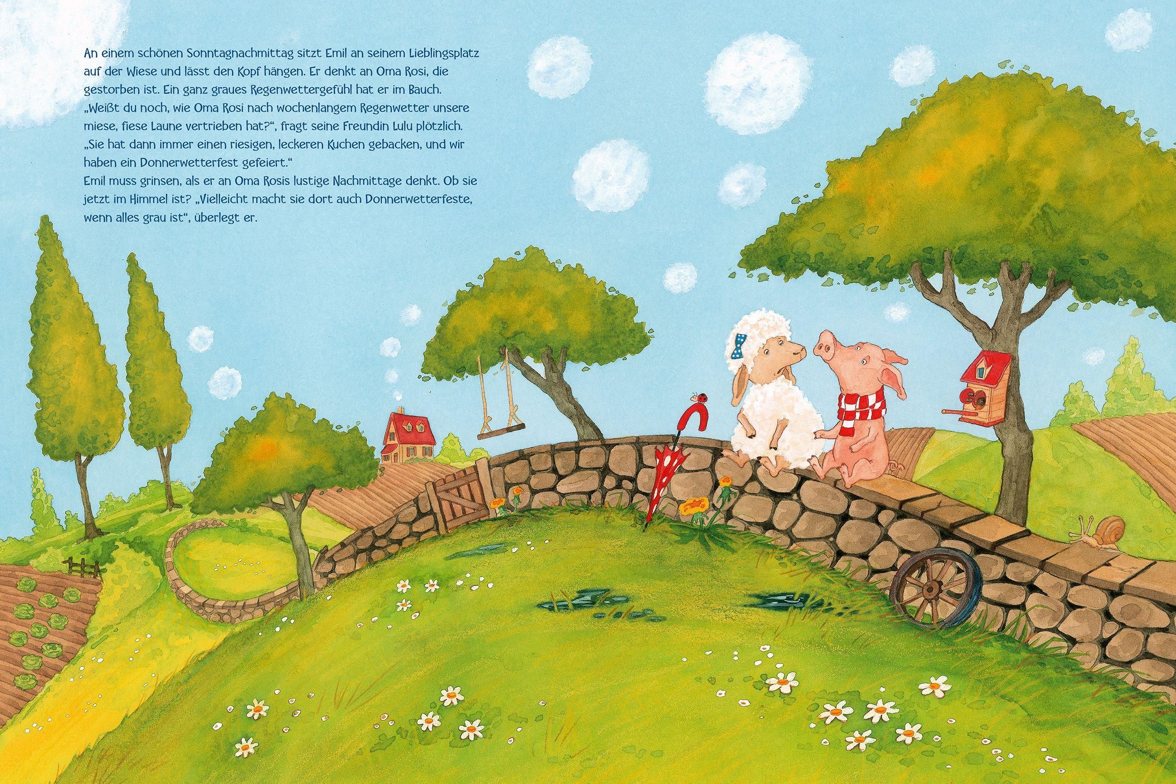 Emils Oma ist gestorben. Natürlich ist sie im Himmel, ist doch klar! Was sie dort wohl macht? Und wie es "da oben" wohl zugeht? Emil und seine Freundin Lulu werden nicht müde, immer neue Bilder vom Himmel zu entwerfen. Auch wenn sie darüber nicht immer einer Meinung sind, so sind die ganzen Erinnerungen an Oma Rosi, die ihnen dabei einfallen, doch ungemein tröstlich. Eine unbeschwerte Geschichte zum Thema Trauerbewältigung mit Illustrationen, die berühren.