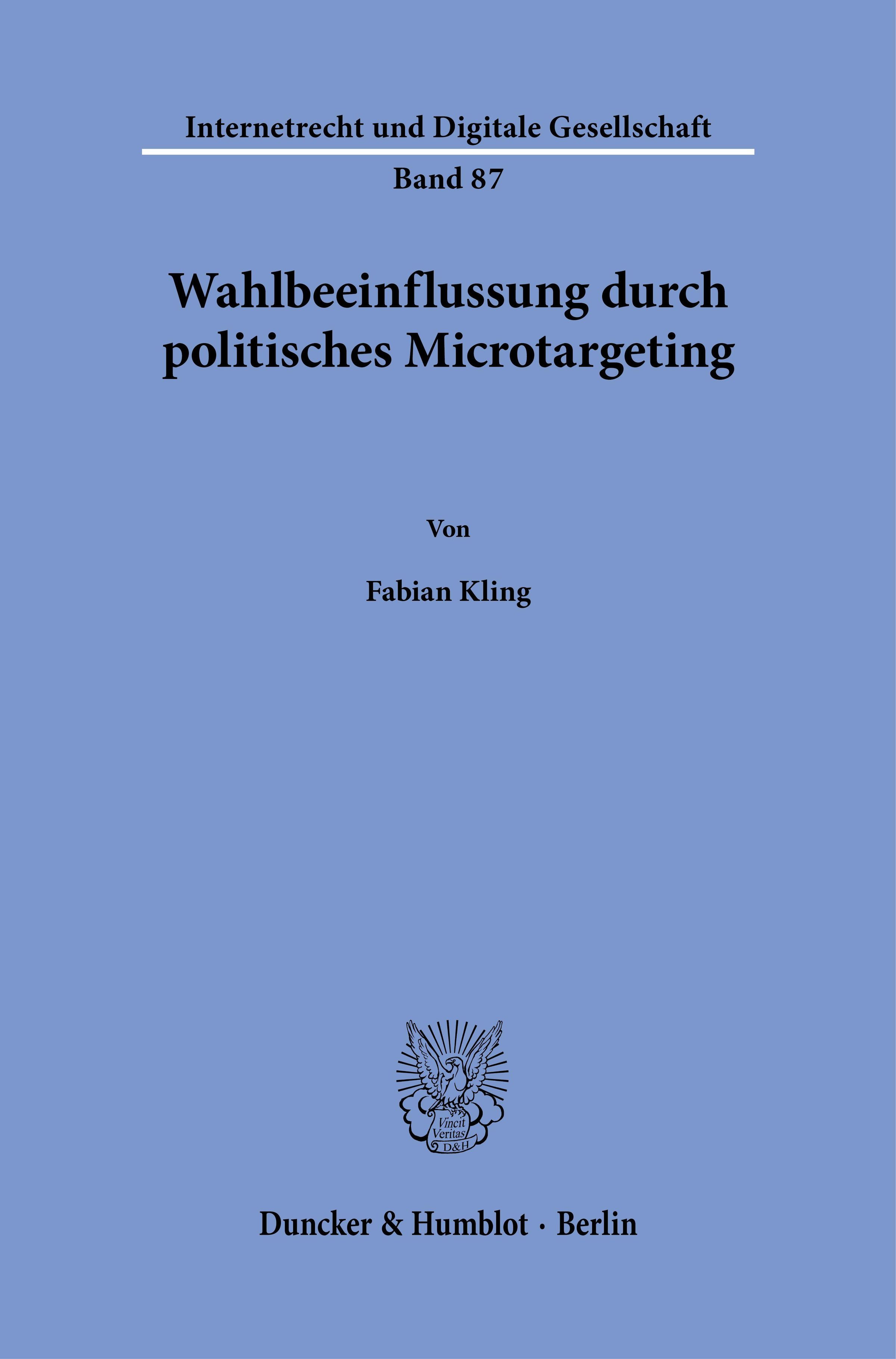 'Political Microtargeting and Election Interference': This thesis examines the advertising technology of political microtargeting, which enables the tailoring of political advertisements to the needs of citizens based on personal data. It analyses the existing regulatory framework under international, EU, and German law and demonstrates that, in light of the risks posed by political microtargeting, significant regulatory shortcomings remain. These deficiencies are particularly detrimental to the legal interests underpinning democratic political communities.
