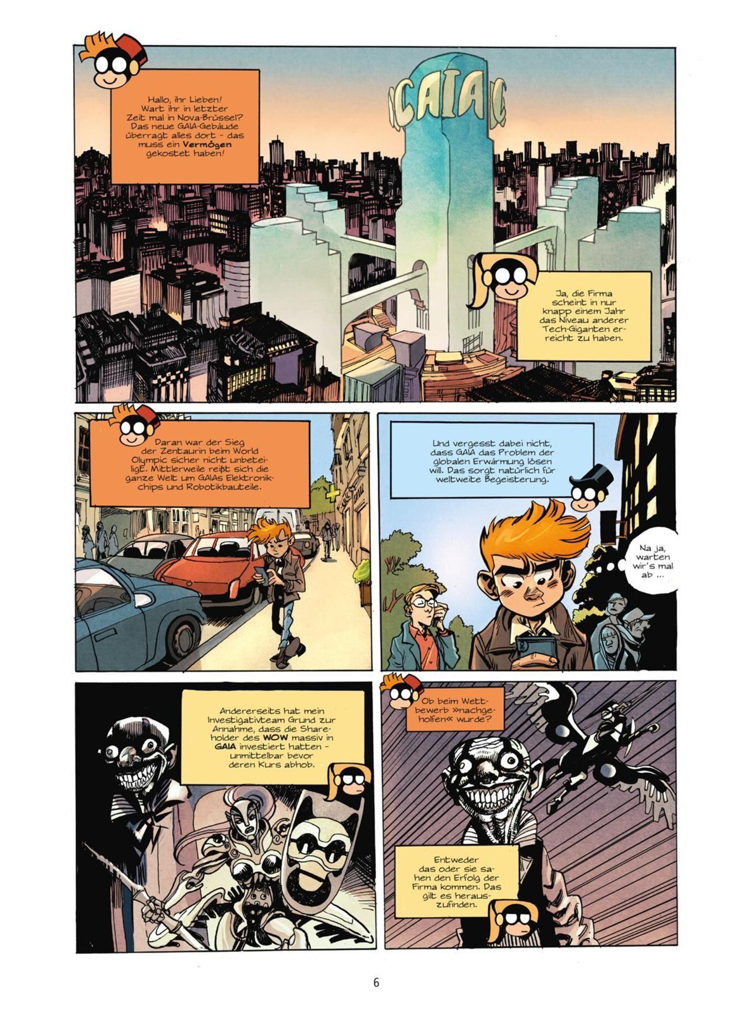 Eine mysteriöse Einladung lockt Spirou zu einem geheimnisvollen Treffen auf dem Gaia-Gebäude. Doch niemand außer dem Grafen von Rummelsdorf kennt seine geheime Identität als Superpage. Gegen den Rat von Redwing (alias Pips) folgt er dem Ruf - und gerät in eine gefährliche Falle!