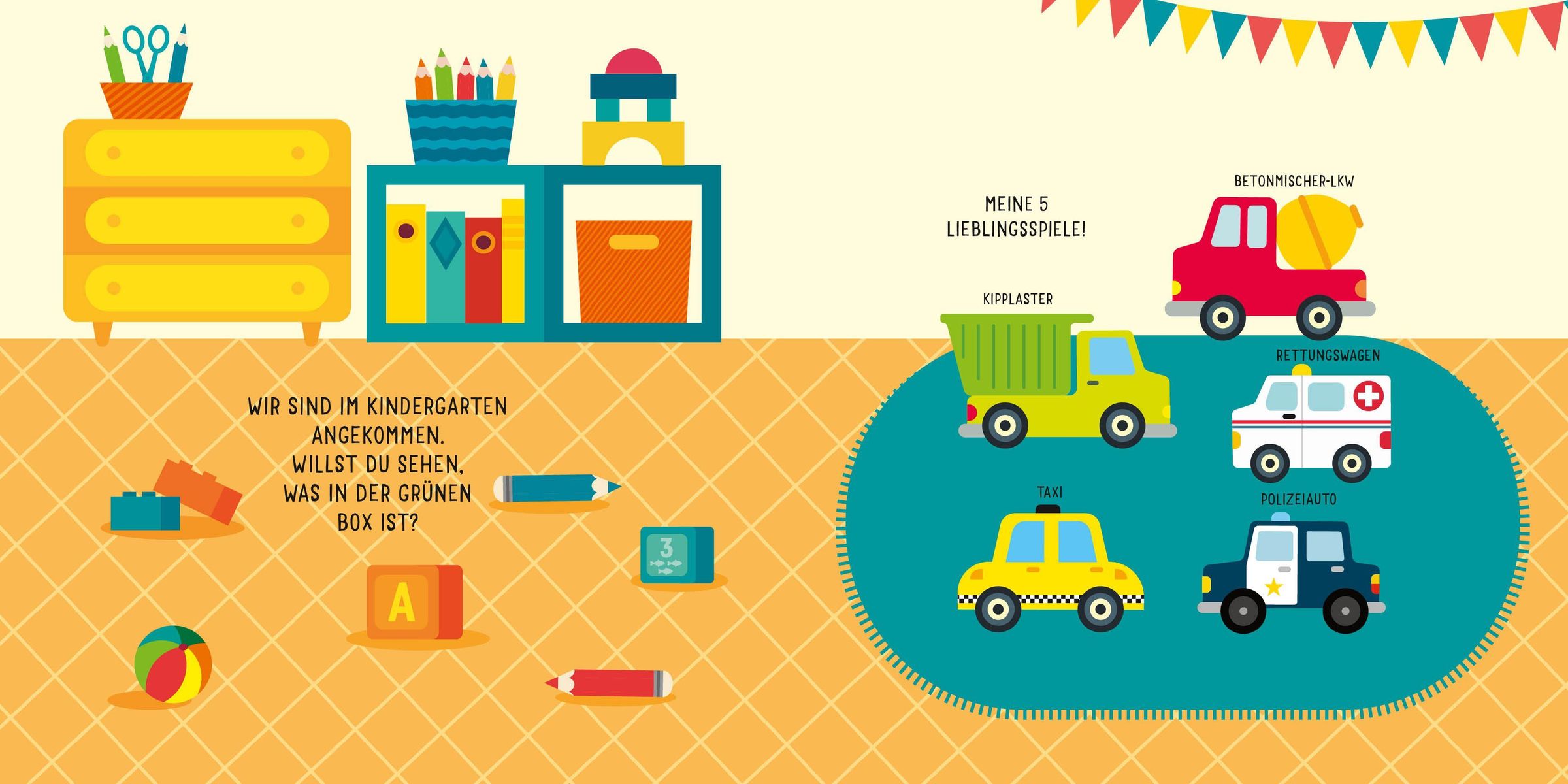 Eine interaktive Serie, perfekt für die Kleinsten! Hinter bunten, strapazierfähigen Filzklappen verstecken sich viele Freunde, die entdeckt werden wollen. In Fahrzeuge können die Kinder quer durch den Verkehr einem kleinen Auto folgen und den Filz anheben, um es zwischen Bussen, Lastwagen und Häusern zu finden. In Tierbabys spielen die Kinder Verstecken mit einem pfiffigen Hasen und helfen seinen Freunden, ihn zu suchen. Taktile und fesselnde Erfahrungen fördern Neugier und aktives Spielen.