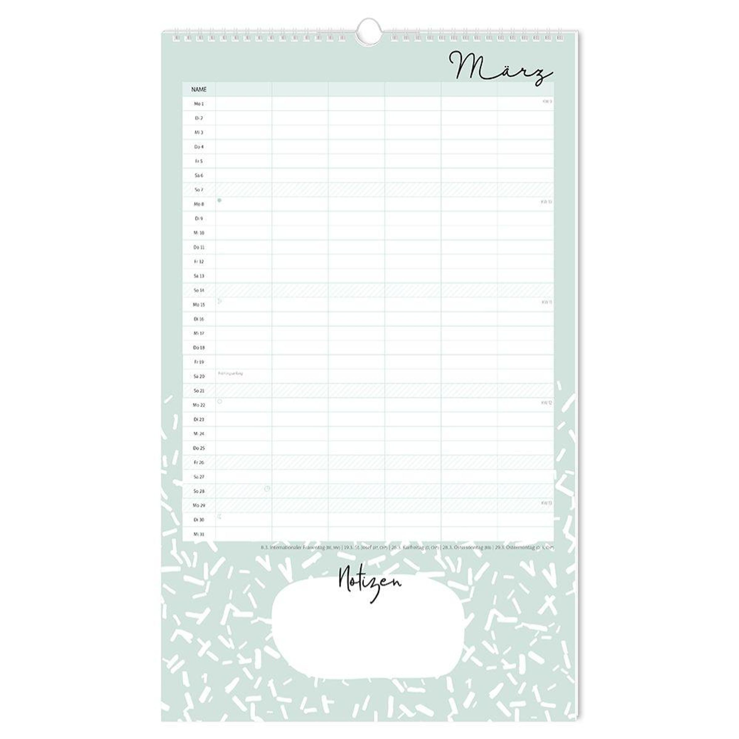 Hello Family! Dieser XXL Familienplaner ist der perfekte Jahresplaner für bis zu 6 Personen. Ein Monat auf einer Seite und 6 extra breite Spalten sorgen für den perfekten Überblick und leiten die ganze Familie durch den Alltag. Schlichtes Design in Kombination mit motivierenden Sprüchen sorgen Monat für Monat für gute Laune. Feiertage und Schulferien sind im Familienplaner natürlich eingetragen. Ein zusätzliches Highlight ist der extra Adventskalender für eine schöne Vorweihnachtszeit.