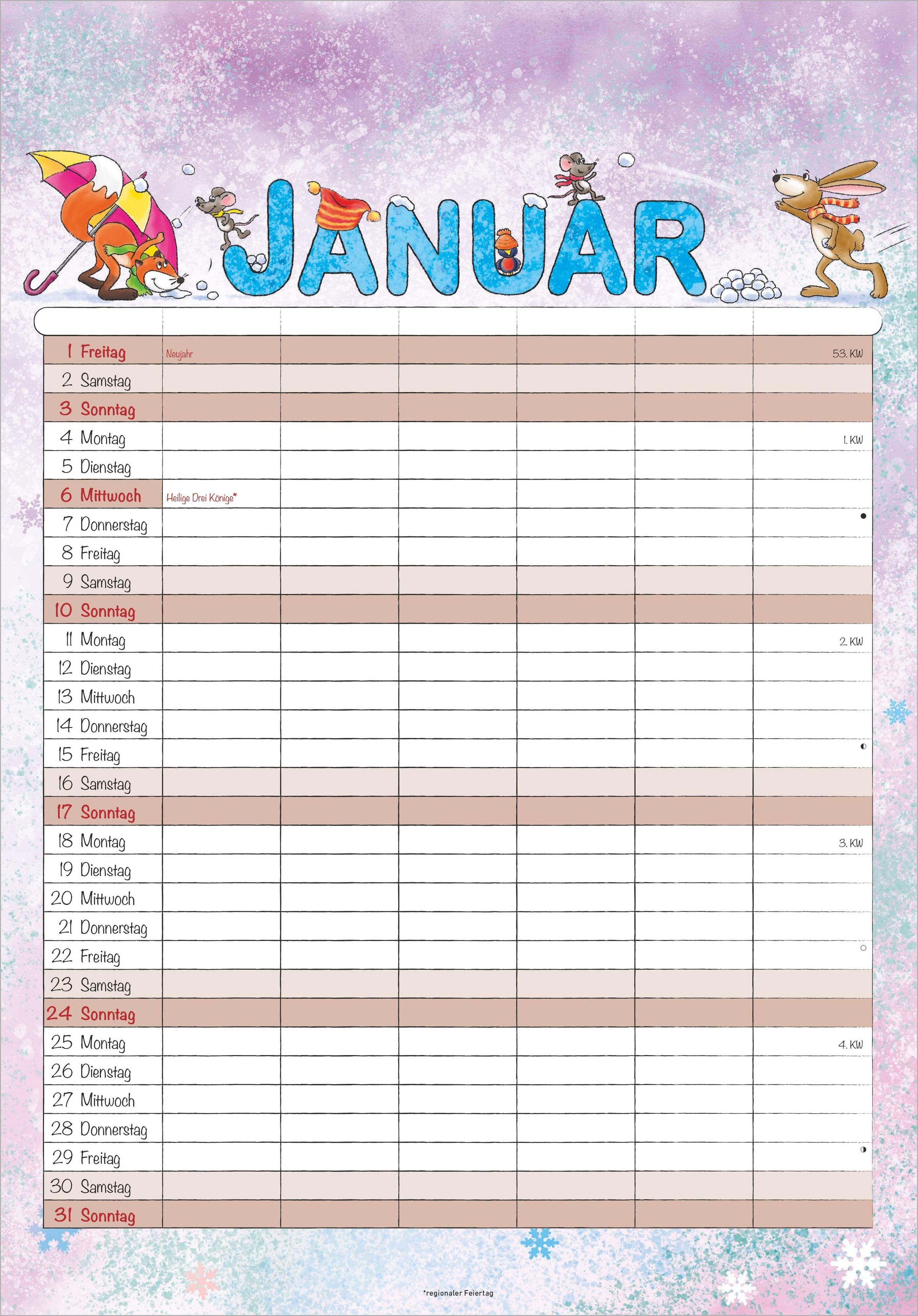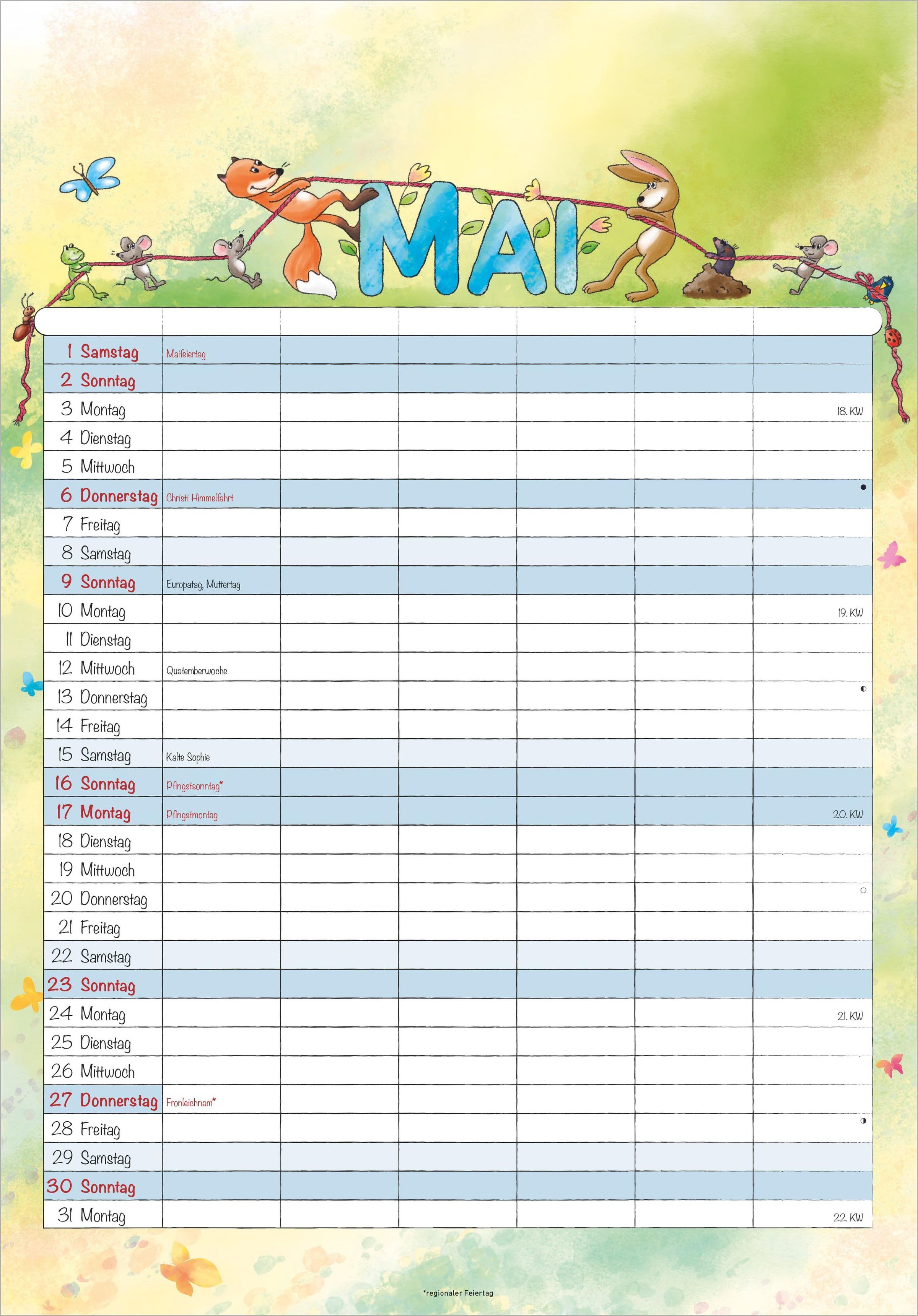 | Kalender, Kalender, 6 Spalten, mit Ferienterminen, Spiralbindung | EUR 10,21* |