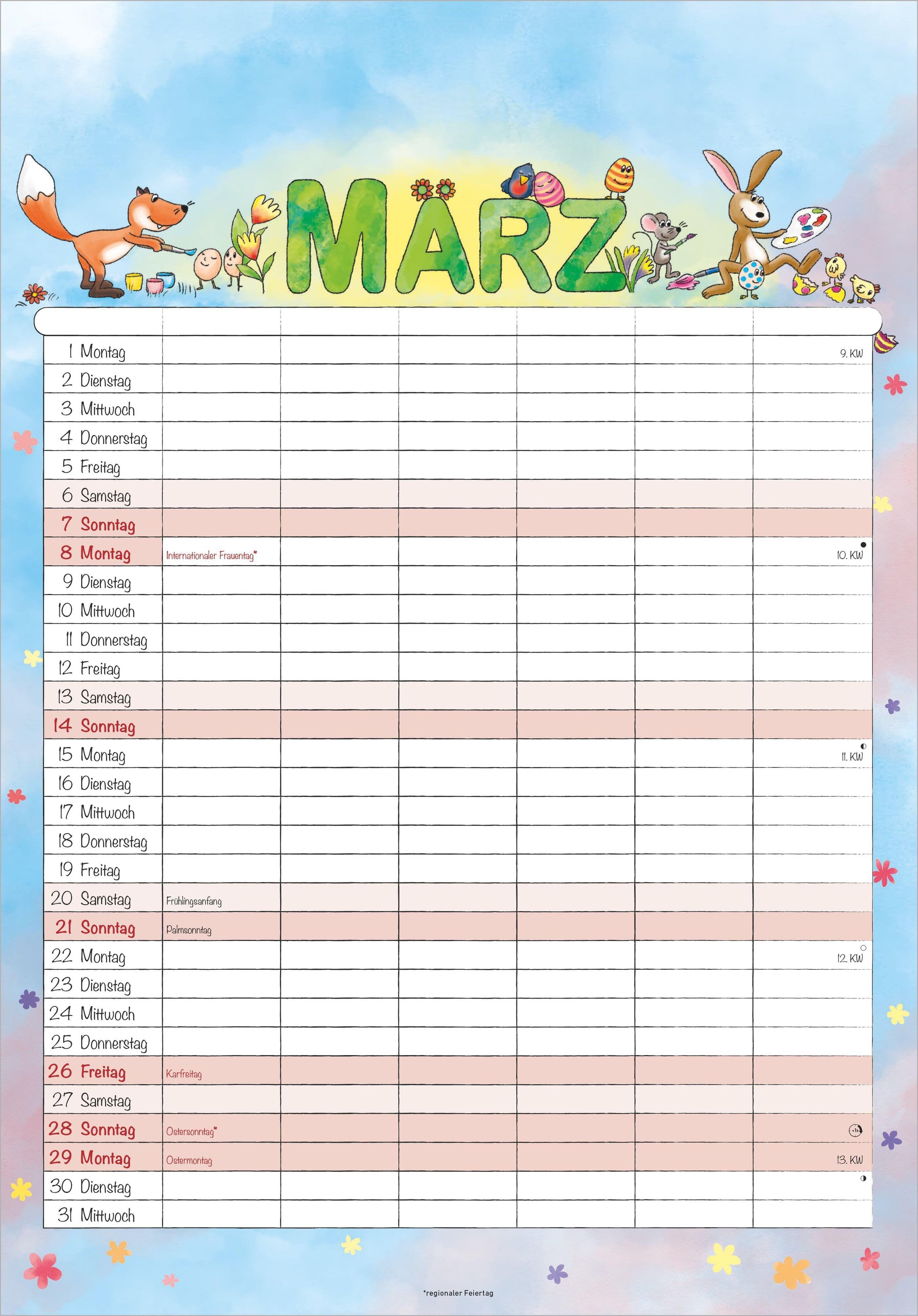 Mit seinem Format von 23, 7 x 34 cm und dem übersichtlichen Kalendarium bietet der Kalender reichlich Platz für Notizen und wichtige Eintragungen. Praktische Extras wie Jahresübersichten 2027 / 2028, ein Pollenflugkalender, der 100-jährige Kalender sowie alle wichtigen Ferien- und Feiertage (DE/AT/CH) runden die Ausstattung ab. Die stabile Rückwand und die hochwertige Ringbindung machen den Kalender besonders langlebig und einfach zu handhaben.