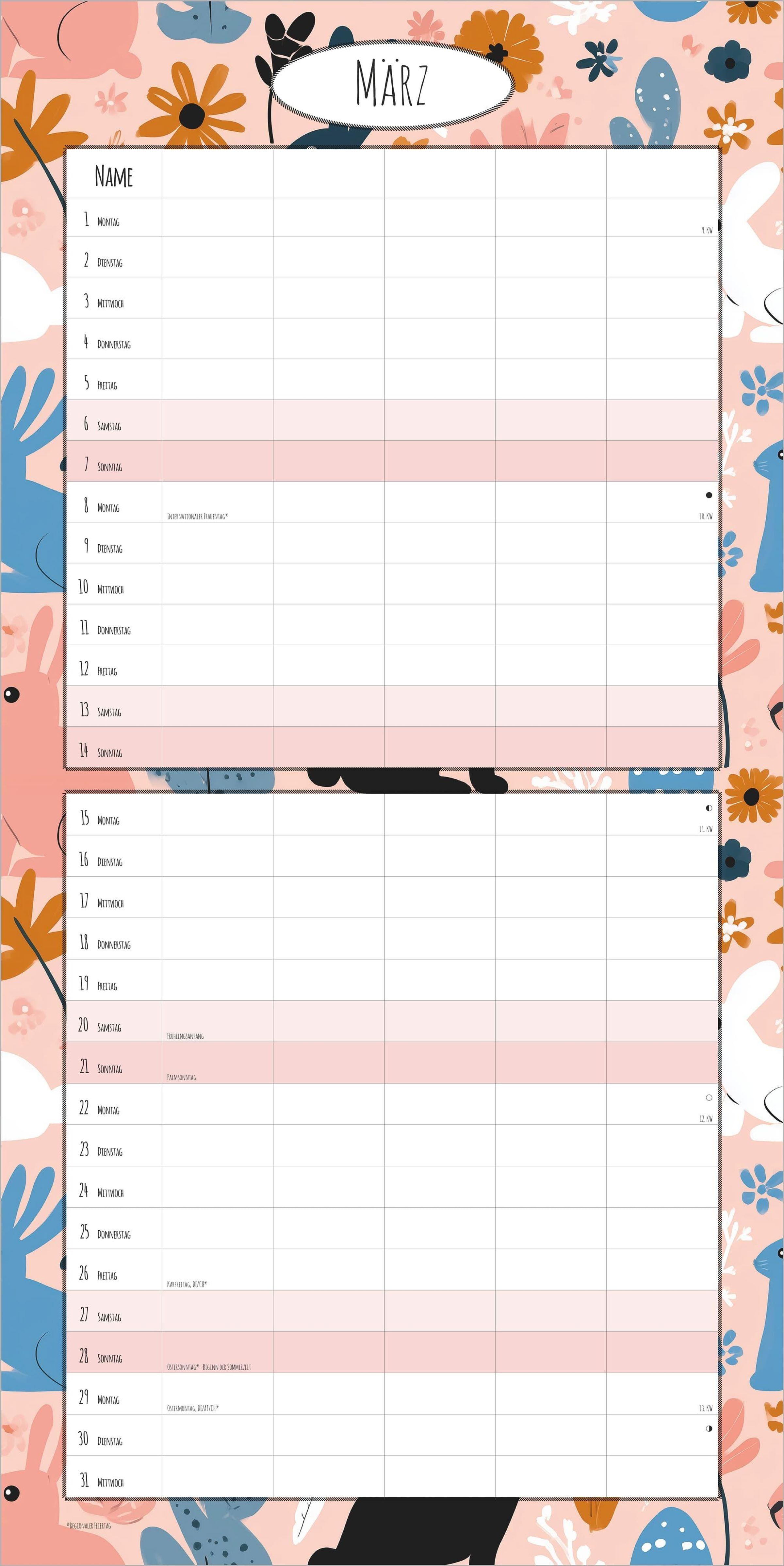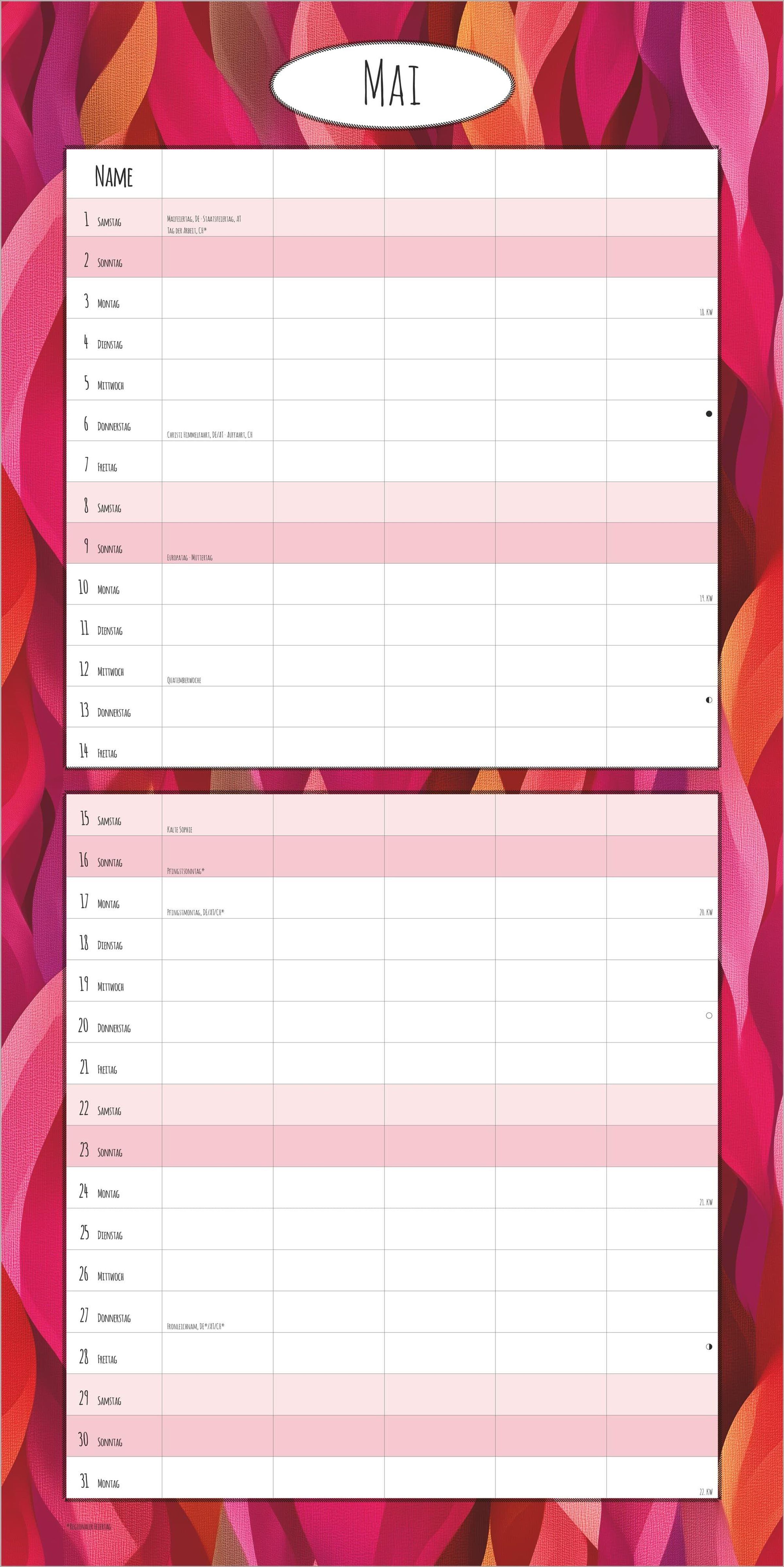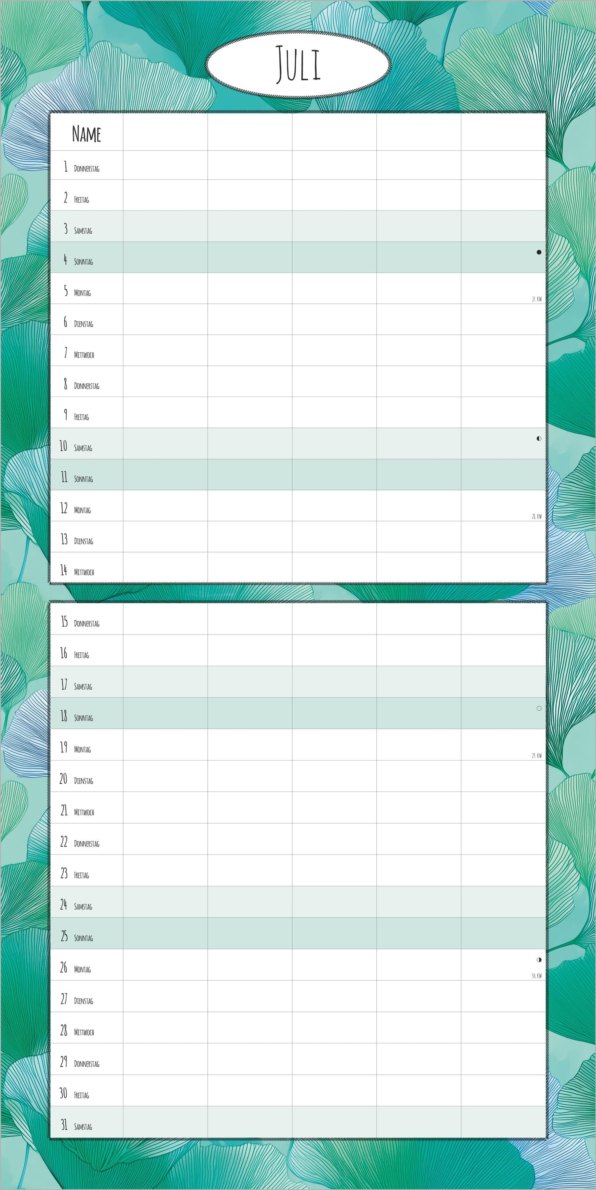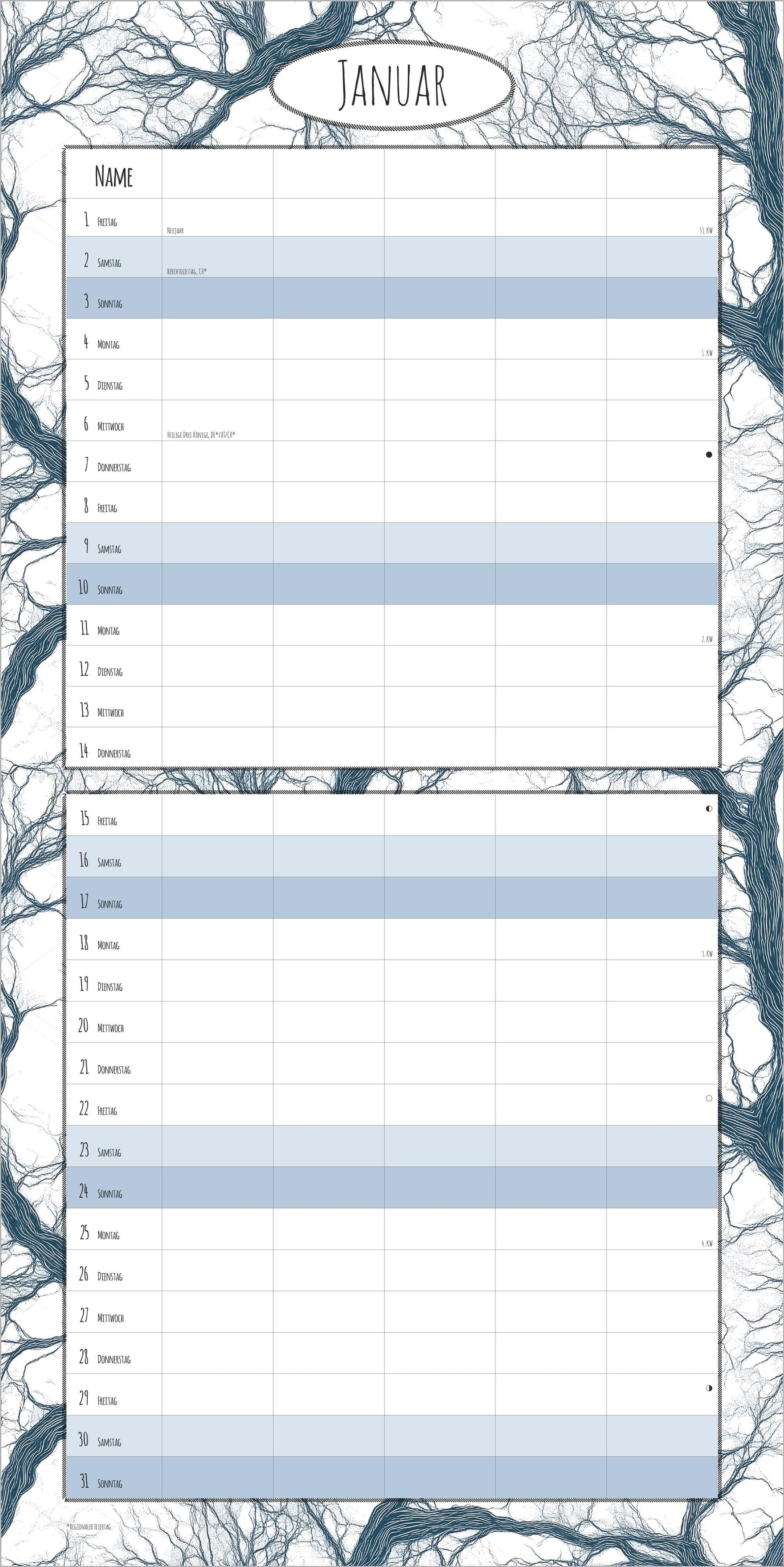 Mit Ferienterminen (DE/AT/CH) & Mondphasen