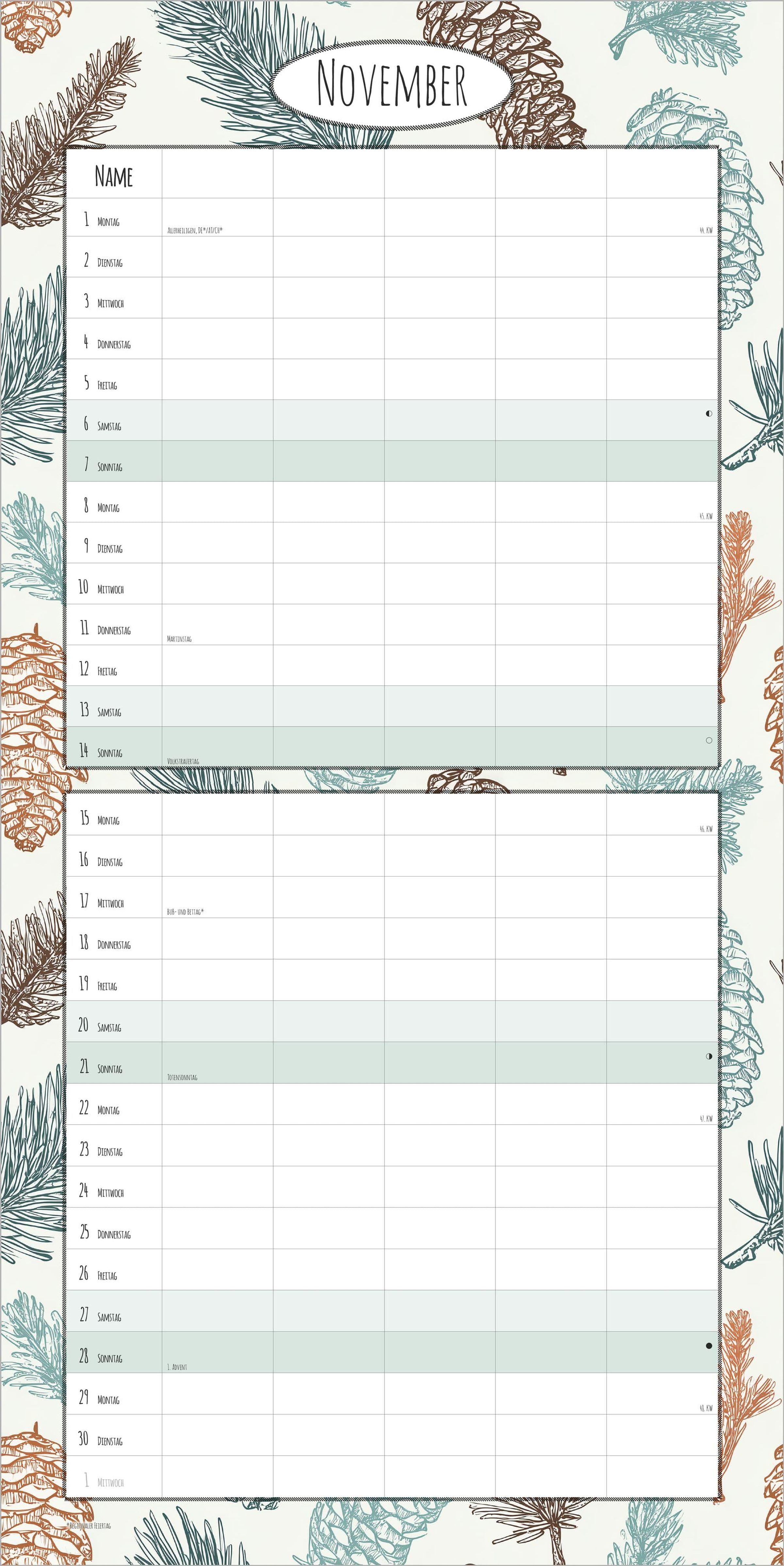 Mit Monatsübersicht vom Vor- & Folgemonat