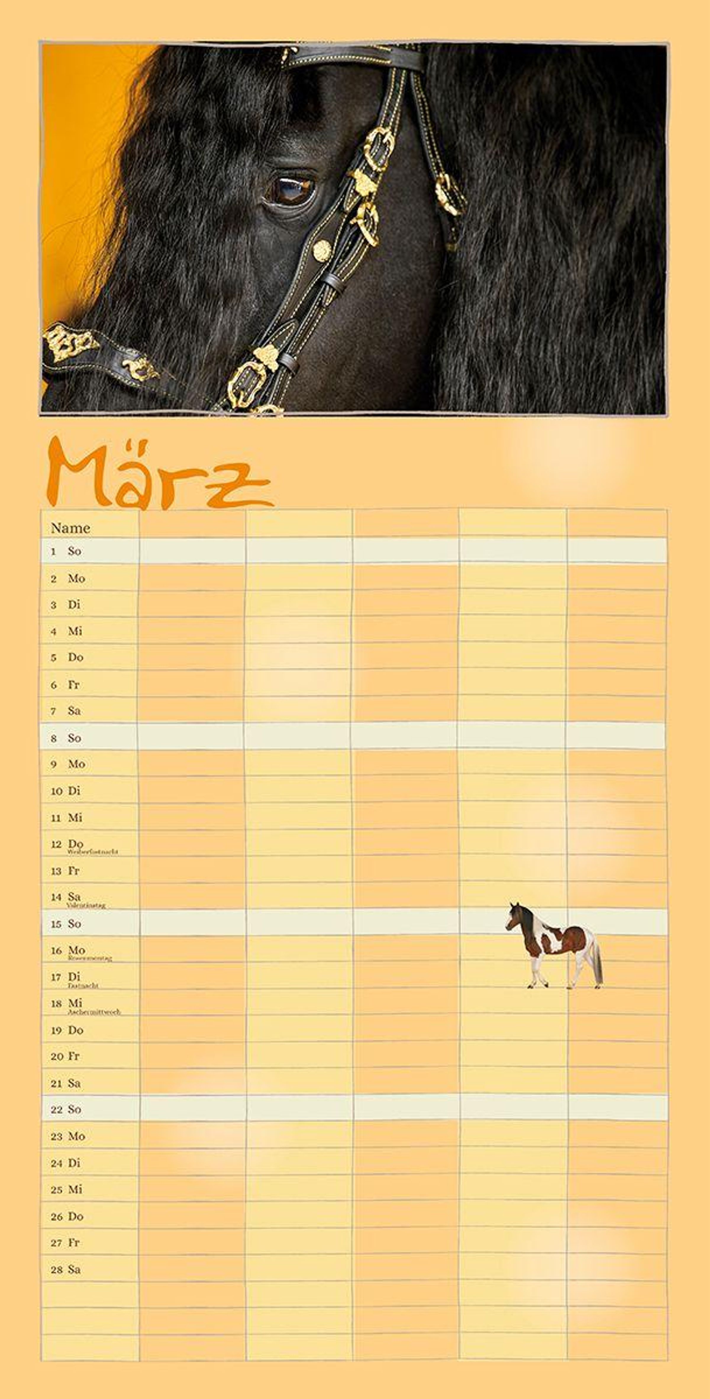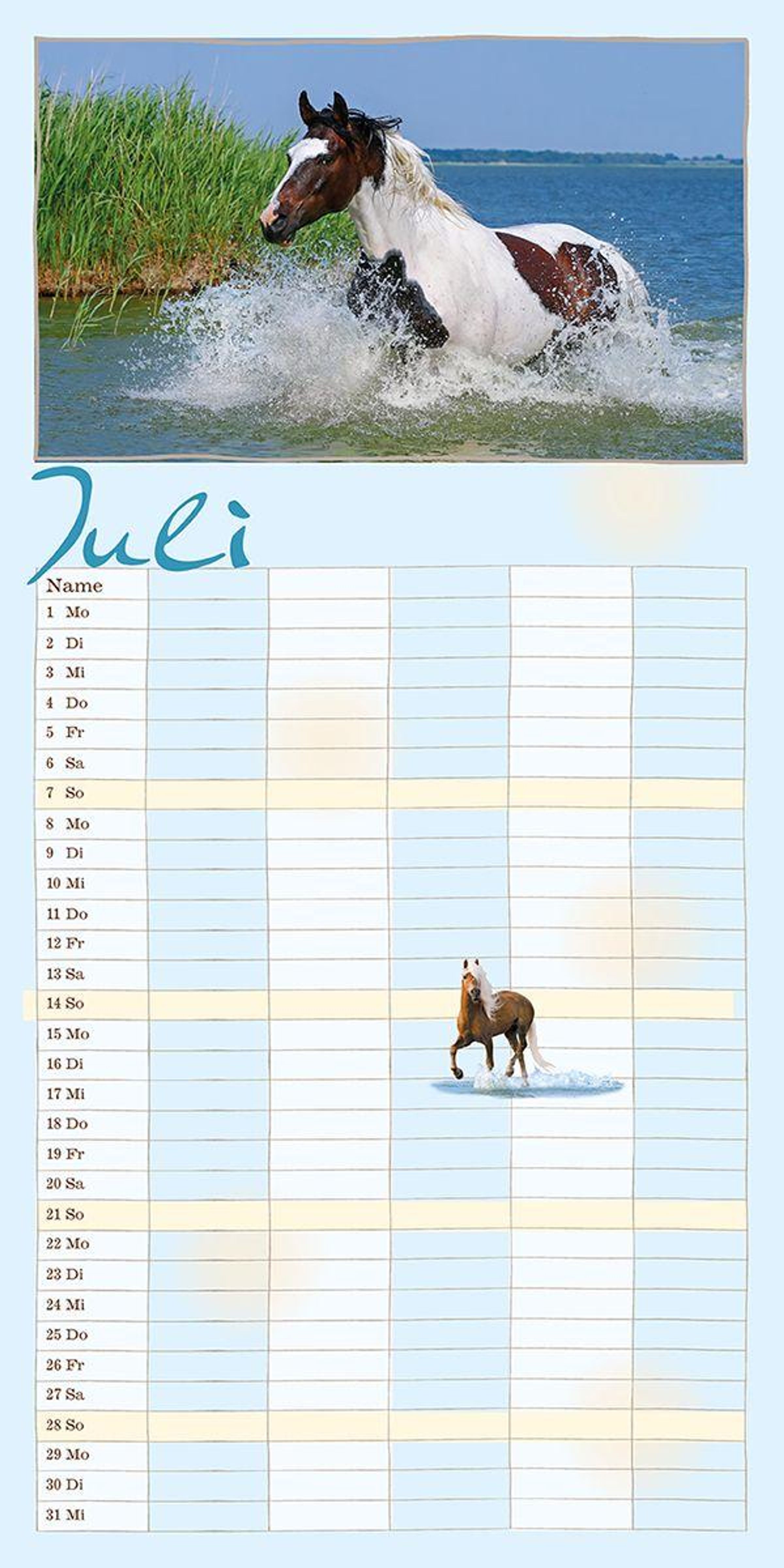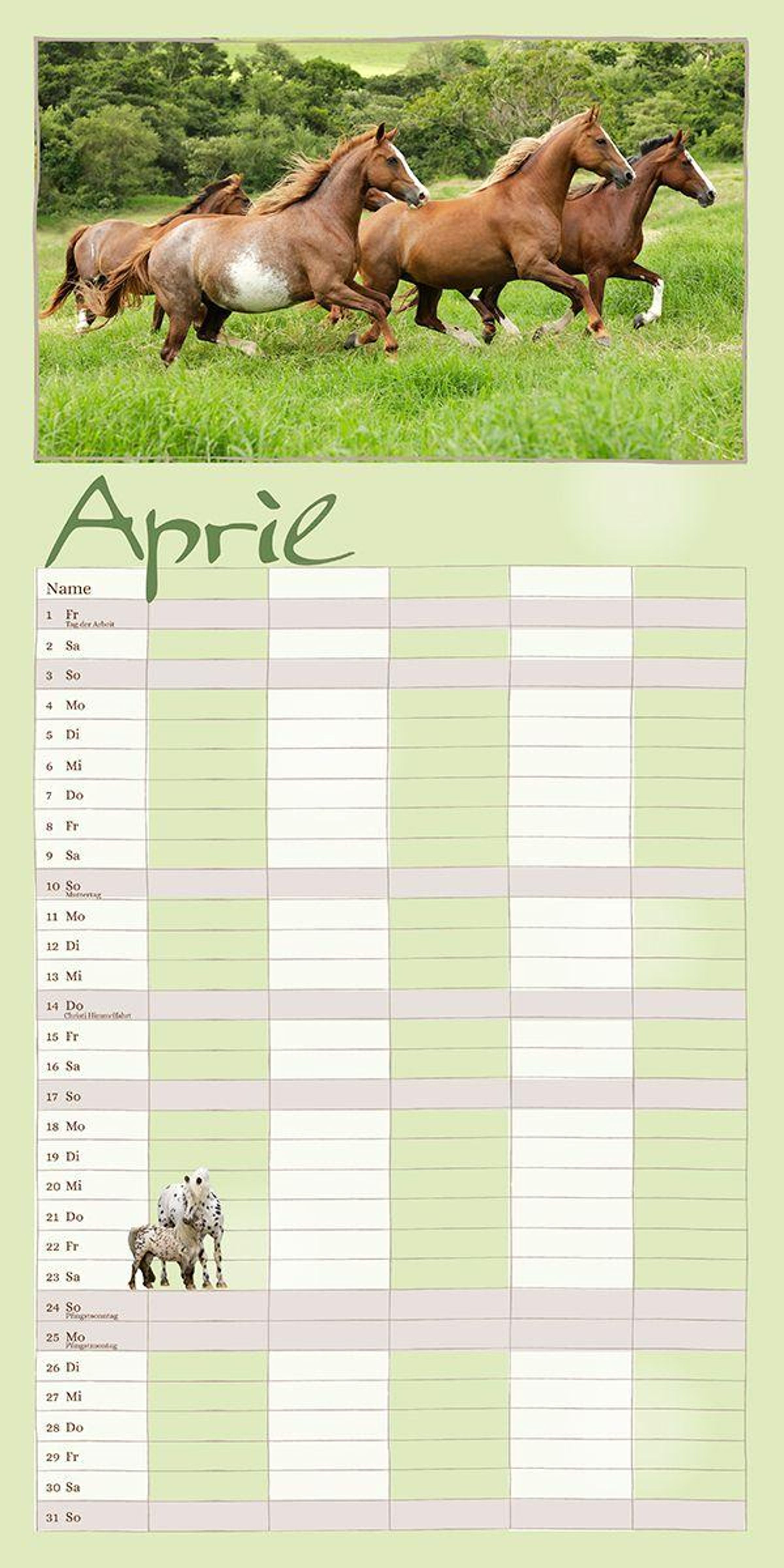 Der Terminkalender für die ganze Familie Dieser Kalender bietet viel Platz für alle möglichen Notizen - ein Terminkalender für die ganze Familie! Er ist auch zum Träumen gemacht, zum Planen von vielen Dingen, Terminen und Aktivitäten - nicht nur rund um das Pferd. Jedes Motiv in diesem Familienplaner zeigt die besondere Ausstrahlung dieser herrlichen Wesen und man plant in Gedanken schon den nächsten Ausritt.