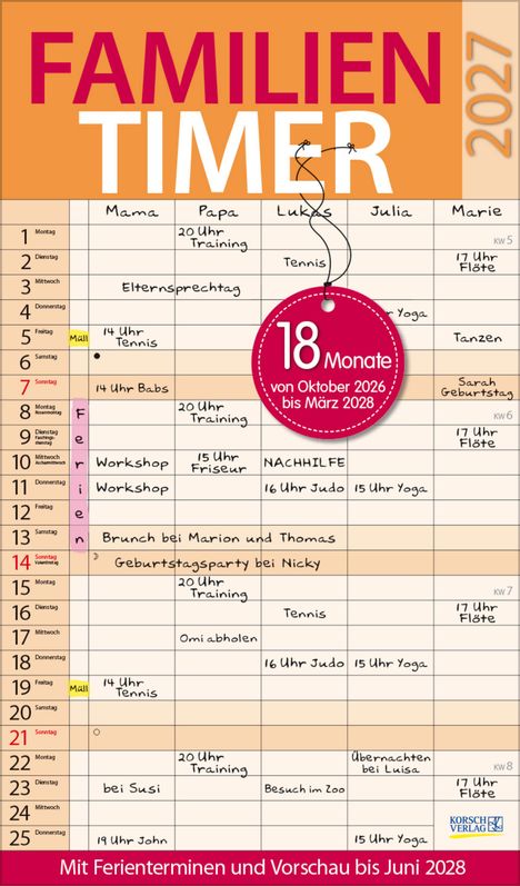 Familientimer 18 Monate 2027/2028 (Kalender)