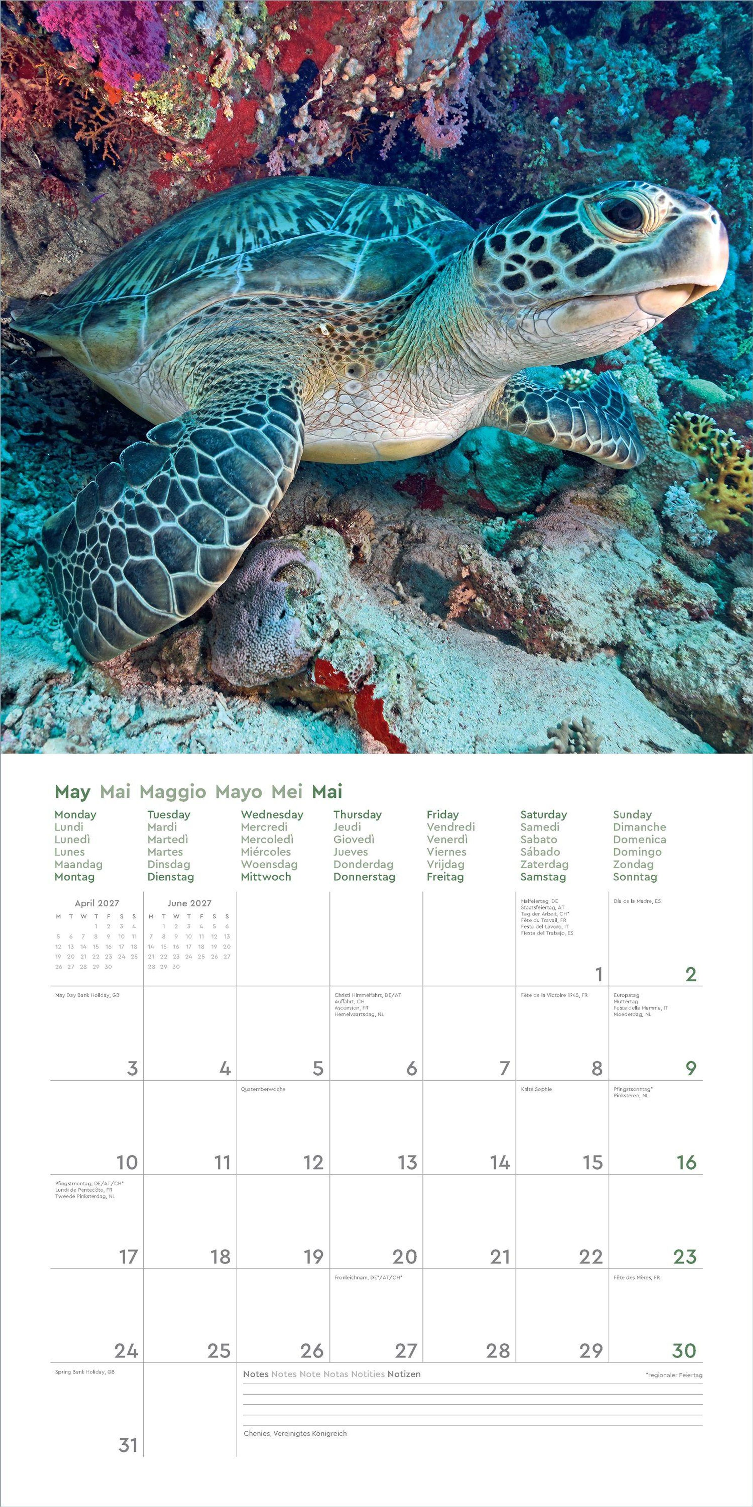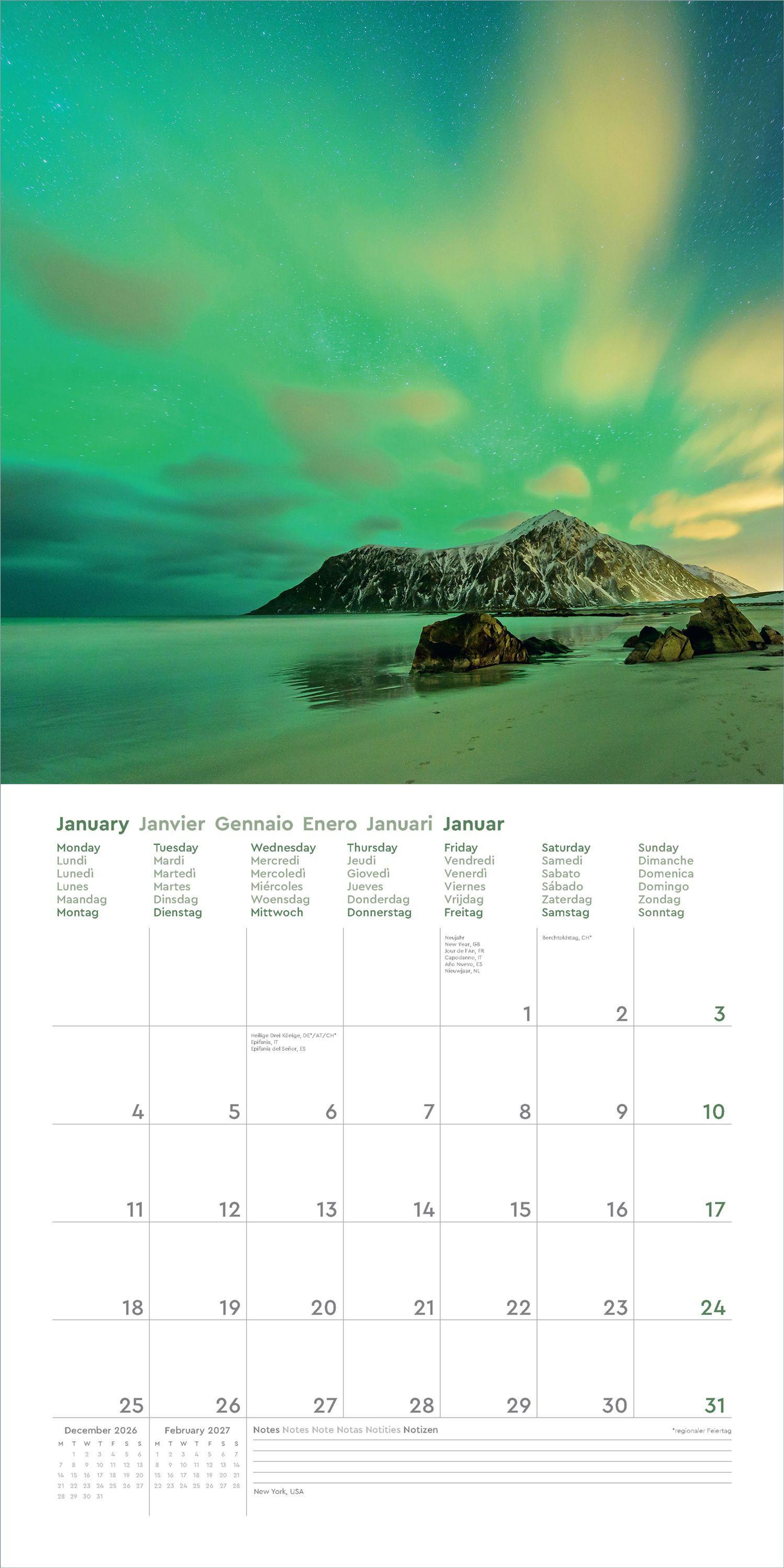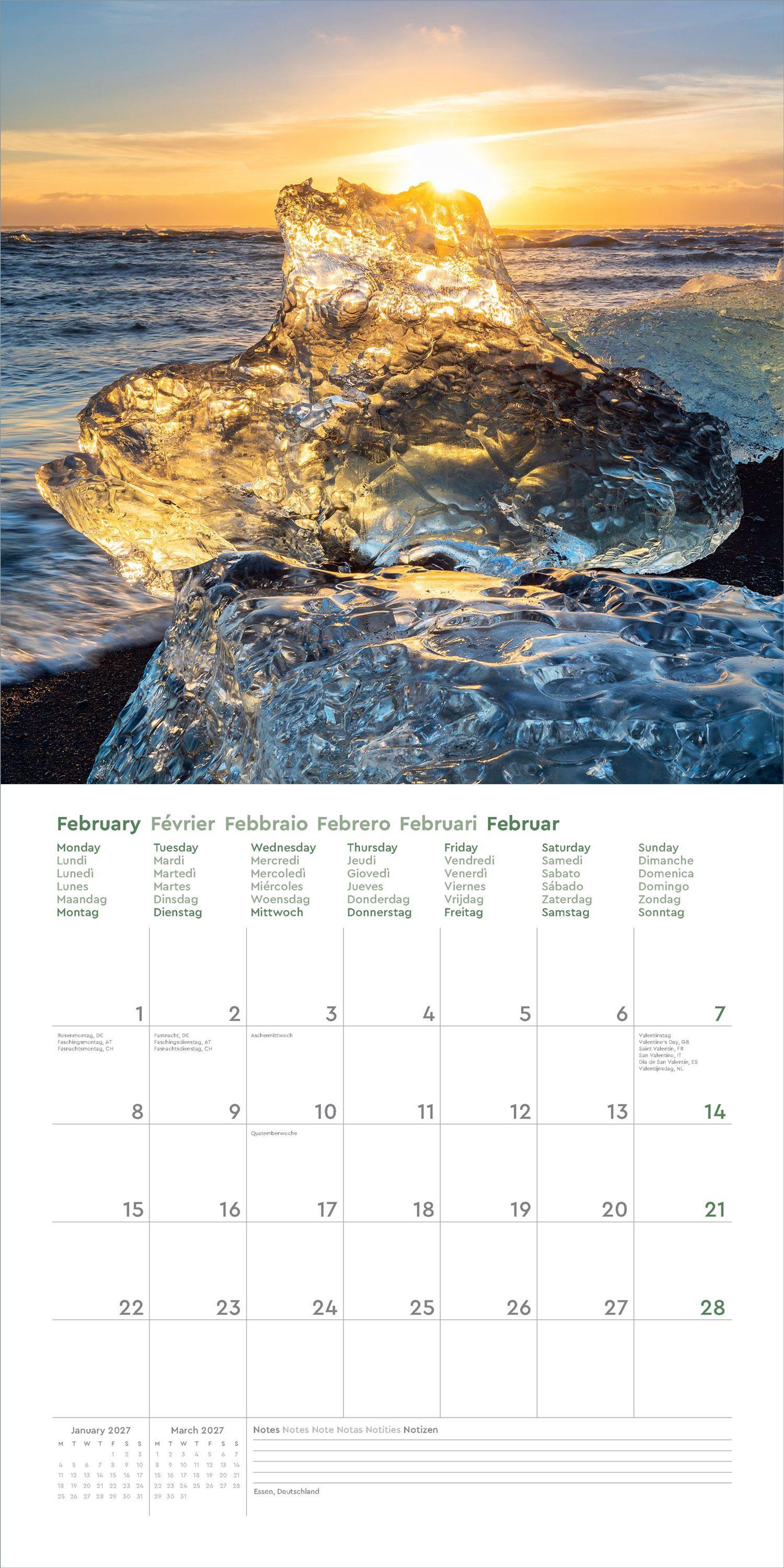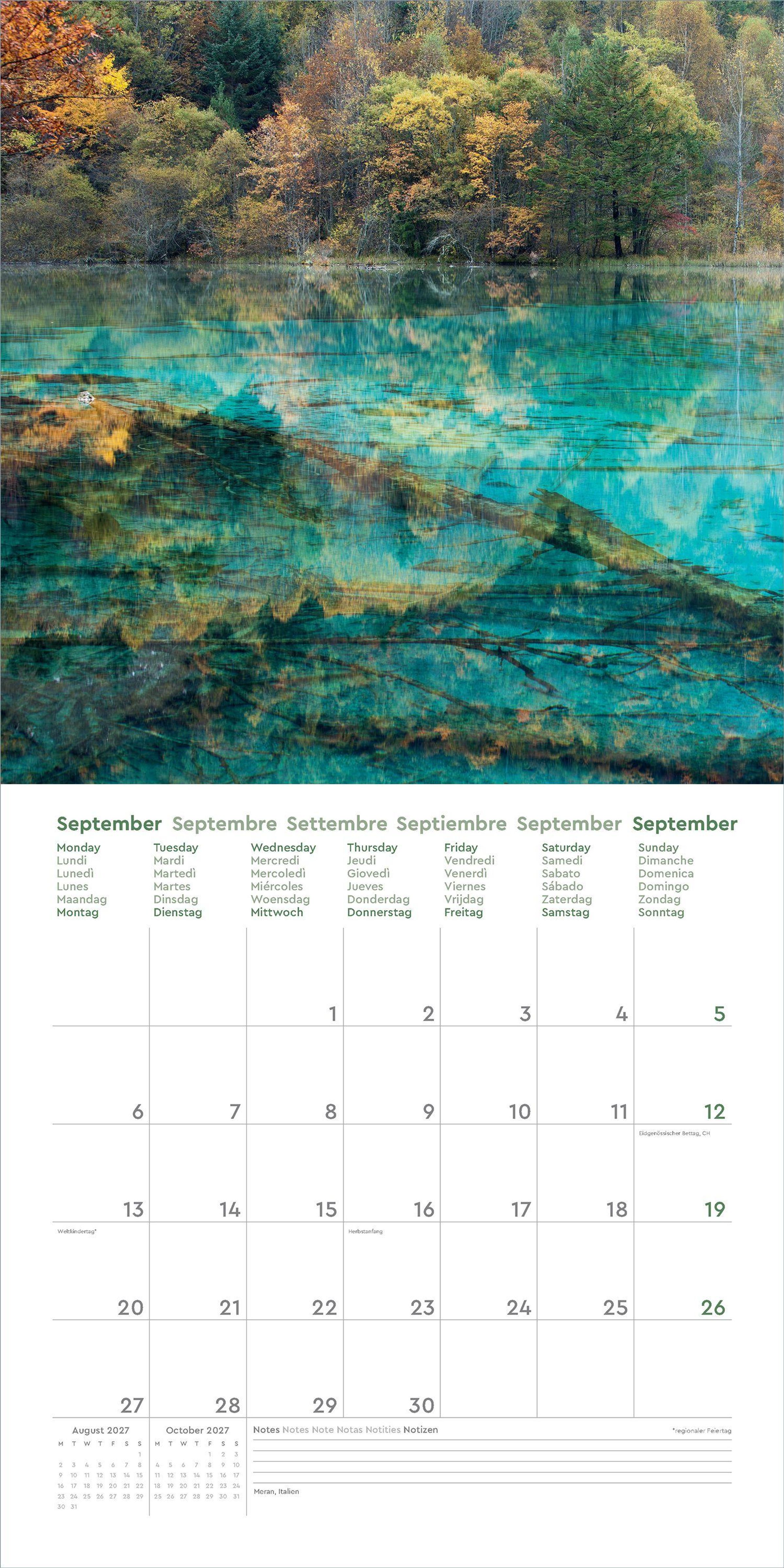 • Farbenprächtiger Wandkalender mit Monatskalendarium für Notizen