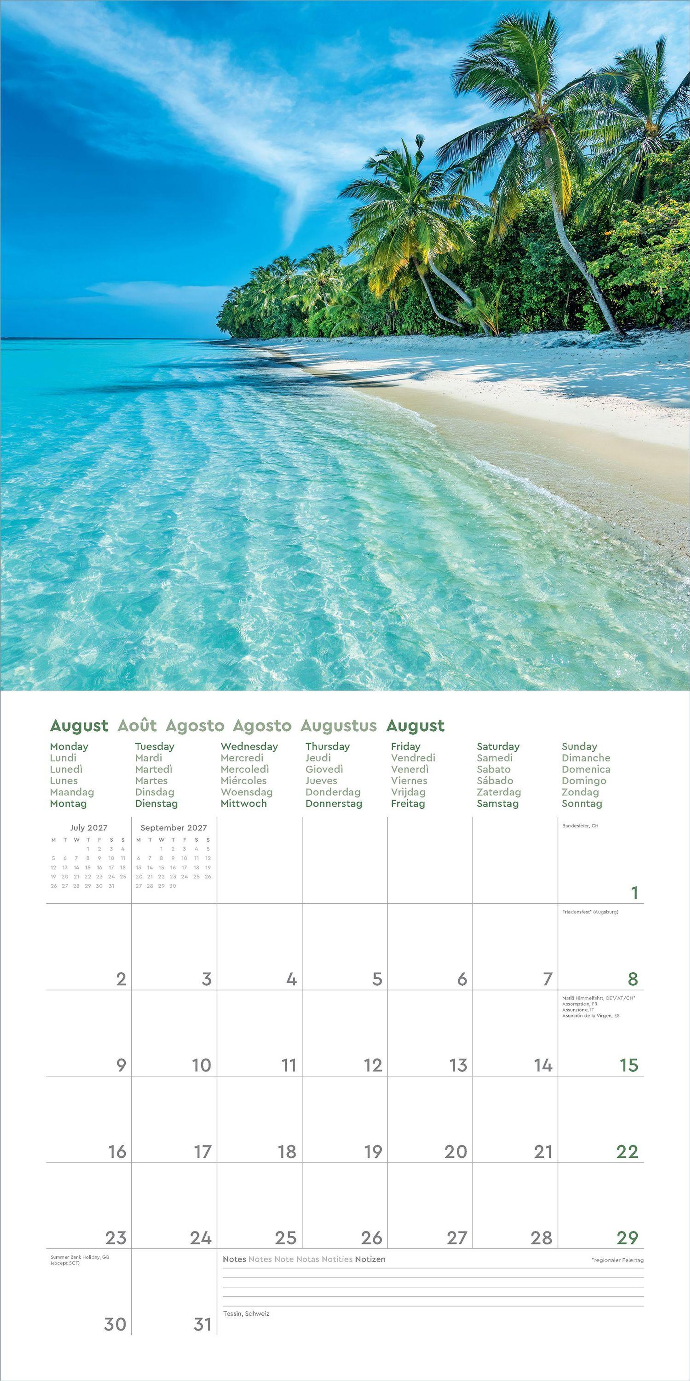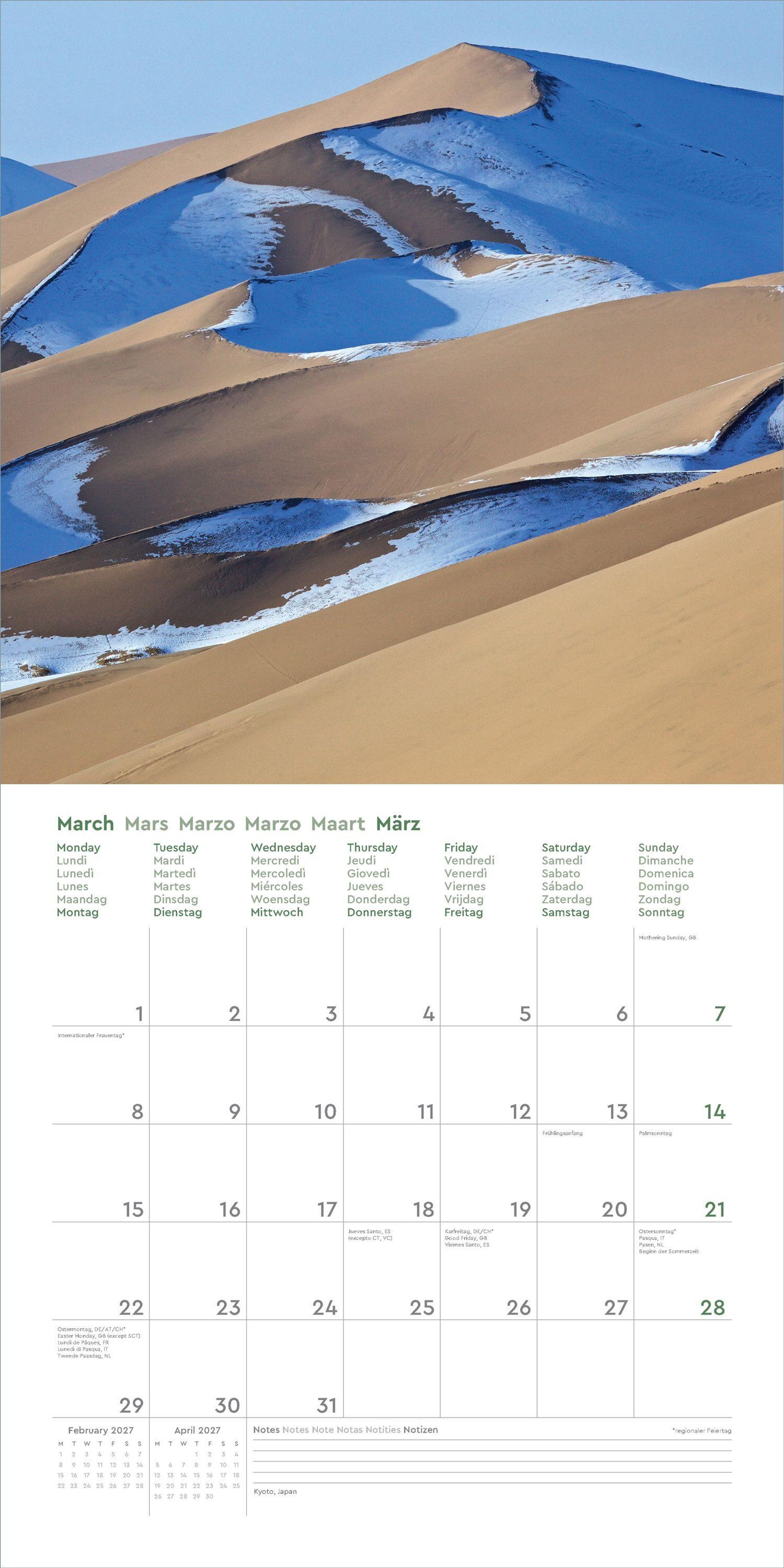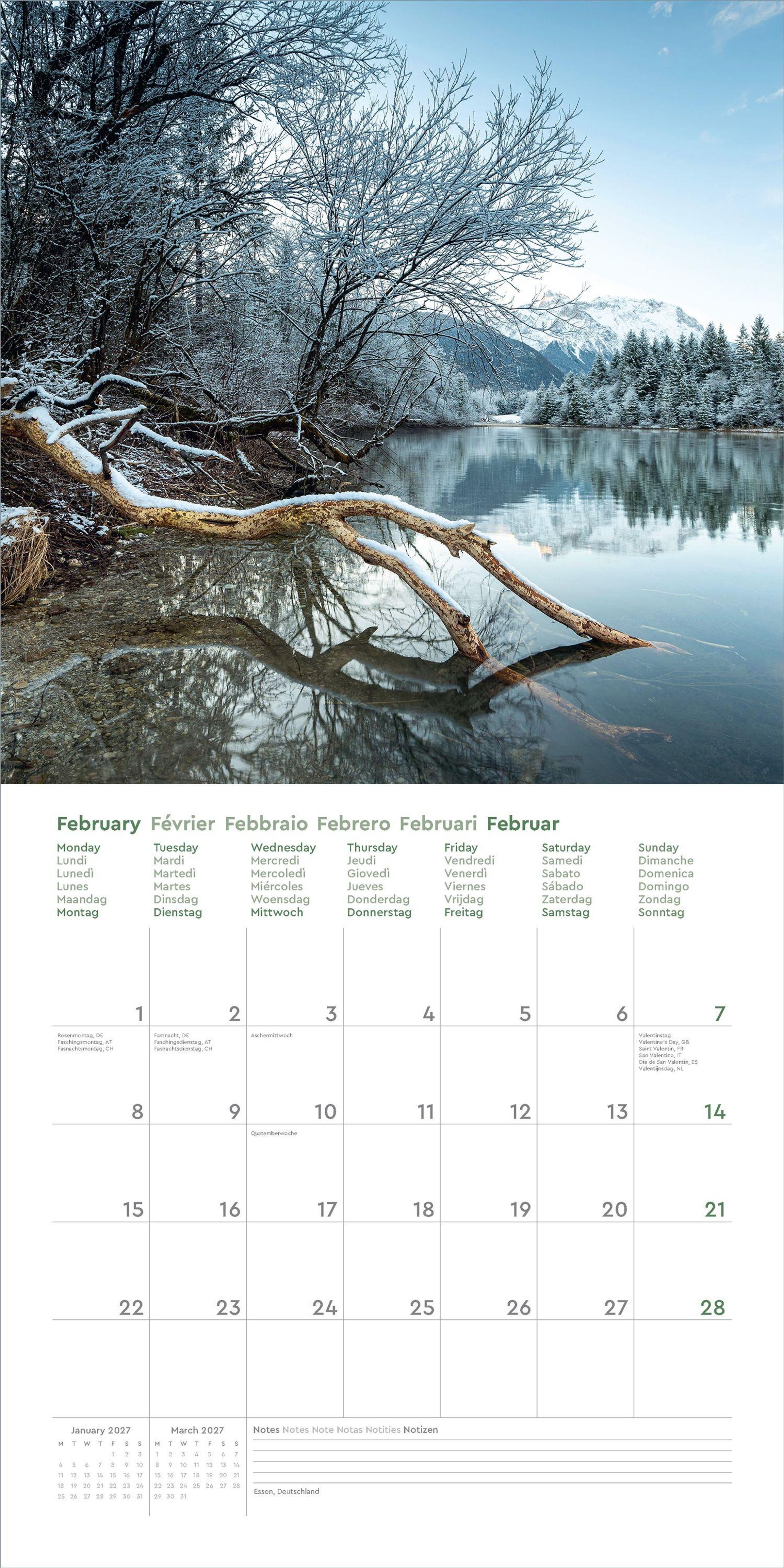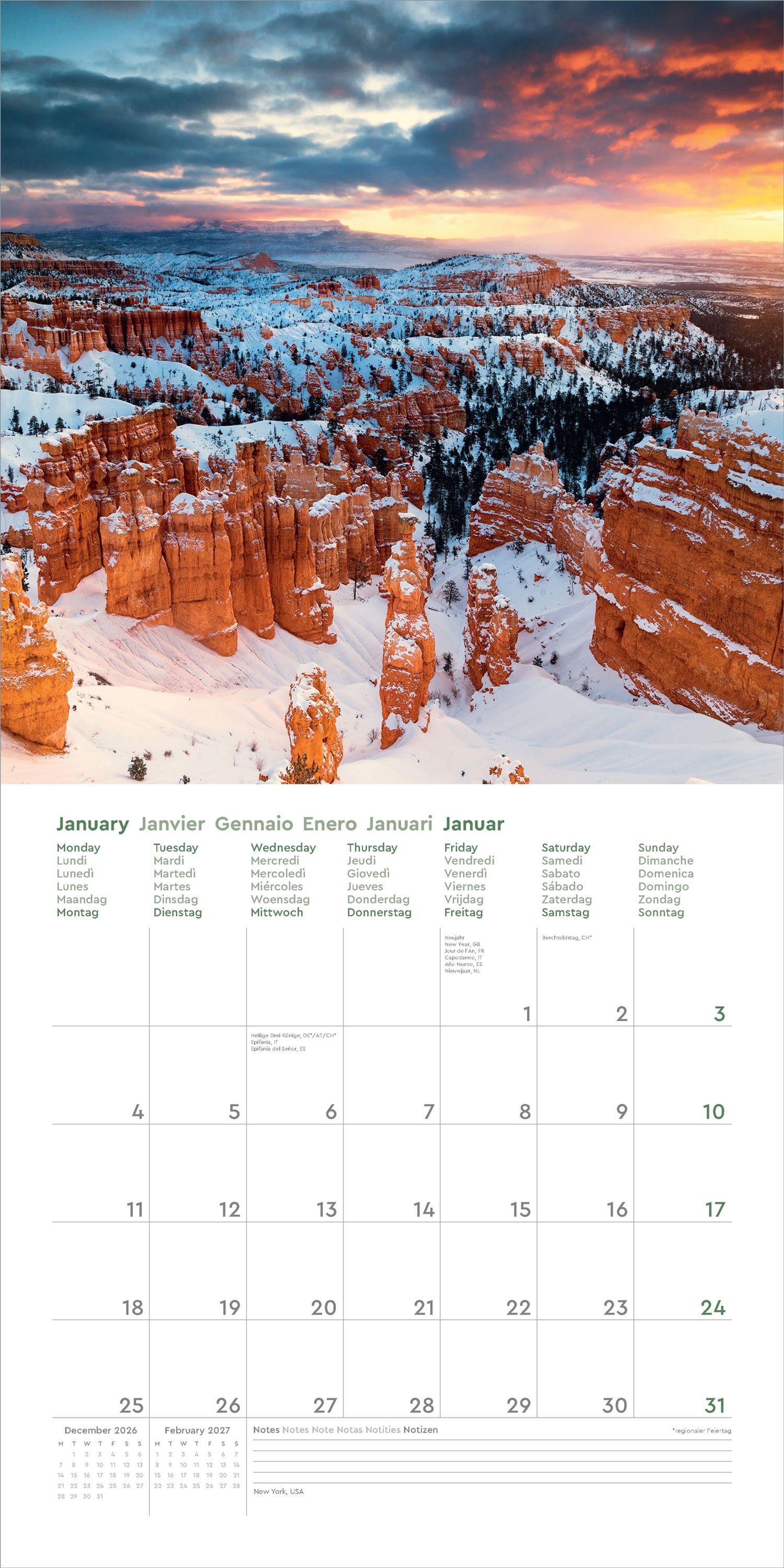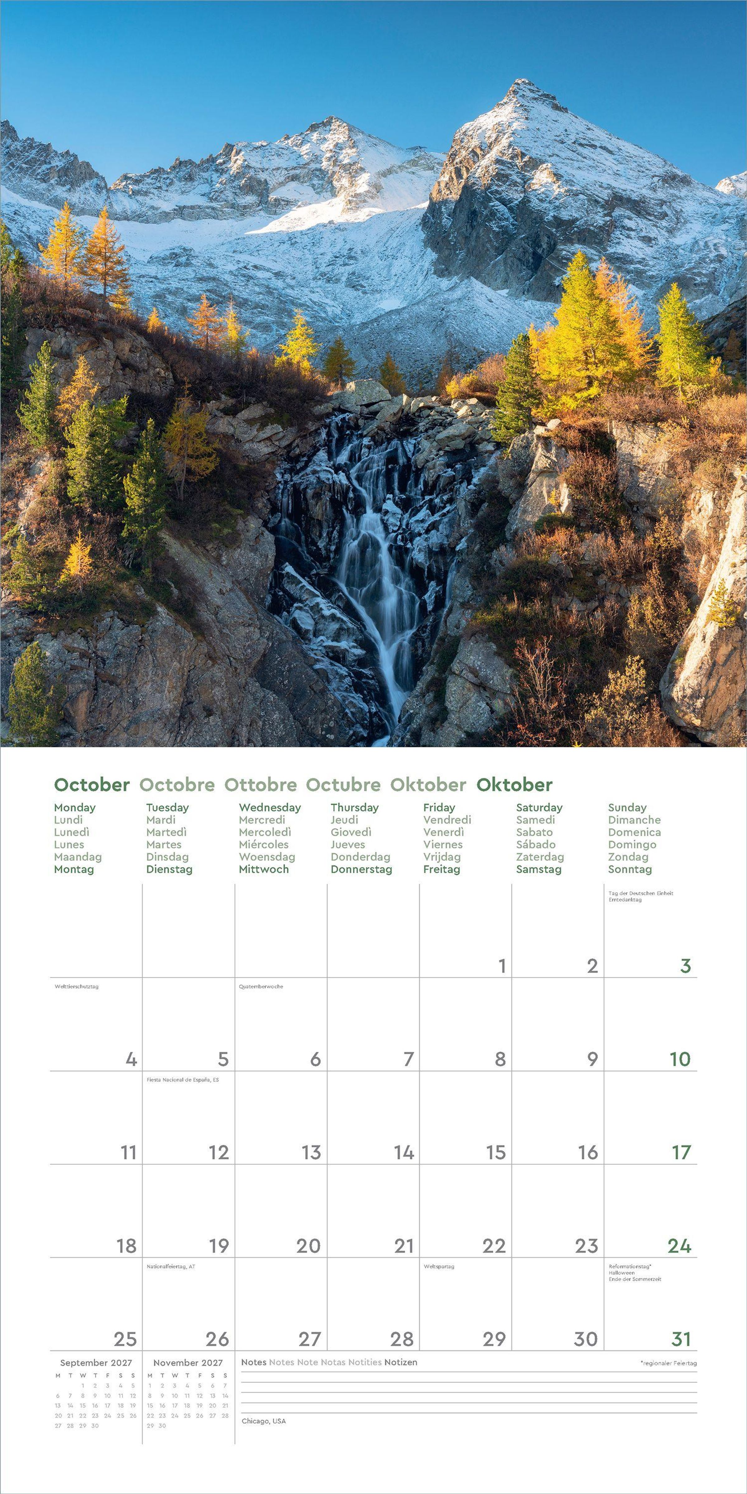 • Farbenprächtiger Wandkalender mit Monatskalendarium für Notizen