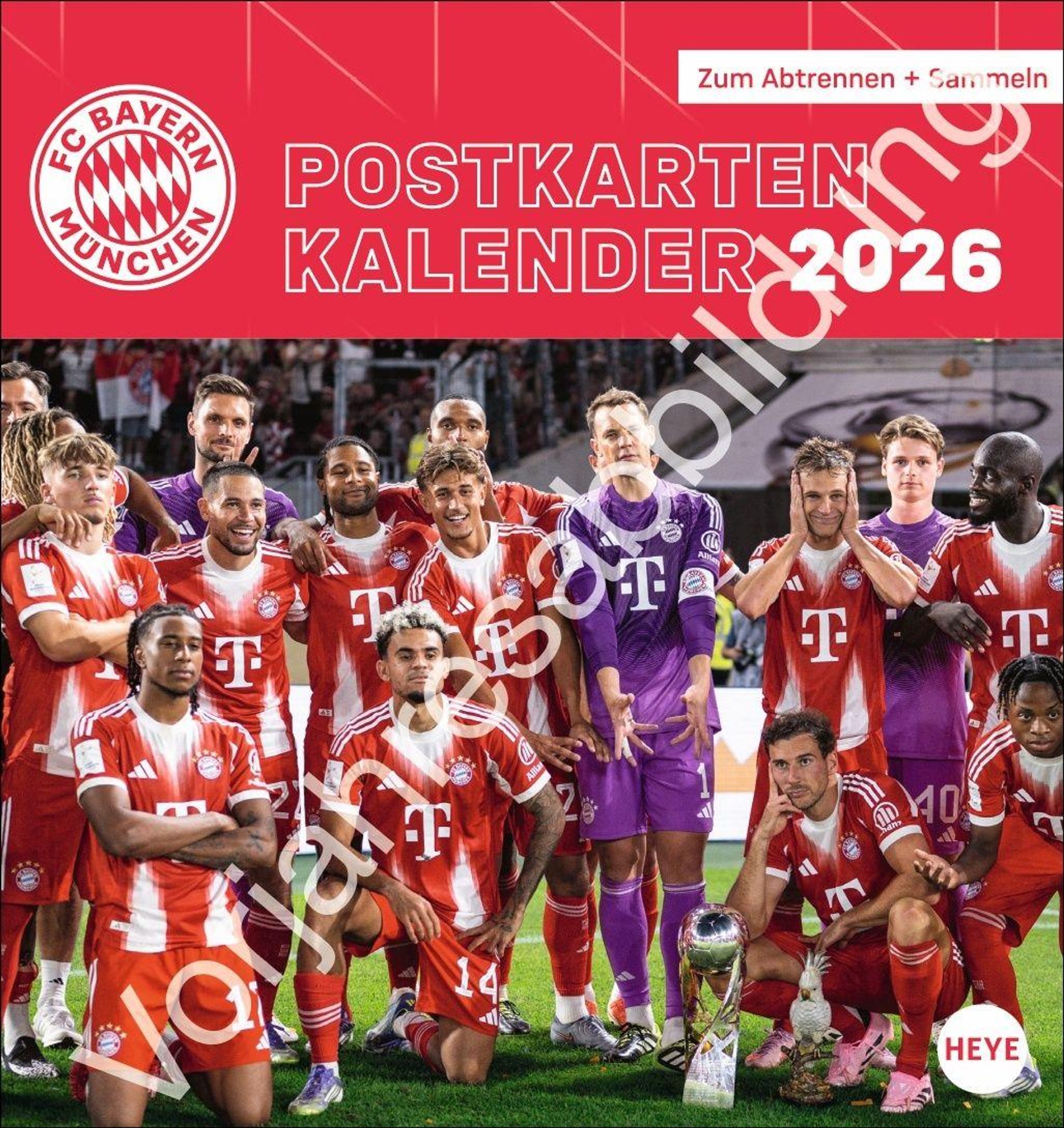 - Monats-Tischkalender zum Aufstellen oder Aufhängen mit den Stars des FC Bayern. Ein kleiner Foto-Kalender mit Postkarten zum Versenden an Fans.