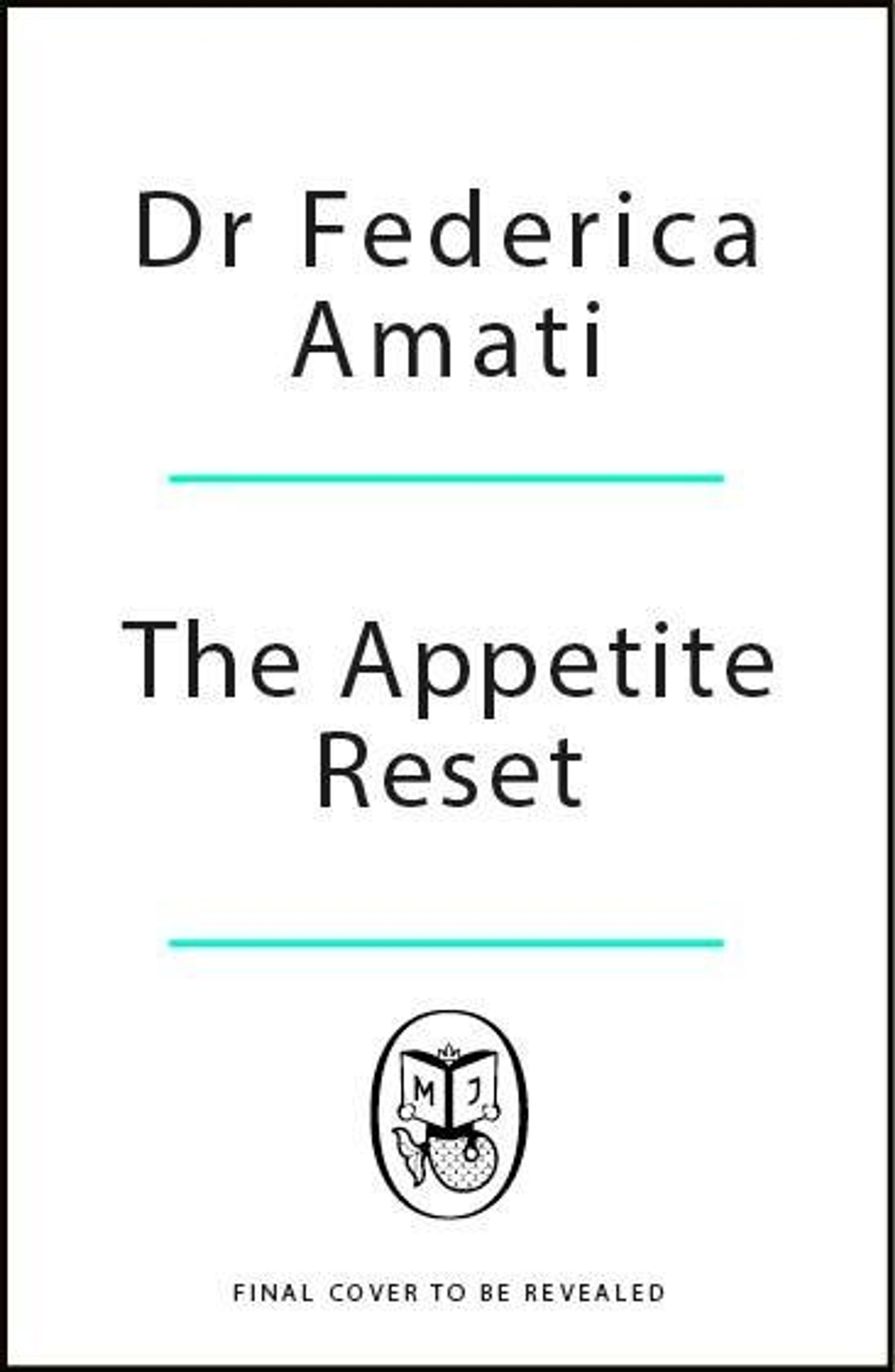 Dr Federica Amati, The Appetite Reset. Darunter ein einfaches Logo mit Buchsymbol. Text: "FINAL COVER TO BE REVEALED"., Buch