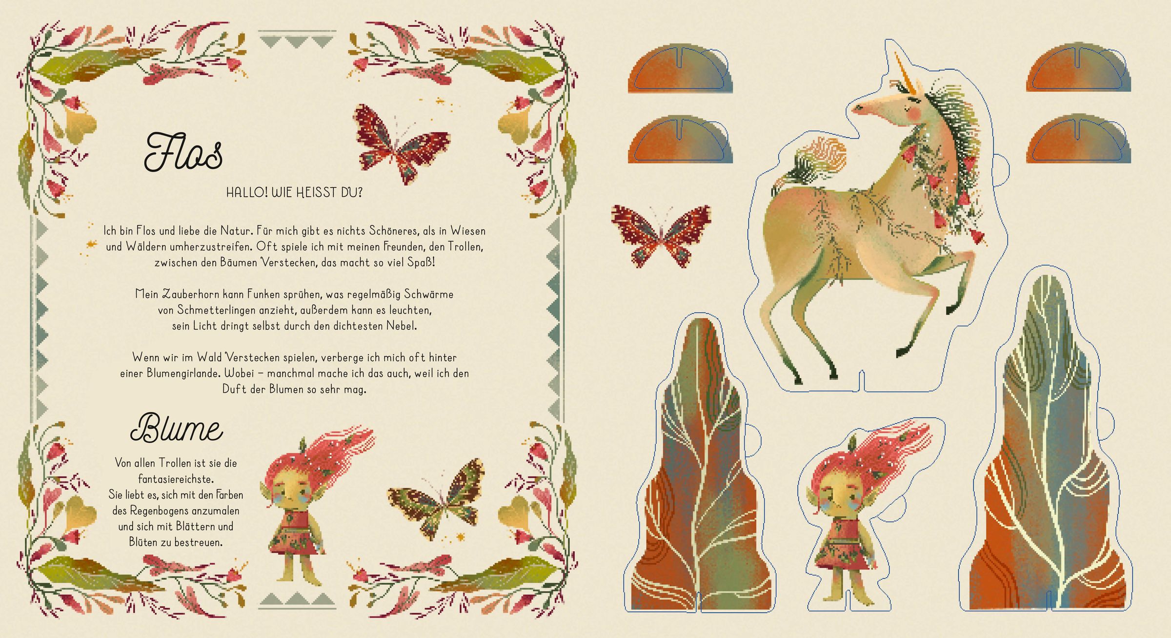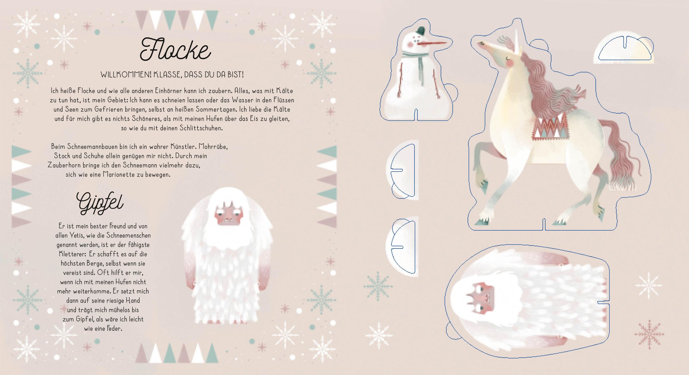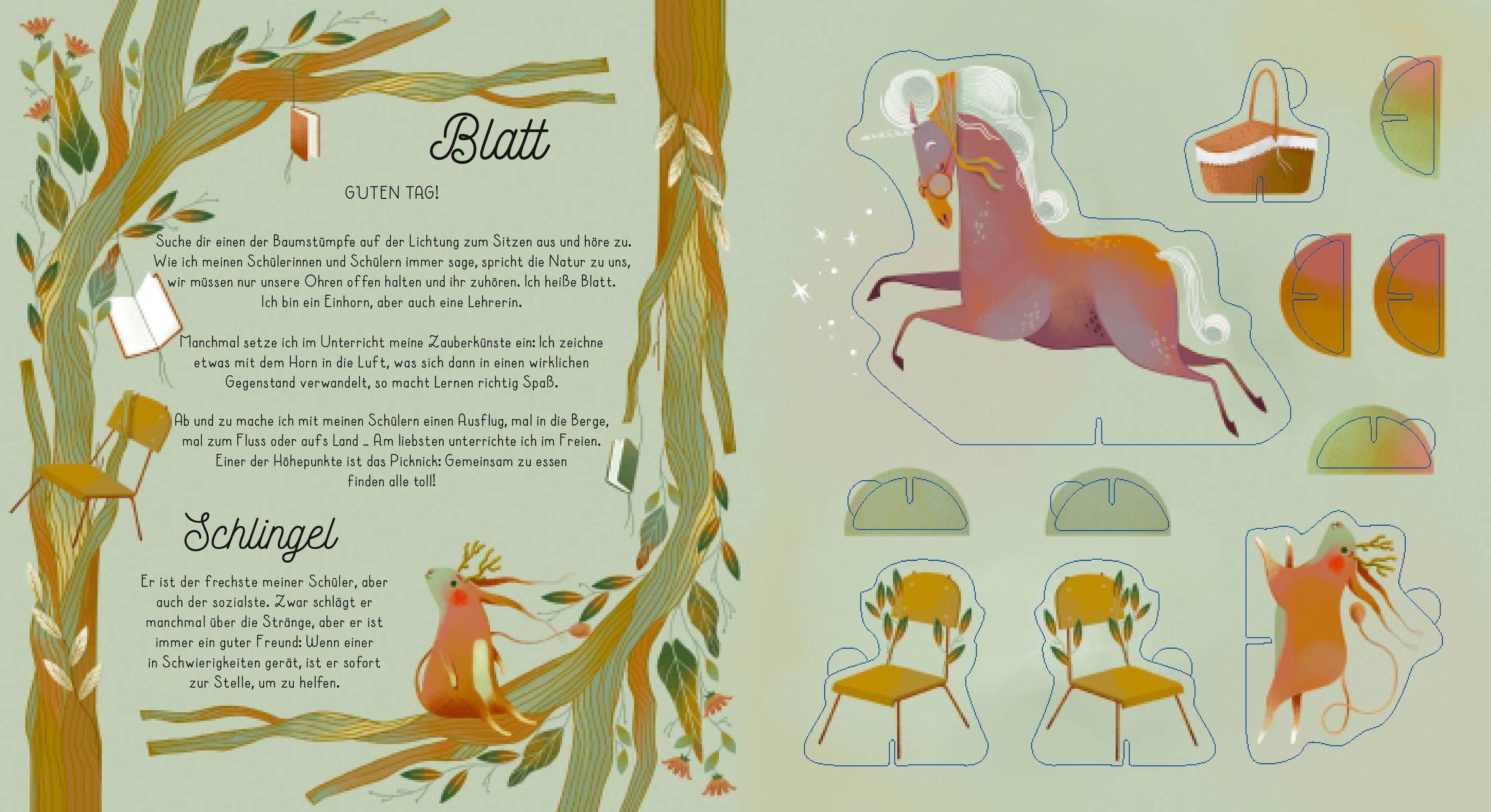 Hinter dem Horizont, am Ende des Regenbogens liegt sie - die fantastische Welt der Einhörner. Hier ist alles möglich und du kannst jeden Tag aufs Neue ein zauberhaftes Abenteuer erleben. In diesem magischen Einhorn-Bilderbuch entdeckst du ihr poetisches Paradies in zarten Farben. Du findest darin auch viele 3D-Figuren von den Einhörnern und ihren Freunden, damit du mit allen spielen kannst. Einfach die gestanzten Spielfiguren entnehmen, in die Standfüße aus dickem Karton stecken und loslegen. Tauche mit ihnen ein in den Ozean, feiert zusammen ein märchenhaftes Fest, tanzt im Schnee oder besucht die Einhorn-Schule im Wald.