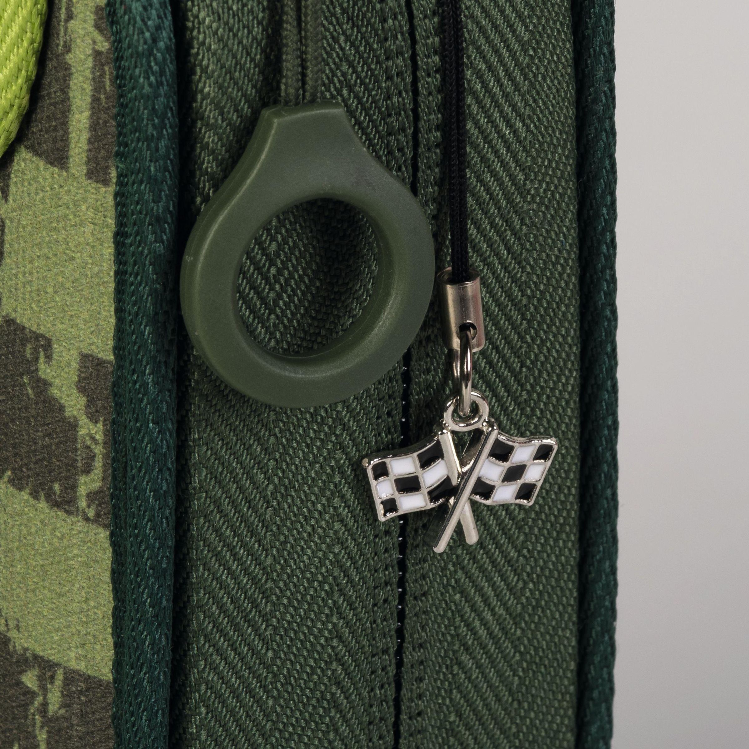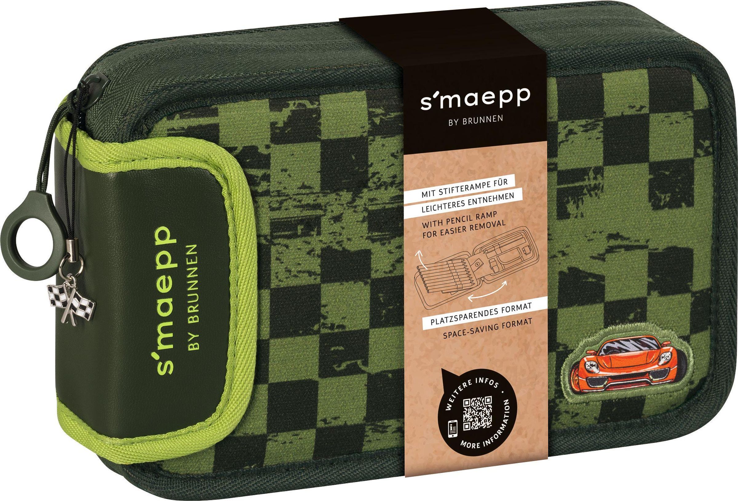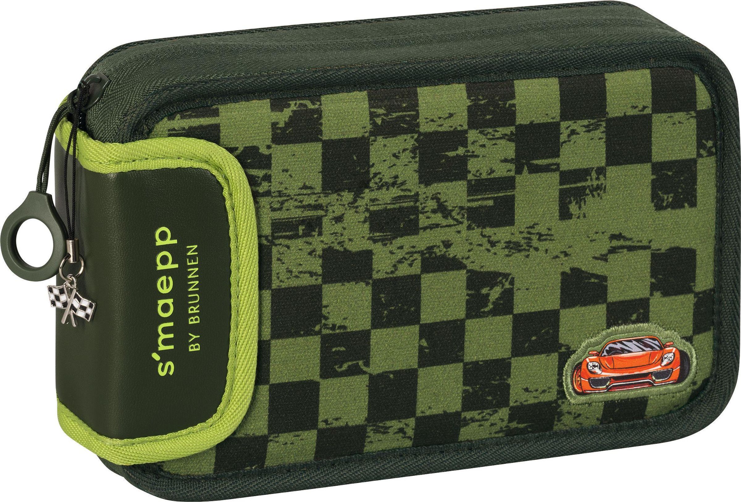 B/H/T: 200×125×45 mm ? Kunstfaser, Farbe: grün, mehrfarbig ? mit Anhänger ? Inhalt: 9 dicke Markenbuntstifte, 2 Markenbleistifte, Lineal 16 cm, Metalldoppelspitzer, Radiergummi, Geldfach mit Klettverschluss, Stundenplan, Zeichenschablone ? innovative Stifterampe für leichteres Entnehmen, horizontales Öffnen spart Platz auf dem Schreibtisch, mit ergonomischem Zipper für müheloses Öffnen und Schließen