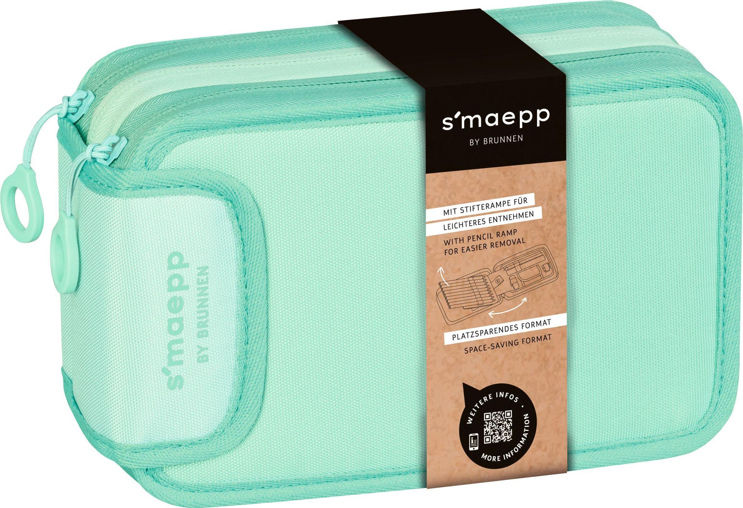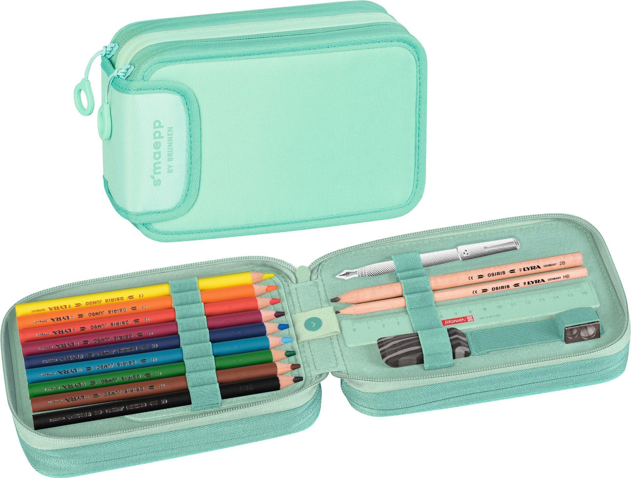 Türkise Schlamperbox mit zwei Reißverschlüssen und Aufschrift „smaepp by Brunnen“., Diverse