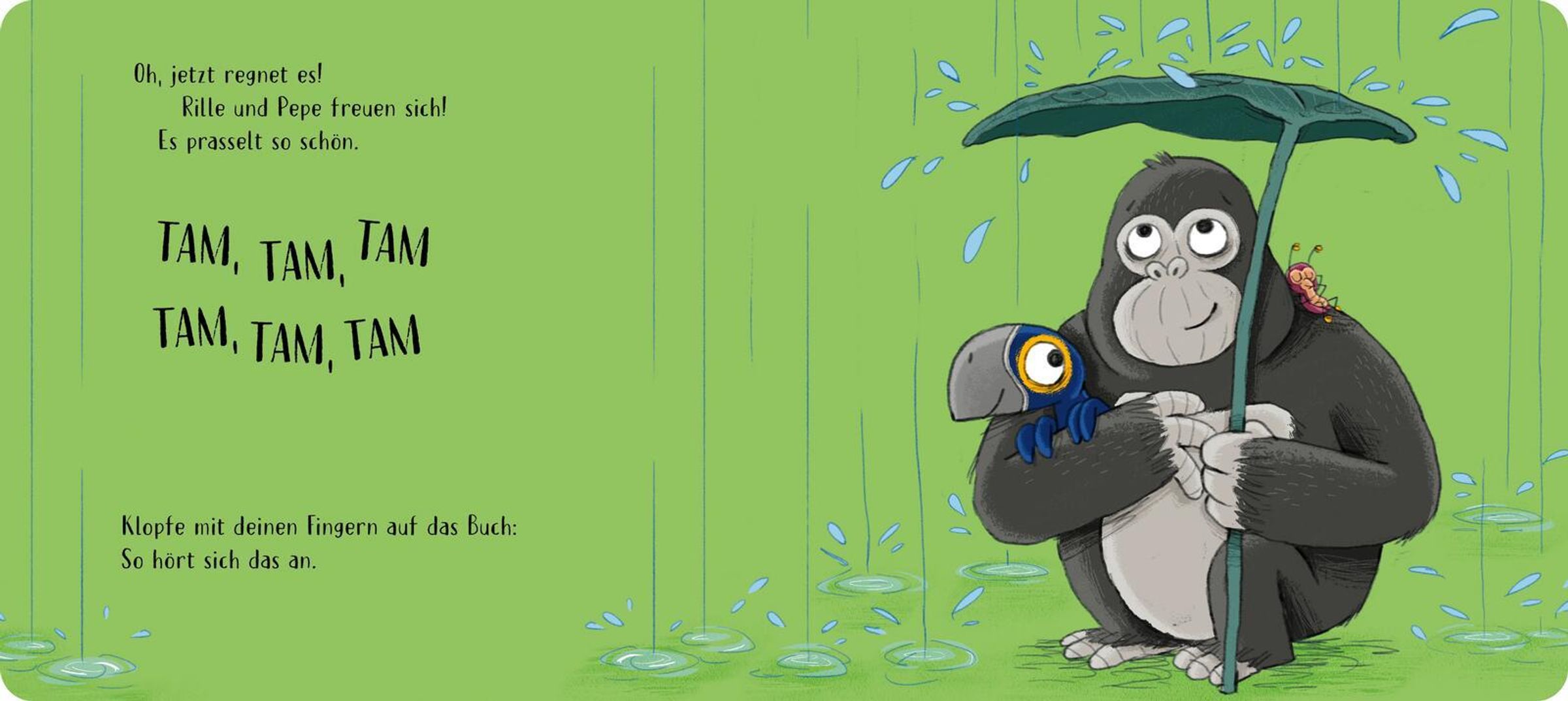 Auf jeder Seite wartet eine kinderleichte Aktion, die ganz nebenbei die Feinmotorik unterstützt. Der kurze, eingängige Text geht sofort ins Ohr, schult das Hörverständnis und regt zum ersten Mitsprechen an.