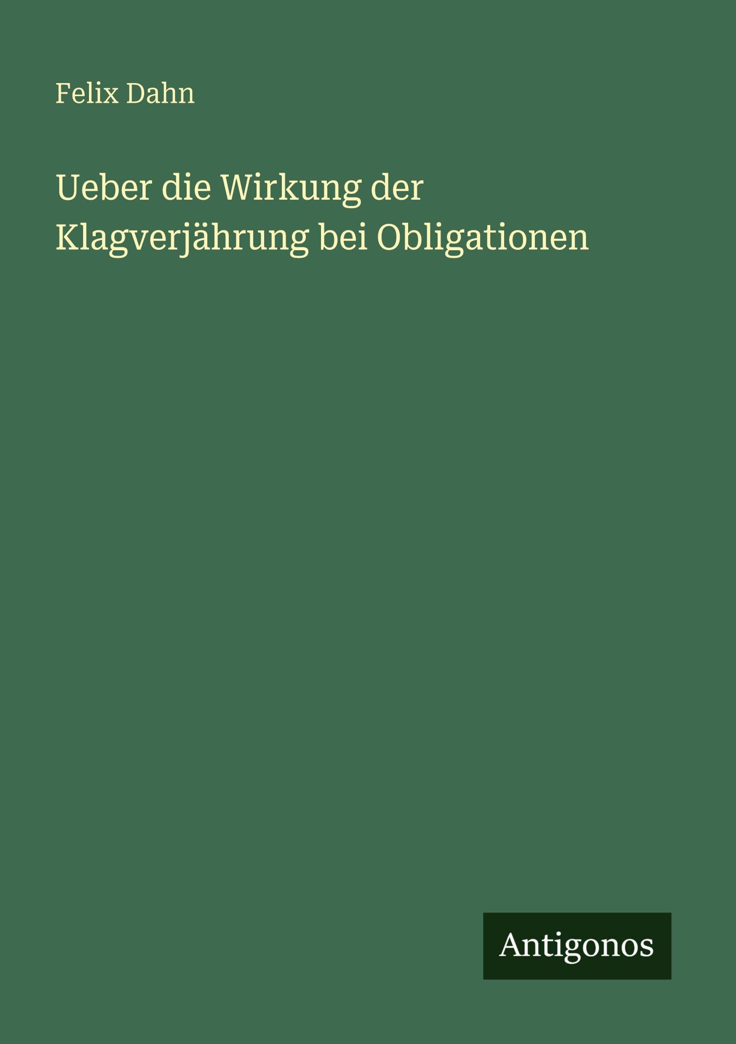 Der Artikel Felix Dahn: Ueber die Wirkung der Klagverjährung bei Obligationen wurde in den Warenkorb gelegt.