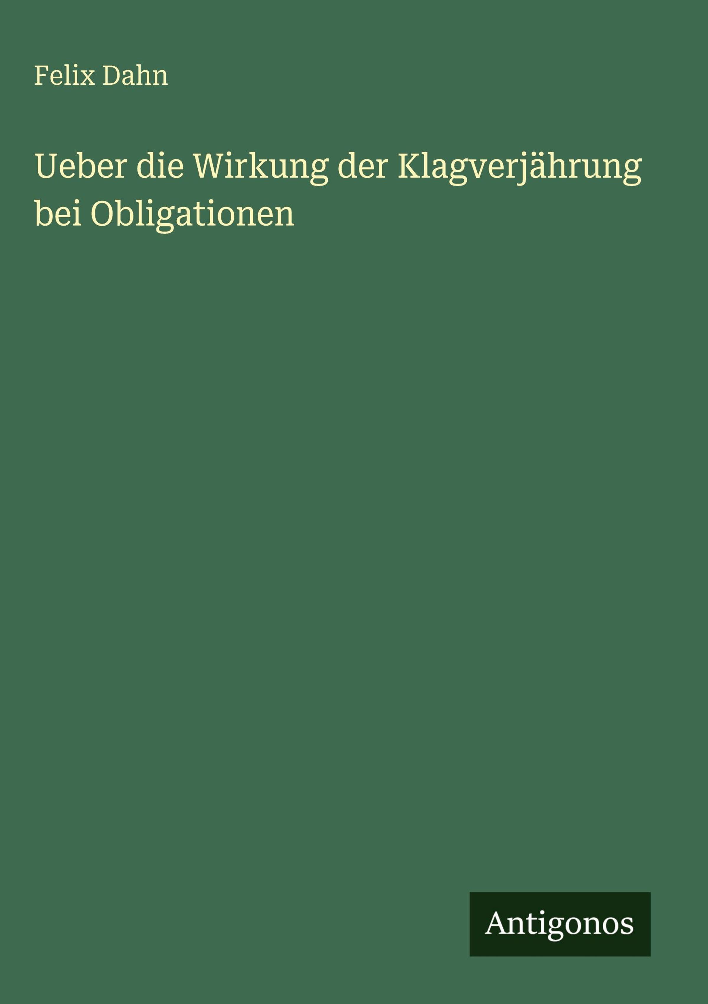 Der Artikel Felix Dahn: Ueber die Wirkung der Klagverjährung bei Obligationen wurde in den Warenkorb gelegt.