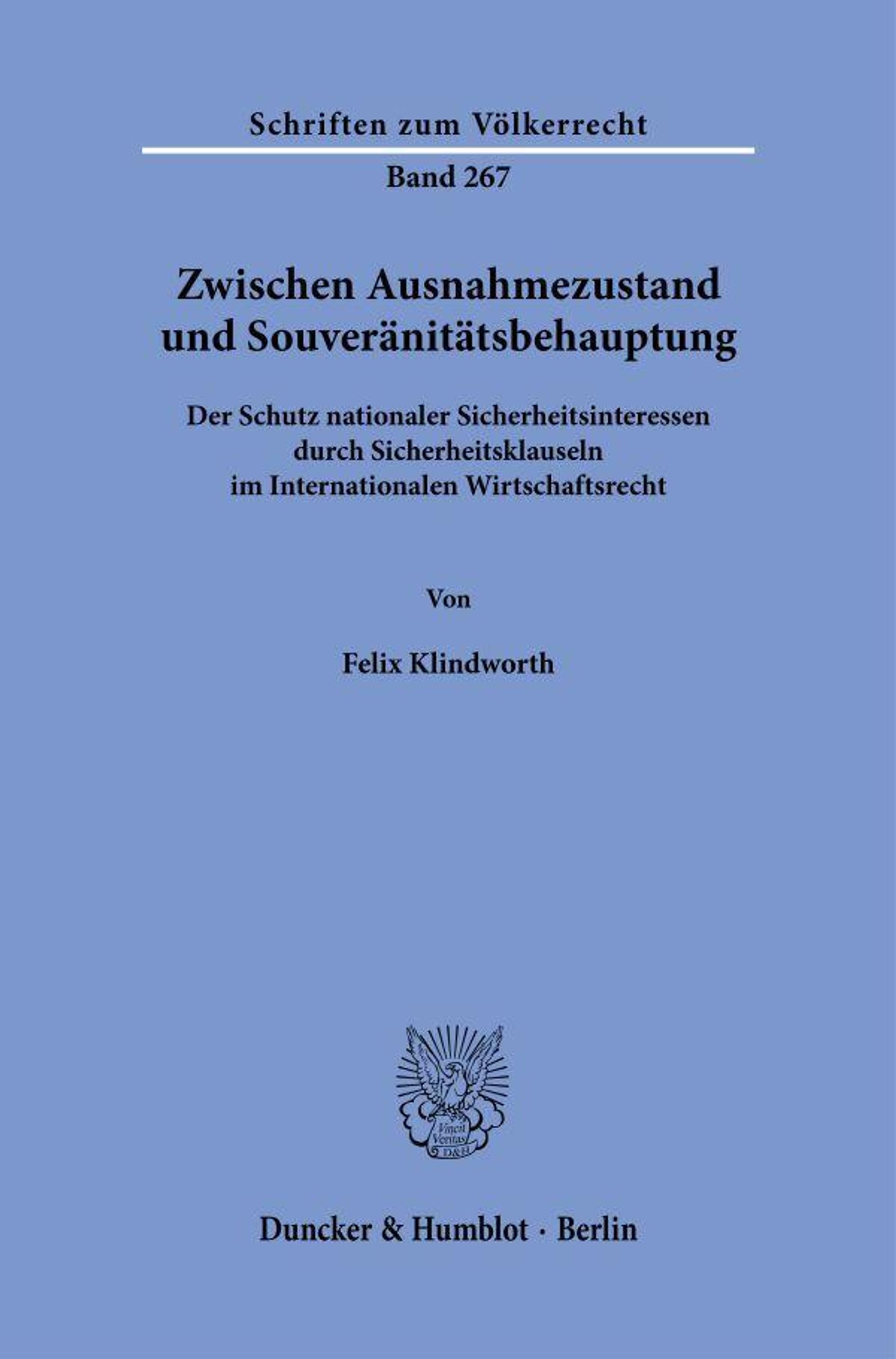 'Between Exceptionalism and Expressing Sovereignty': The thesis examines the security exception clause in international economic law. It analyses the dogmatic foundations, historical origins and susceptibility to abuse of the clause. In addition, the phenomenon of securitisation is examined as a political mechanism and in the form of legal design. Influenced by this, states adapt their design and behaviour (in dispute resolution).