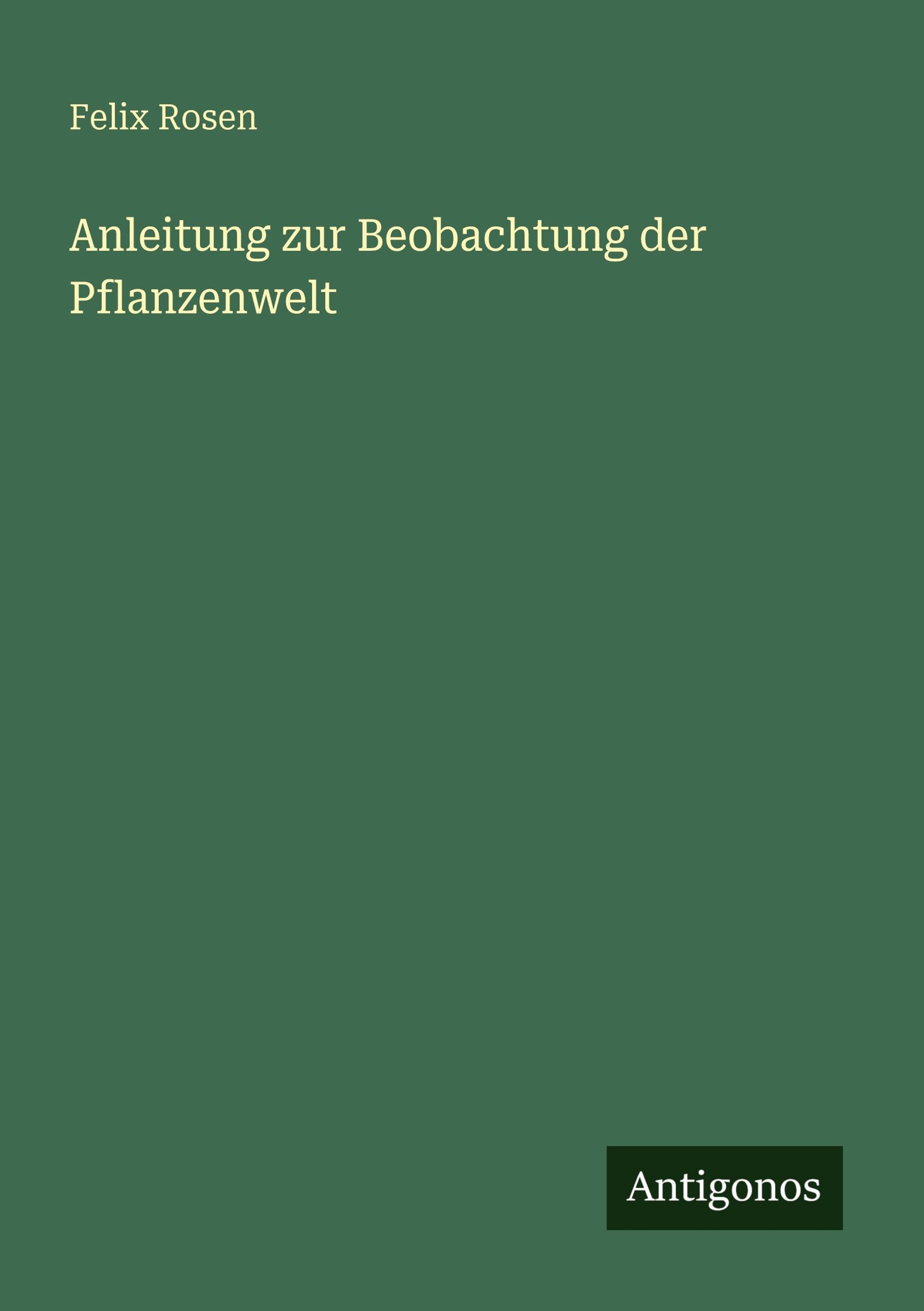 Felix Rosen: Anleitung zur Beobachtung der Pflanzenwelt, Kartoniert / Broschiert