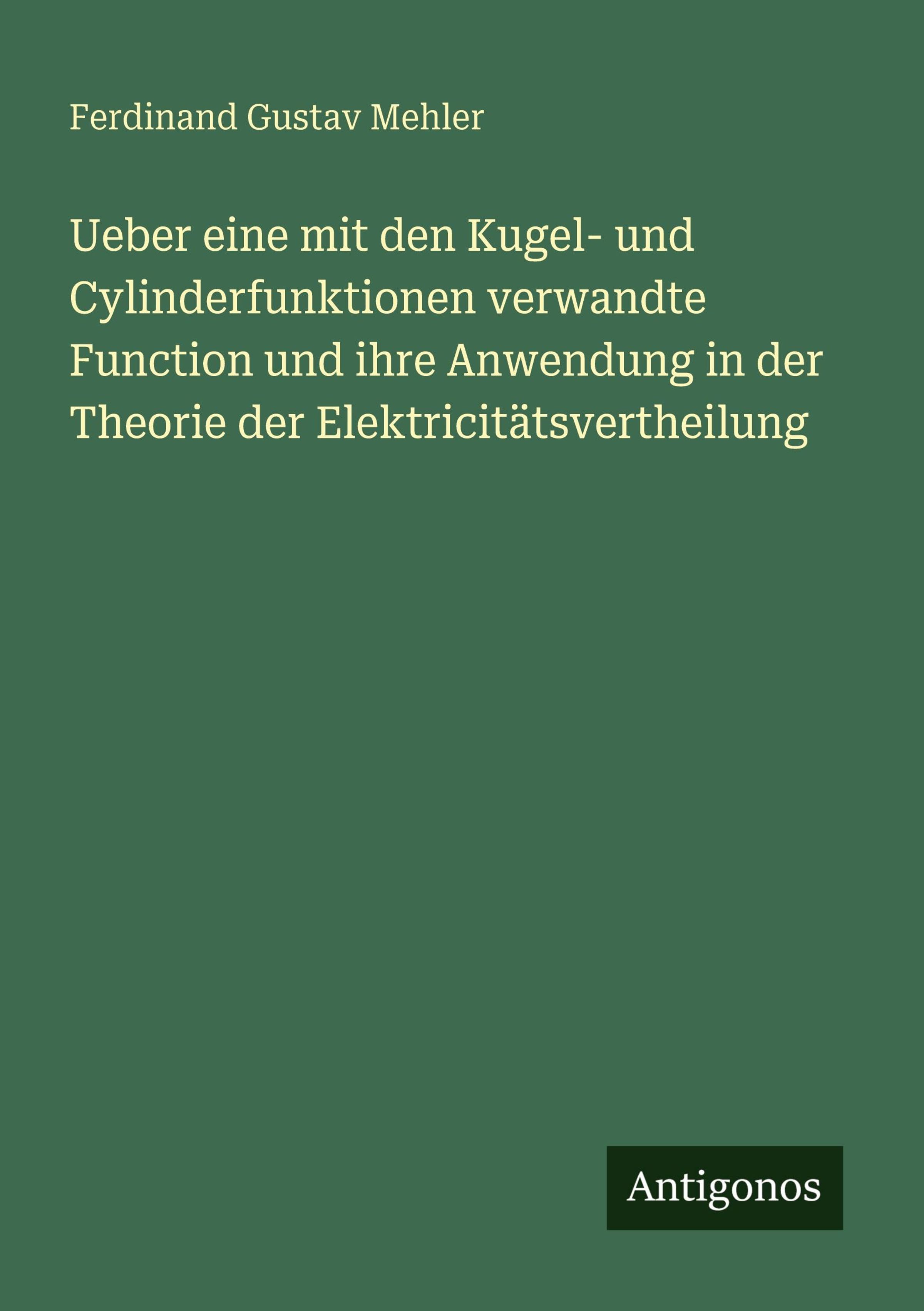Ferdinand Gustav Mehler: Ueber eine mit den Kugel- und Cylinderfunktionen verwandte Function und ihre Anwendung..., Kartoniert / Broschiert