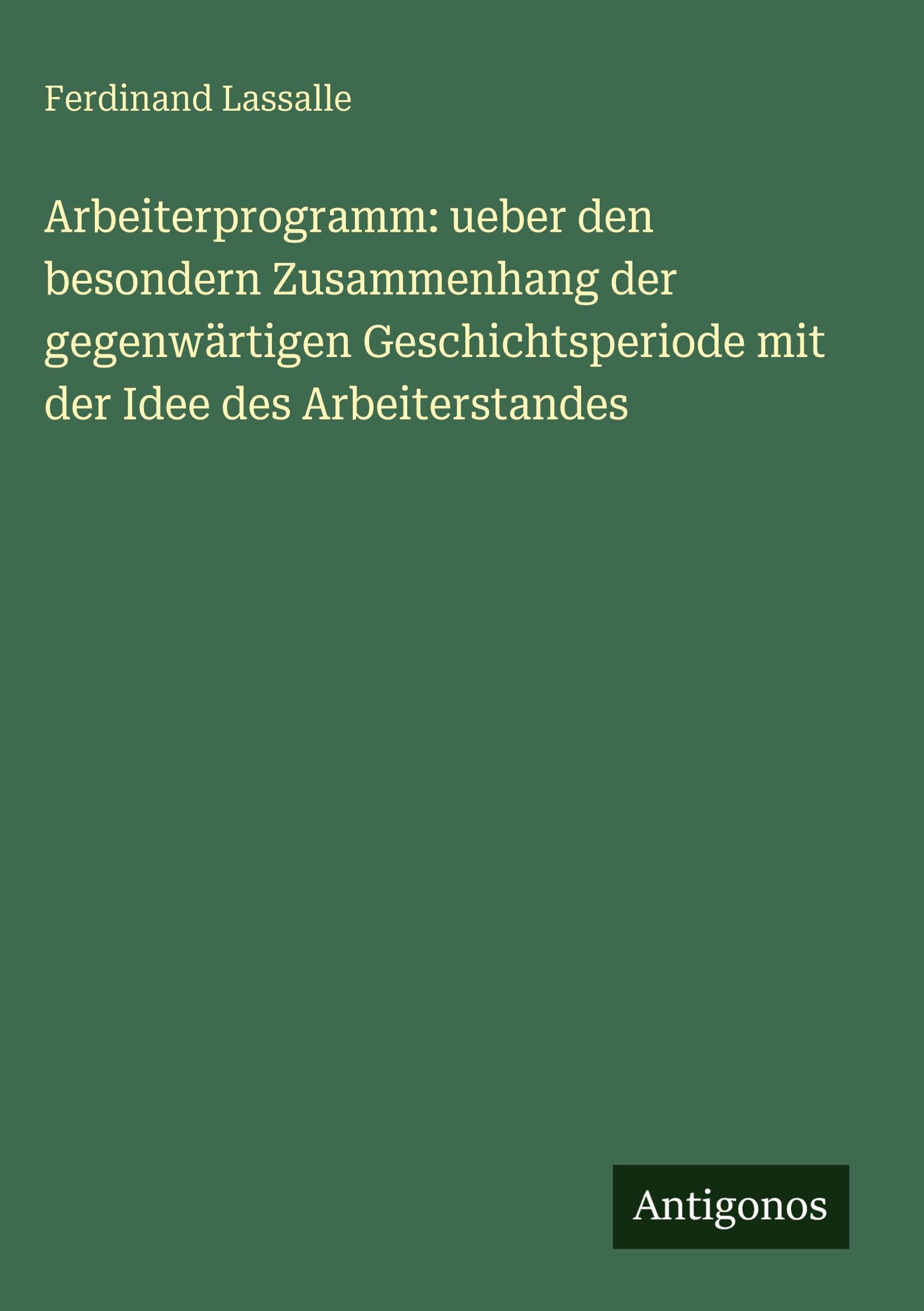 Arbeiterprogramm: ueber den besondern Zusammenhang der gegenwärtigen Geschichtsperiode mit der Idee des Arbeiterstandes