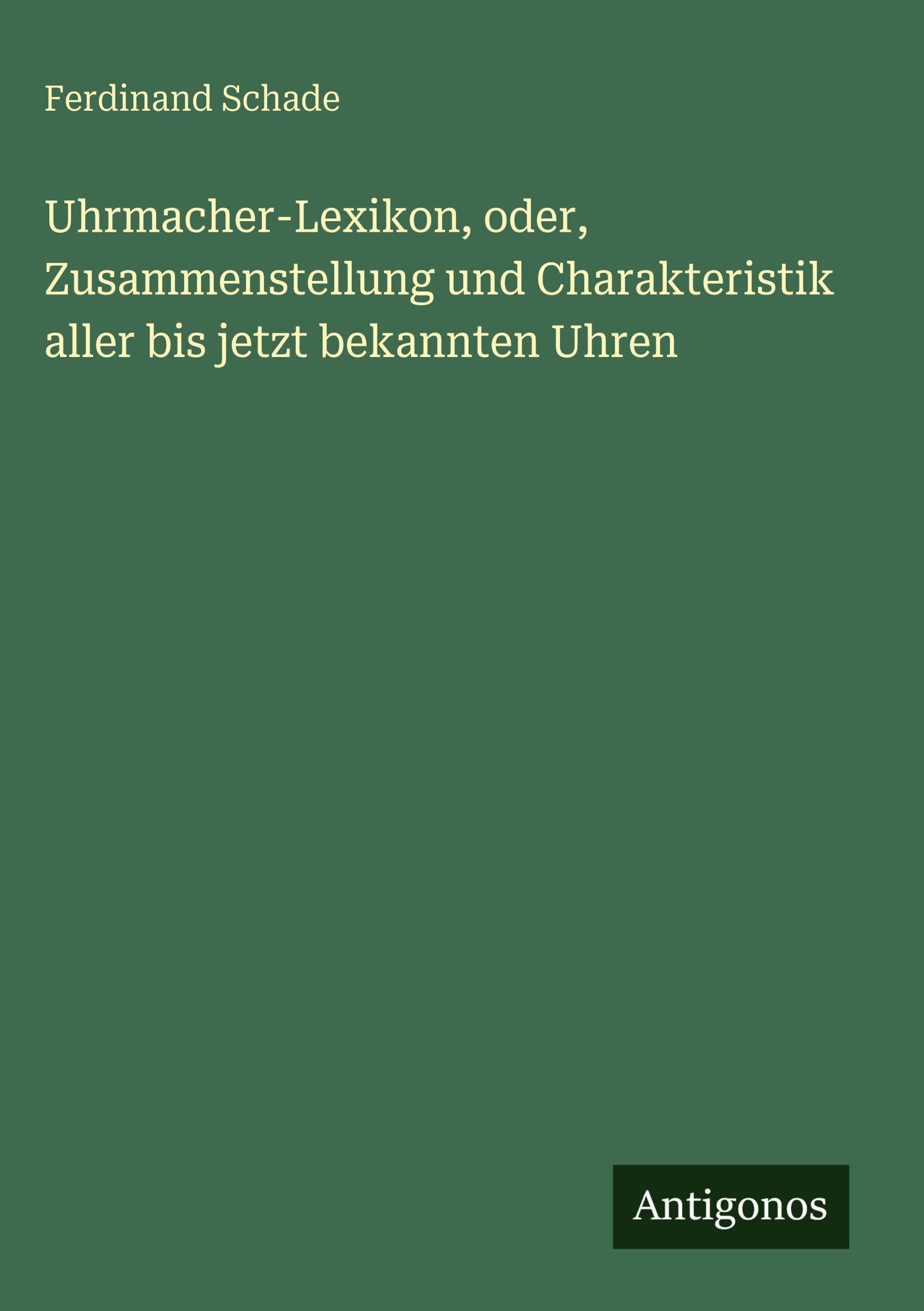 Ferdinand Schade: Uhrmacher-Lexikon, oder, Zusammenstellung und Charakteristik aller bis jetzt bekannten Uhren, Gebunden