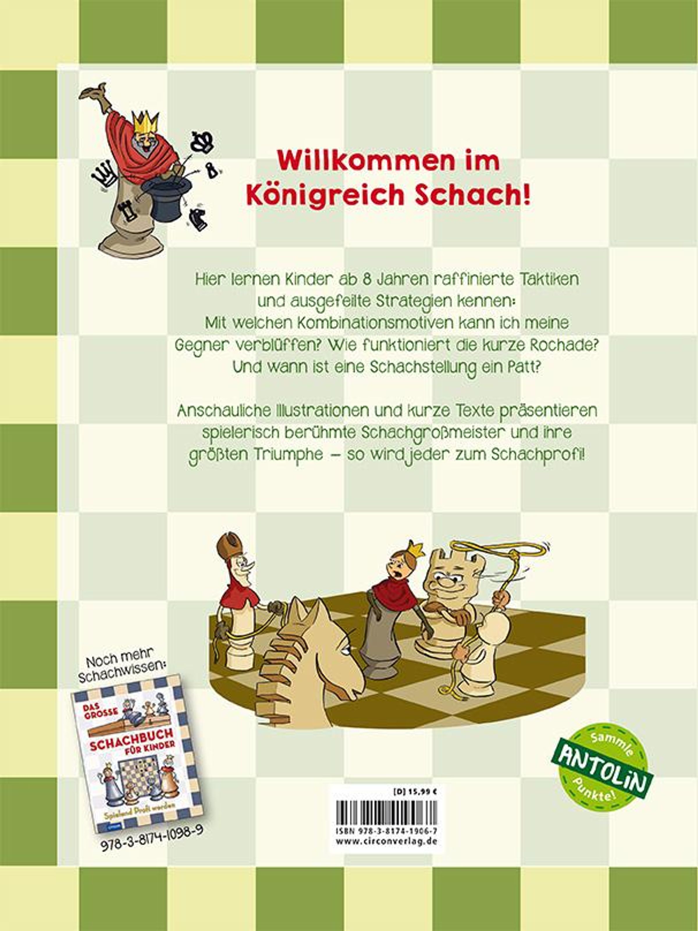 In diesem Kinderbuch ab 8 Jahren lernen die Kids raffinierte Taktiken, ausgeklügelte Tricks und neue Kniffe kennen. Für all diejenigen, die bereits erste Erfahrungen im Schachspiel gesammelt haben und über Vorkenntnisse verfügen, öffnet sich hier die magische Truhe der eleganten Schachtricks. Berühmte Schachspieler*innen verraten in diesem Buch ihre Spielstrategien, die anhand von Schachdiagrammen veranschaulicht werden und so noch einmal Zug für Zug und Gedanke für Gedanke nachgespielt werden können. Die beliebten kunterbunten Comic-Illustrationen, die selbstverständlich auch in den beiden anderen Bänden nicht fehlen dürfen, veranschaulichen die Inhalte kindgerecht und sorgen zudem für jede Menge Spaß!