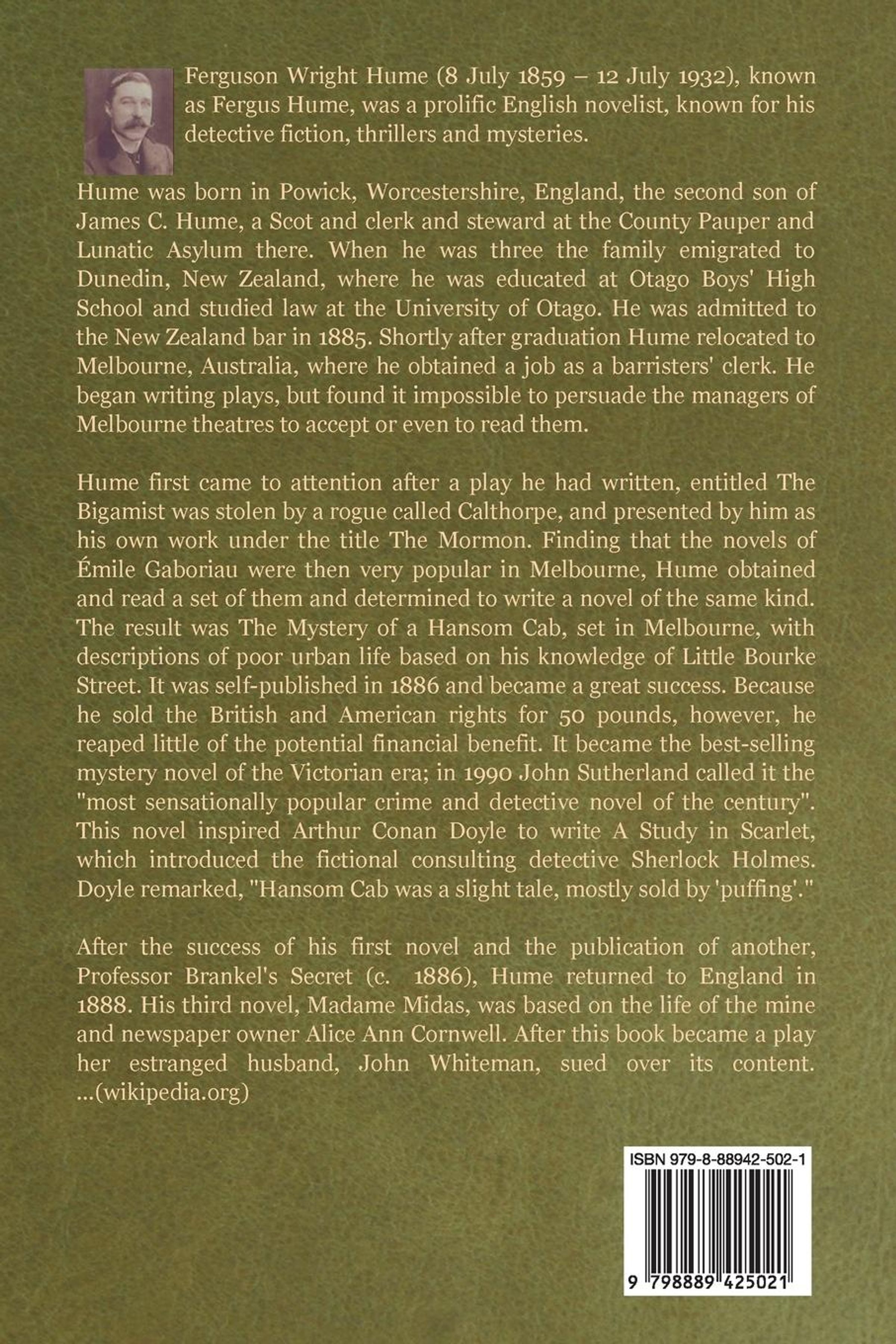 About the author Ferguson Wright Hume (8 July 1859 - 12 July 1932), known as Fergus Hume, was a prolific English novelist, known for his detective fiction, thrillers and mysteries.