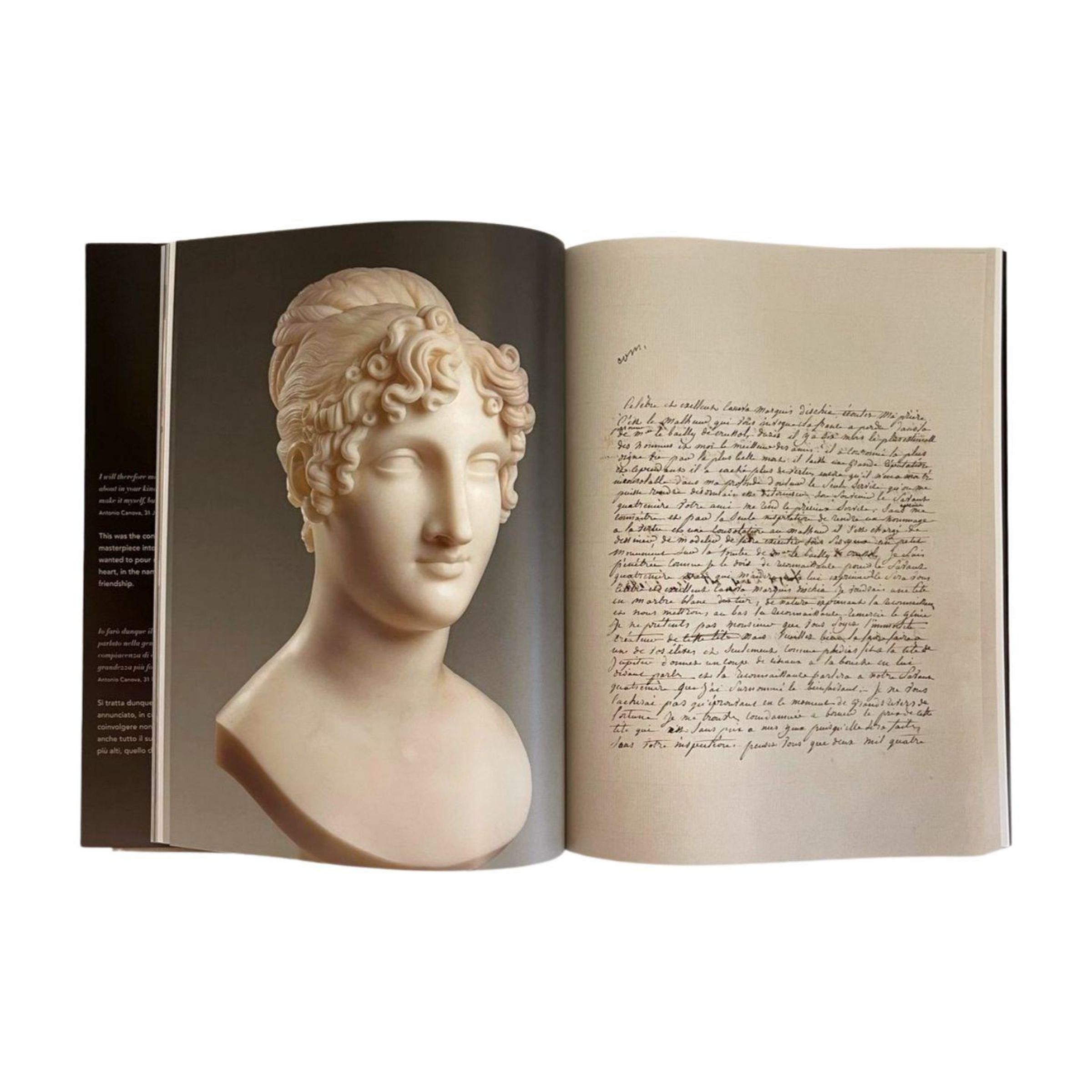 Canovas lange als verschollen geglaubtes Meisterwerk "La Riconocenza" (Die Dankbarkeit) ist eine Hommage an seinen wichtigsten Kritiker, den Kulturtheoretiker Quatremère de Quincy. In Auftrag gegeben wurde sie von der Künstlerin Marquise de Grollier, als Geschenk an den gemeinsamen Freund Quatremère. Anhand eines außergewöhnlichen Briefwechsels zwischen diesen drei illustren Persönlichkeiten, die das kulturelle Leben ihrer Zeit prägten, spürt der Autor der Entstehungsgeschichte der "Riconocenza" nach und ordnet sie in den Kontext von Canovas Teste "ideali" ein.