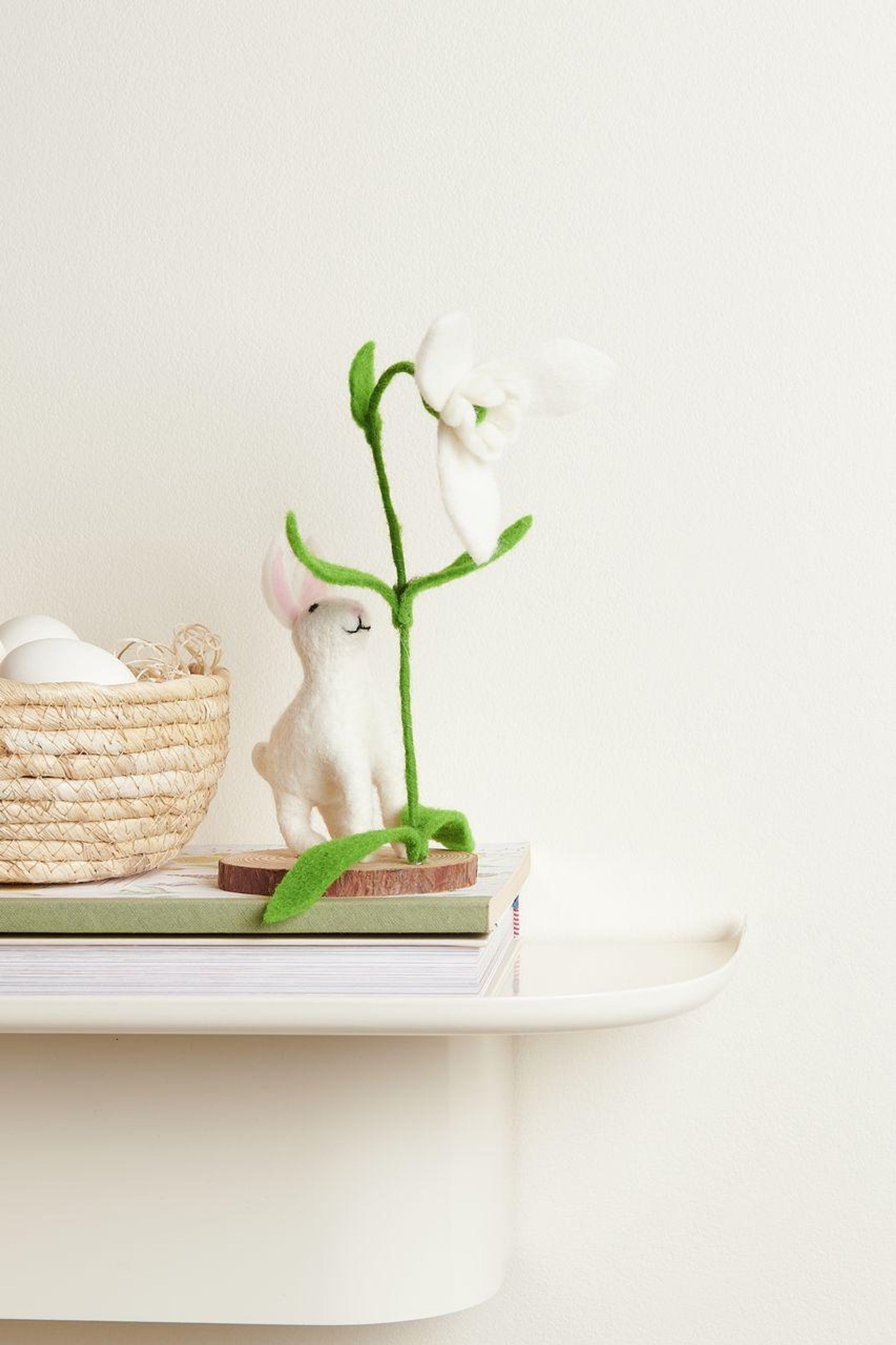 Der auf einer Holzscheibe platzierte, handgefilzte Hase mit Schneeglöckchen ist aus einer hochwertigen Filzmischung gefertigt und überzeugt durch seine liebevollen Details. Die Kombination aus Filz und Naturholz macht ihn zu einer harmonischen Dekoration für Frühling und Ostern.